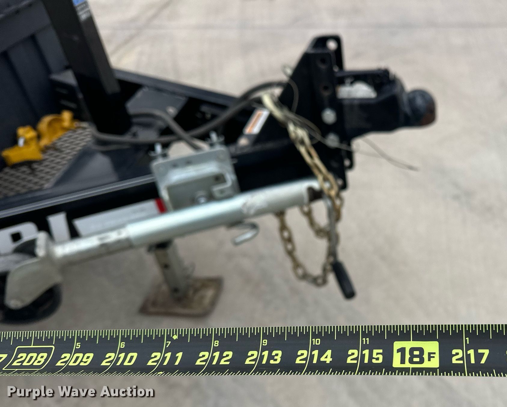 2018 PJ Trailers tilt deck utility trailer. VIN: 4P5T11313J1288778. Dimensions Overall: 18' L x 102" W, Deck: 13' L x 81" W, Tail length: 2'. Features Deck type: Wood, Self-contained hydraulics, Winch Badland ZXR9000, Capacity: 9,000 lbs, Hydraulic controls: Remote control. Chassis Ball hitch: 2 5/16", Landing gear: Single, Suspension: Spring, Brakes: Electric, GVWR: 7,000 lbs, GAWR: 7,000 lbs. Tires Steel wheels, Size: ST235/80R16. Transfer of ownership documentation will be a bill of sale. Cliffton Construction LLC. Edmond, OK 73003