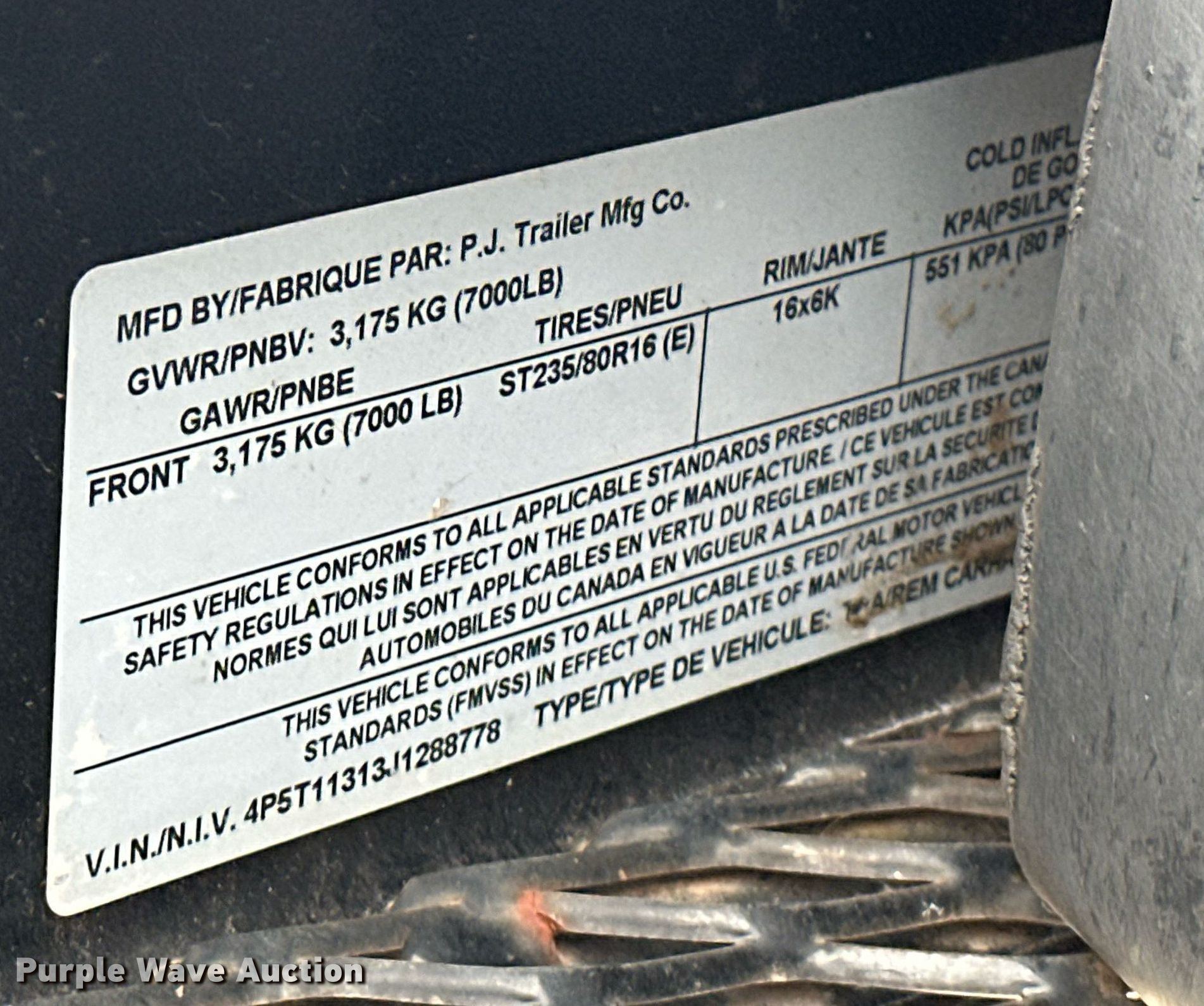 Purple Wave is selling a used Car or Utility Trailer in Oklahoma. This item is a 2018 PJ Trailers tilt deck utility trailer with the following: VIN: 4P5T11313J1288778