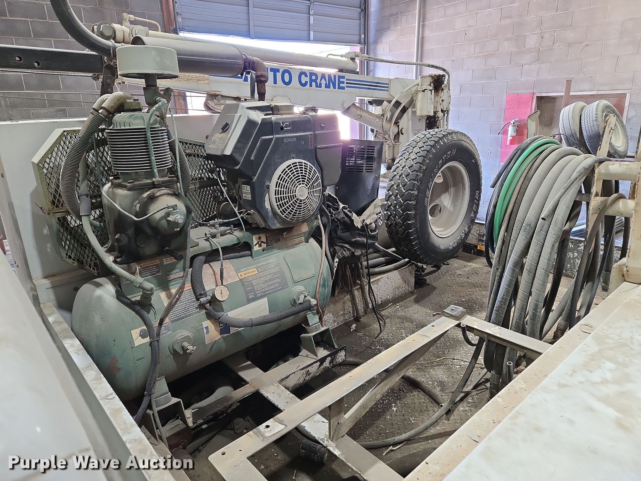 1995 Ford F450 Super Duty utility / service truck. Miles: 131,273 on odometer, VIN: 1FDLF47F3SEA71675, Unit #: 103700. Engine International A215, Displacement: 7.3L, Cylinders: 8, Fuel type: Diesel. Transmission Manual, Speed: 5. Chassis Axles: Single, Suspension: Spring, GVWR: 15,000 lbs, Wheelbase: 137". Interior AC, Heat, Cruise control. Features Bed Stahl, 9' L x 8' W, Air compressor Kohler CH11S, Crane Auto Crane 32030 PRX, Maximum boom length: 15' Maximum lift capacity: 3,200 lbs.. Tires Size: LT235/85R16. Notes Windshield chipped or cracked, Dead battery, Engine oil leak , Possible AC issues, may need recharged, Electrical issues, Unknown operating condition of crane, Unknown operating condition of air compressor. Oklahoma classic title. Title distribution may be delayed up to 30 days from verification of funds. Dolese Bros Co. 50 East Main Street. Durant, OK 74701