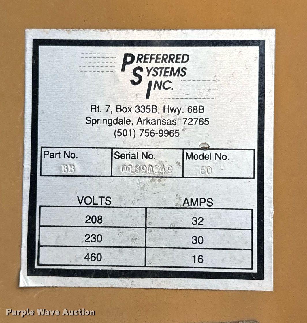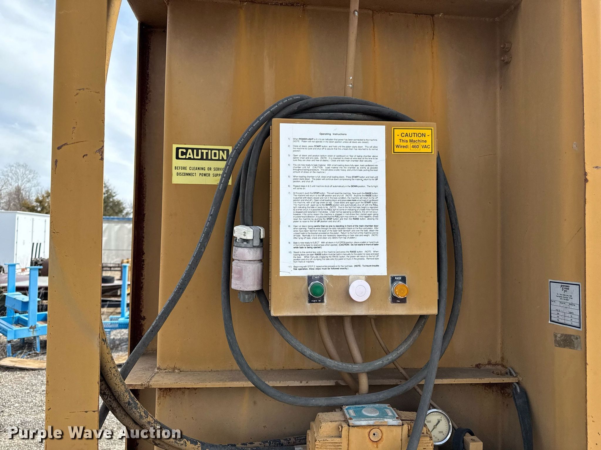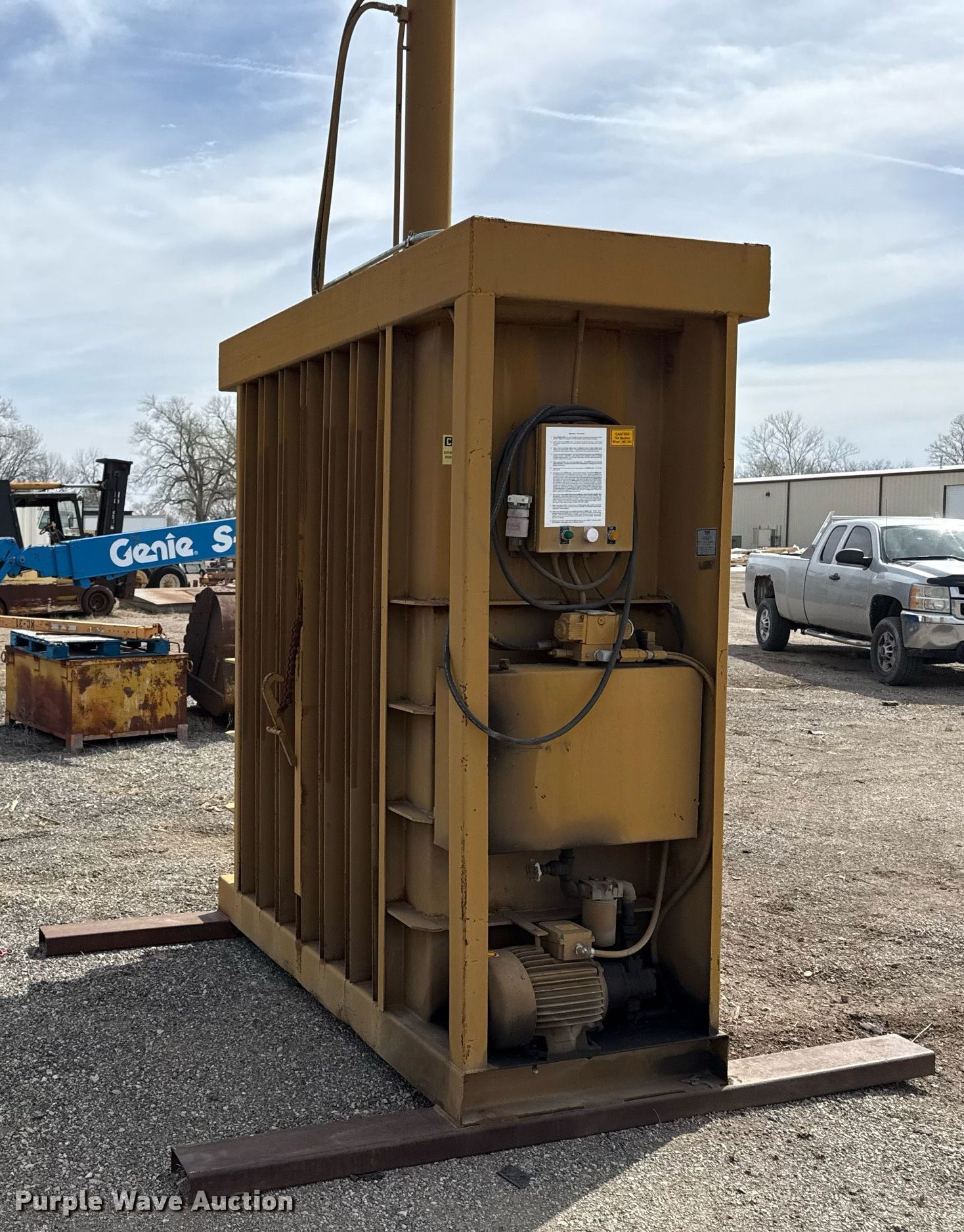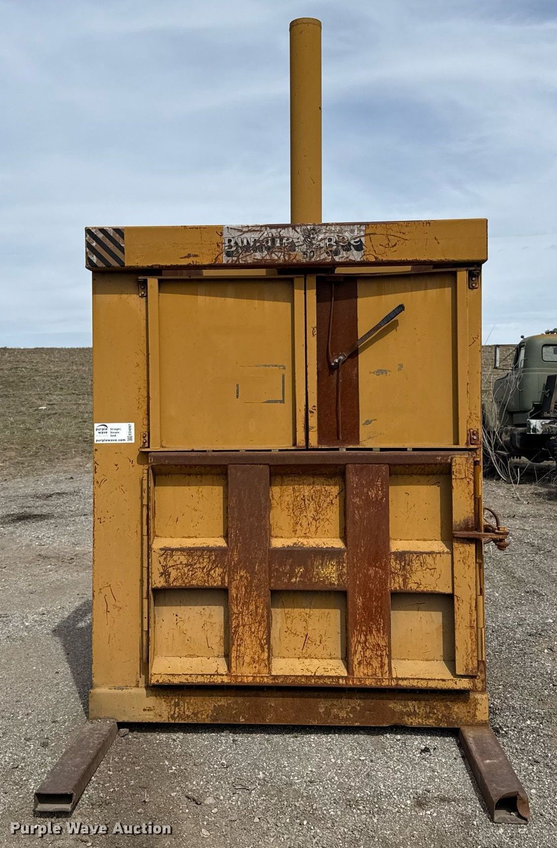 Purple Wave is selling a used Machine Shop Tools and Equip. in Kansas. This item is a Bundle Bee 60 cardboard baler with the following: Serial: 01890049, Electric motor, Phase: Three, Bale size: Approx. 60"