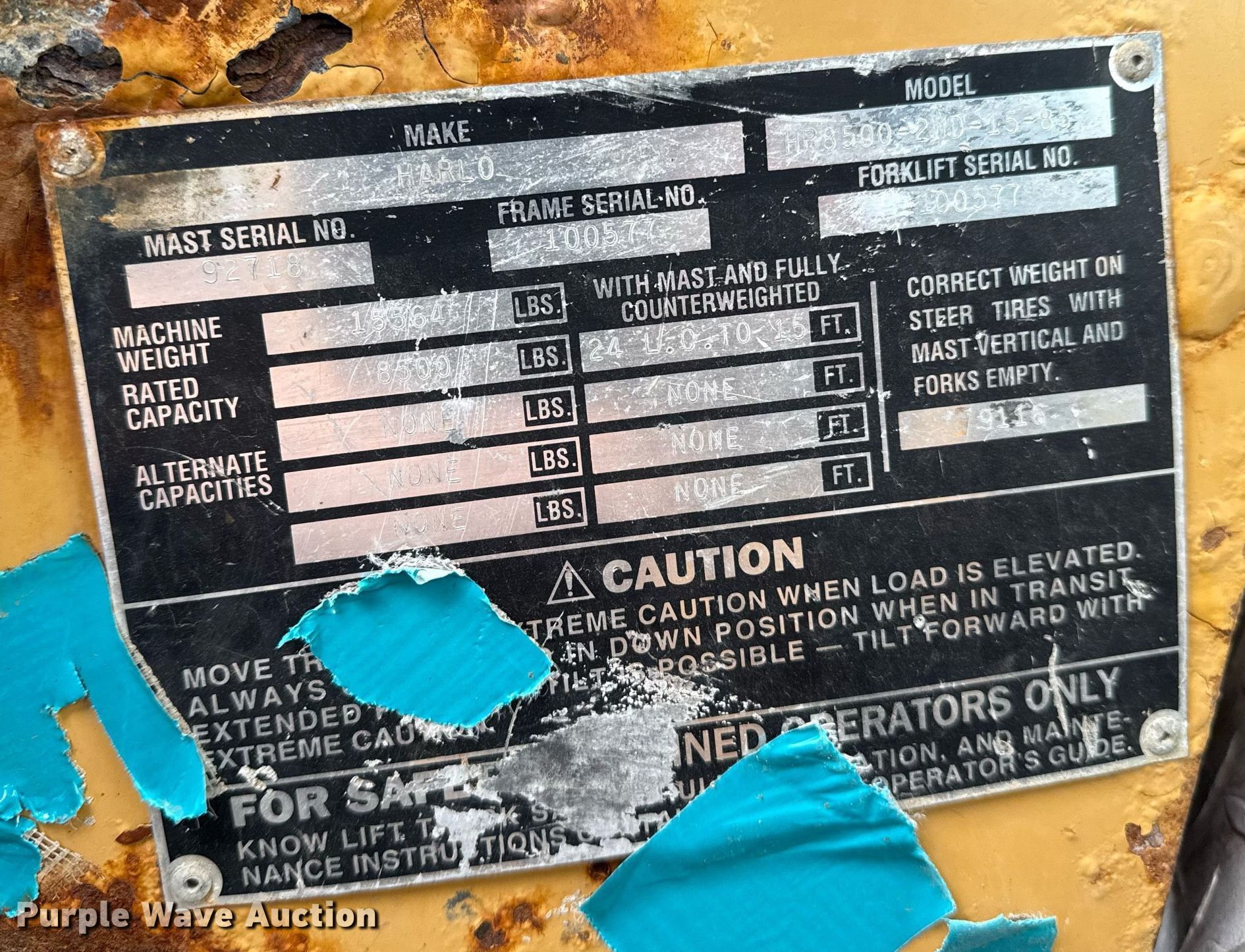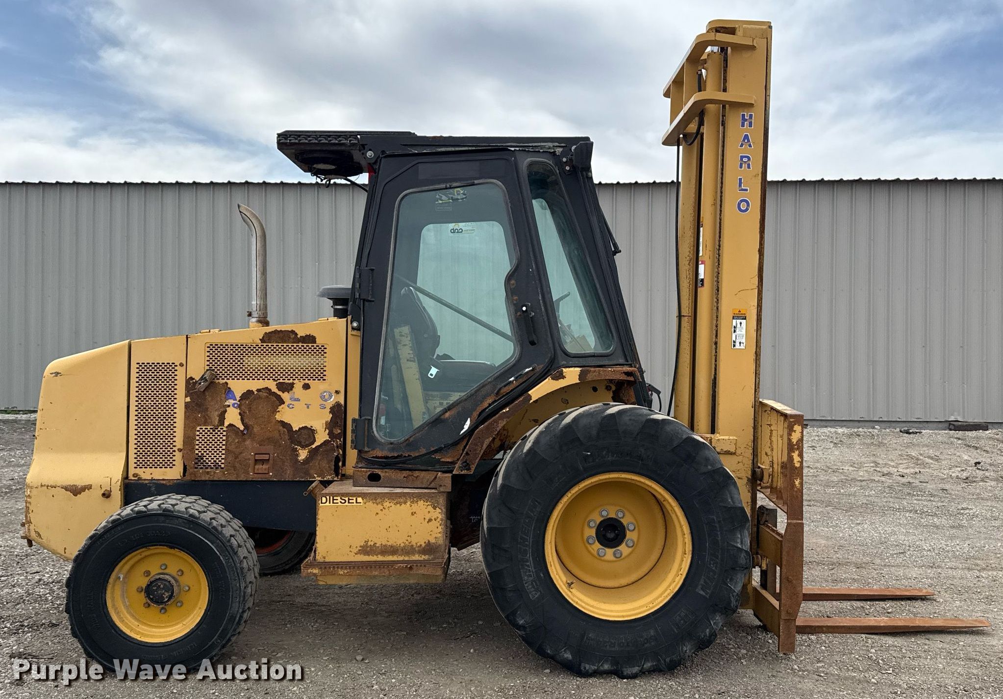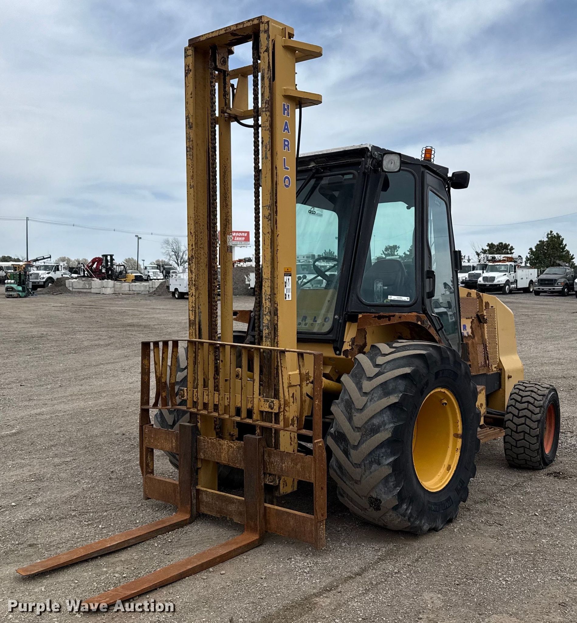 Purple Wave is selling a used Strt. Mast Rough Terr. Forklift in Oklahoma. This item is a 2007 Harlo HP8500-2WD-15-85 forklift with the following: Hours: 21,164 on meter, Serial: 100577