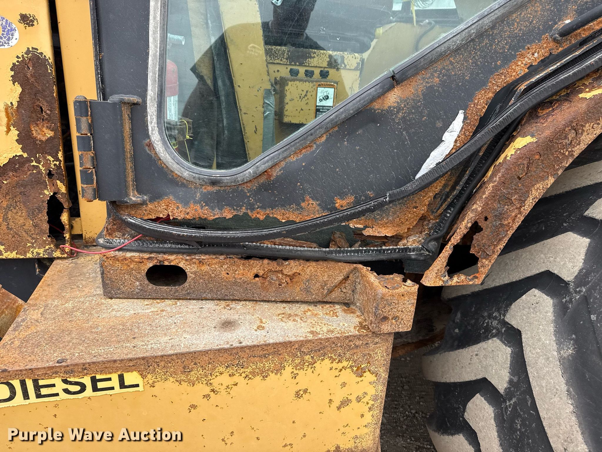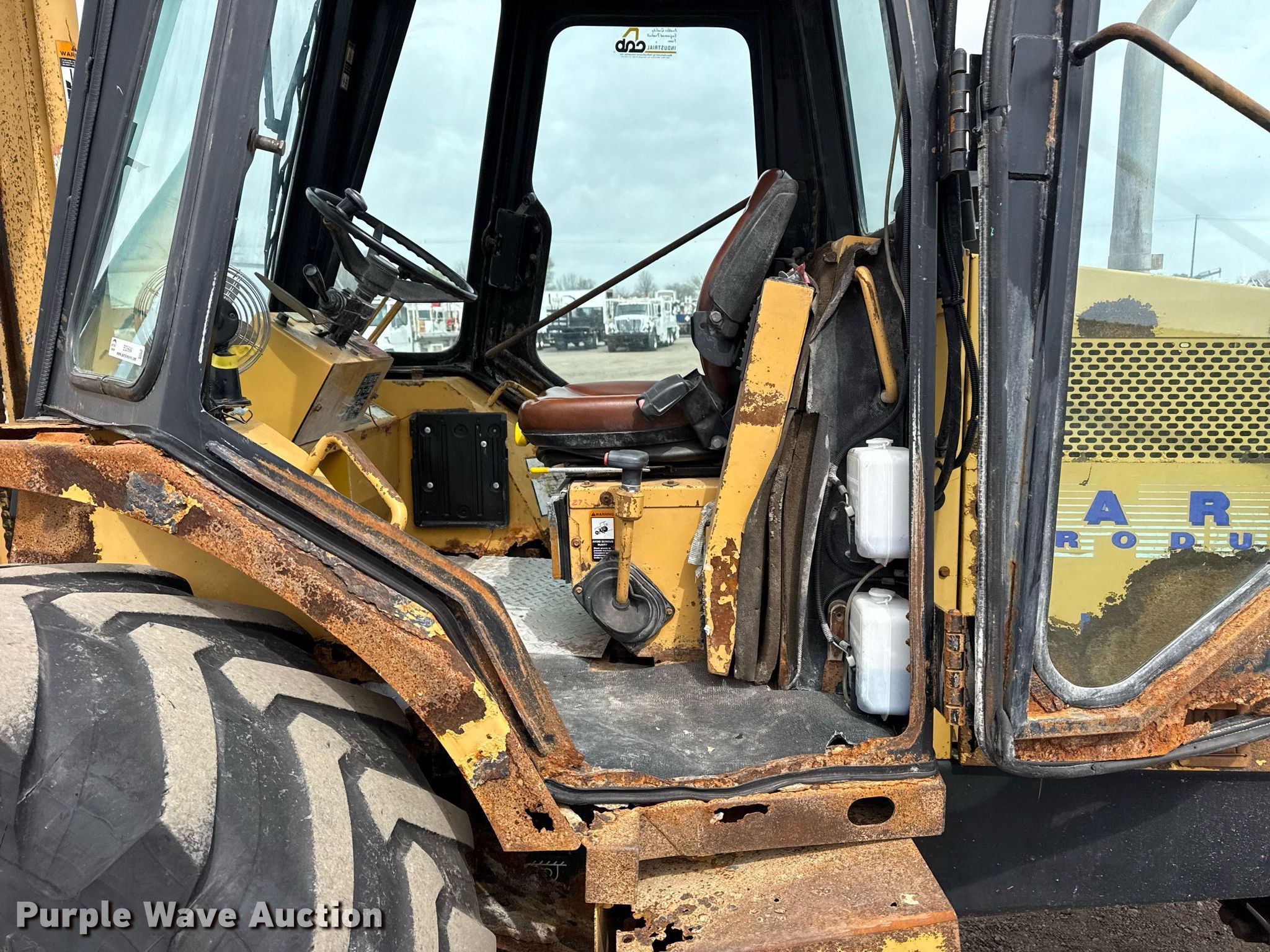 2007 Harlo HP8500-2WD-15-85 forklift. Hours: 21,164 on meter, Serial: 100577. Engine John Deere 4045DF27Q, Serial: PE4045D637432, Cylinders: 4, Fuel type: Diesel. Transmission Shuttle shift, 4F - 4R. Chassis Differential lock. Operators station Enclosed cab. Features Mast stages: 1, Side shift, Mast tilt, Fork length: 46". Tires Front: 500/70R24, Rear: 12-16.5. Notes Frame rust damage, holes in frame. 15107 North 137th East Avenue. Collinsville, OK 74021