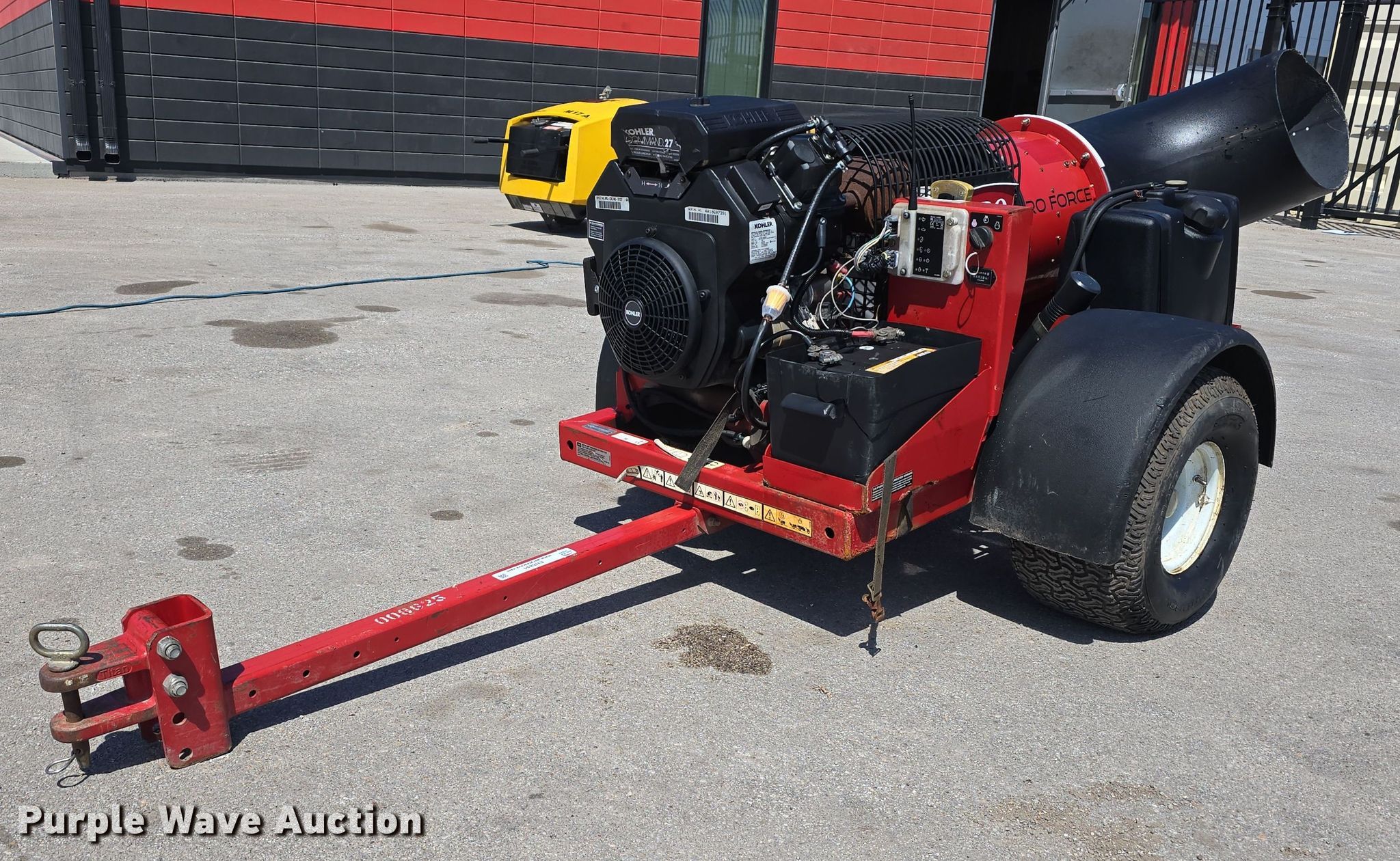 Toro Pro Force 44538 turbine blower. Hours: 87 on meter, Serial: 310000205. Engine Kohler Command 27, Serial: 4010607391, Displacement: 725 cc, Cylinders: 2, Fuel type: Gas. Features 9' L x 48" W. Tires Size: 20x10.00-8 NHS. Jordan Machinery/ S & N Auto Sales. Waterloo, NE 68069
