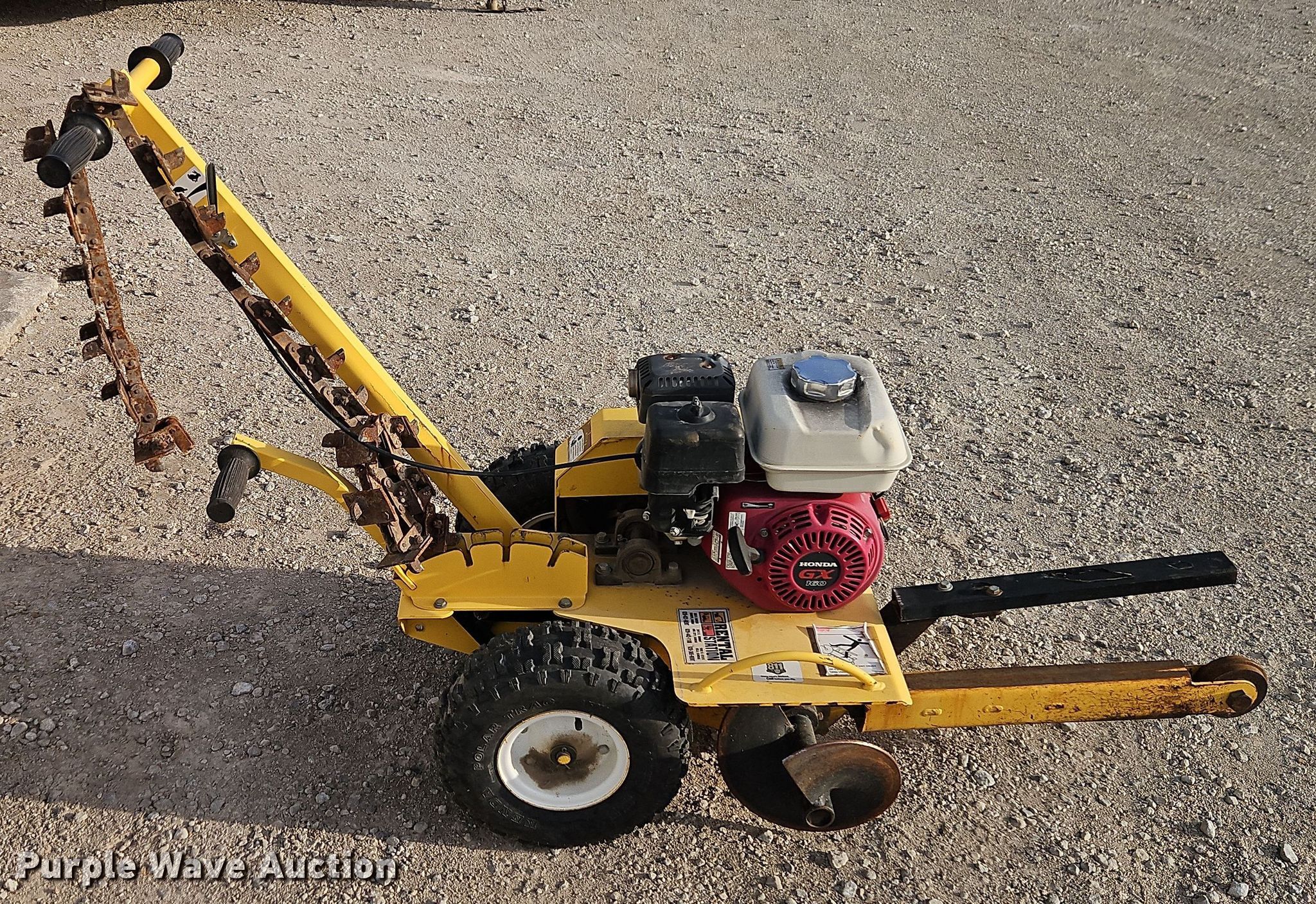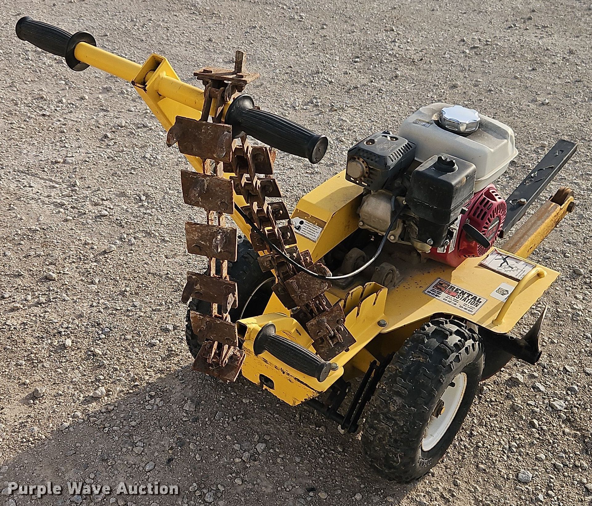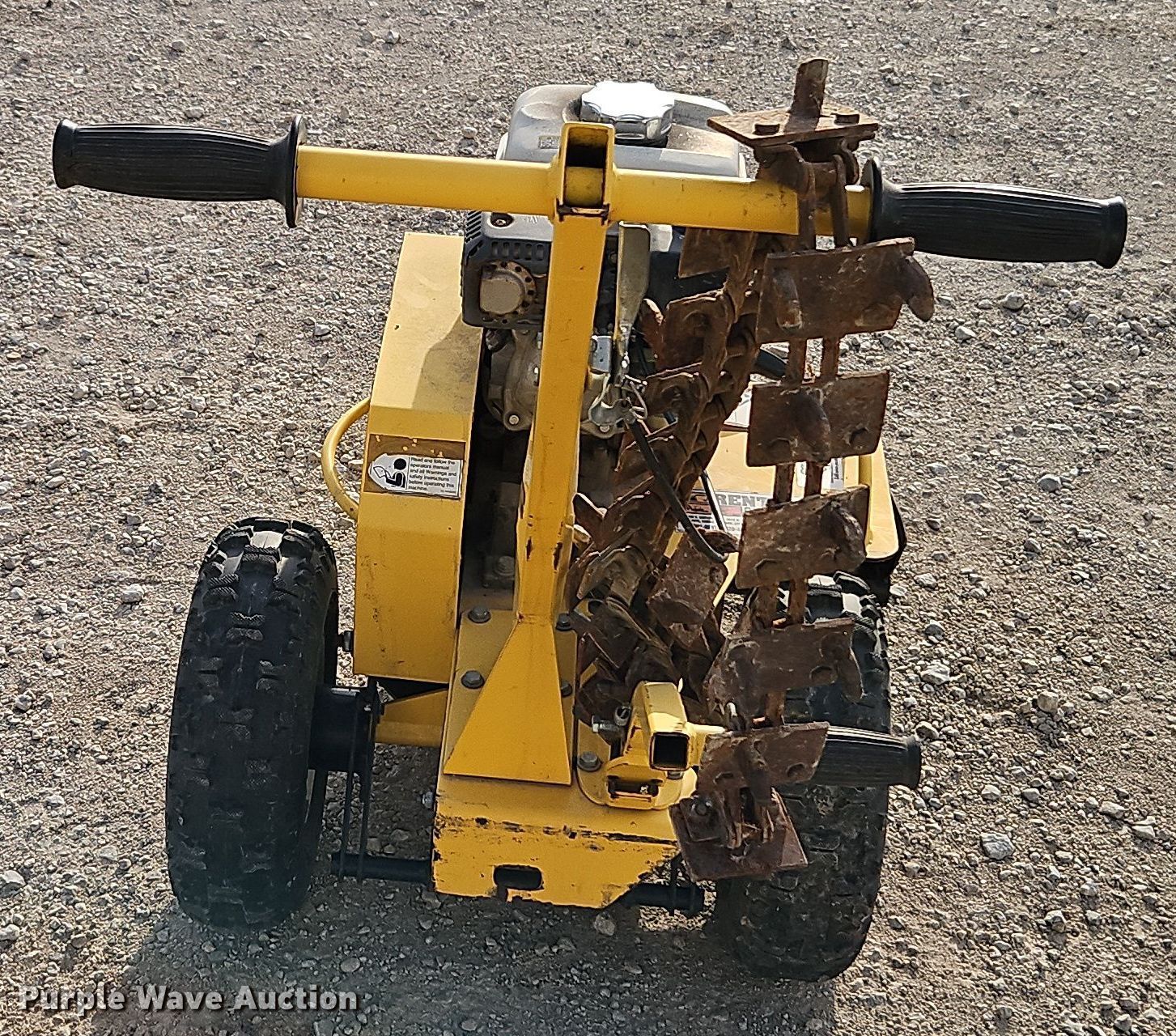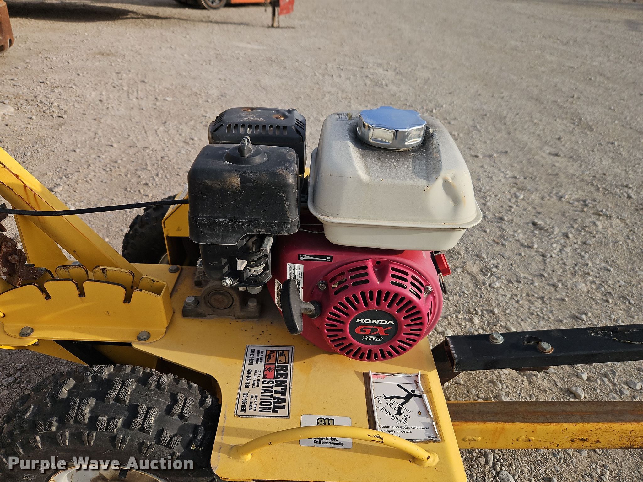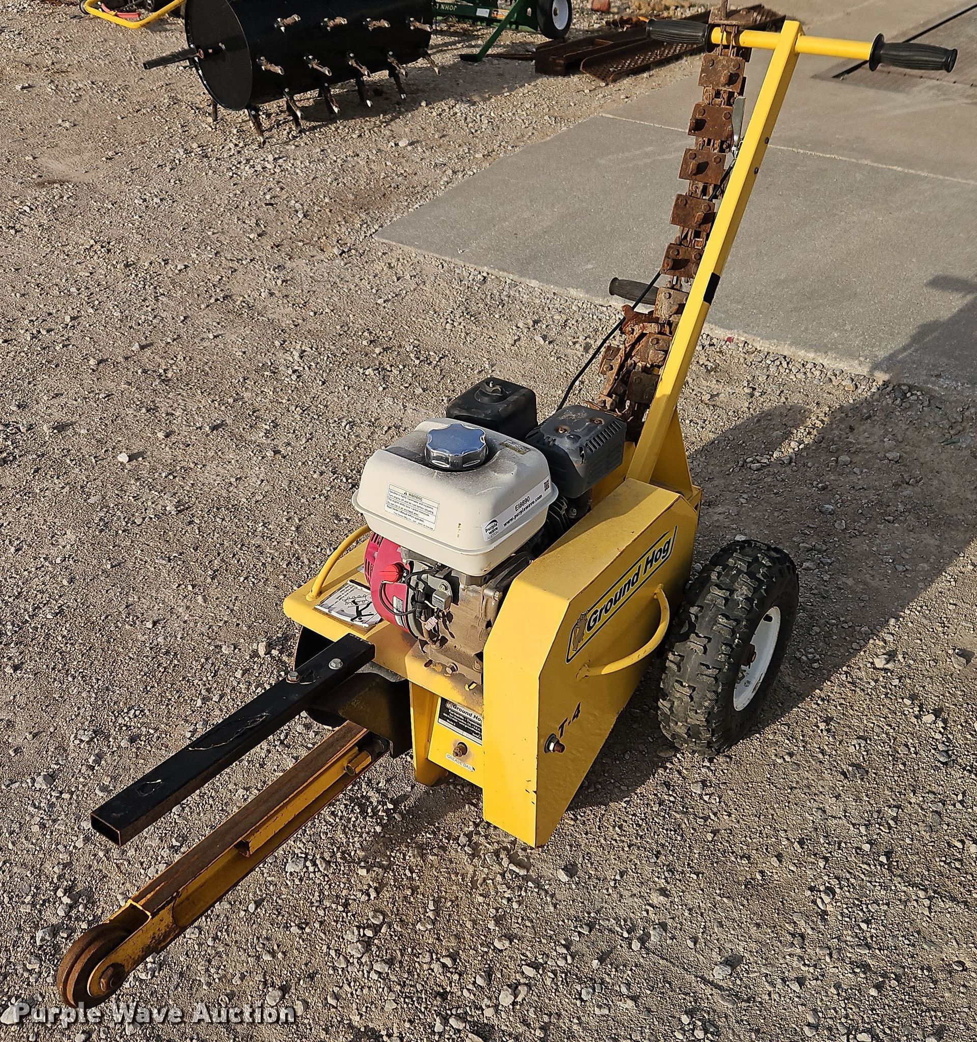 Gound Hog T-4-HS18 trencher. Serial: 14923. Engine Honda GX160, Cylinders: 1, Fuel type: Gas. Features Trencher Estimated dig depth: 18". Tires Size: 15x5.00-6. Notes Non-operational trencher chain, broken, Non-operational unit. The Rental Station. Chanute, KS 66720