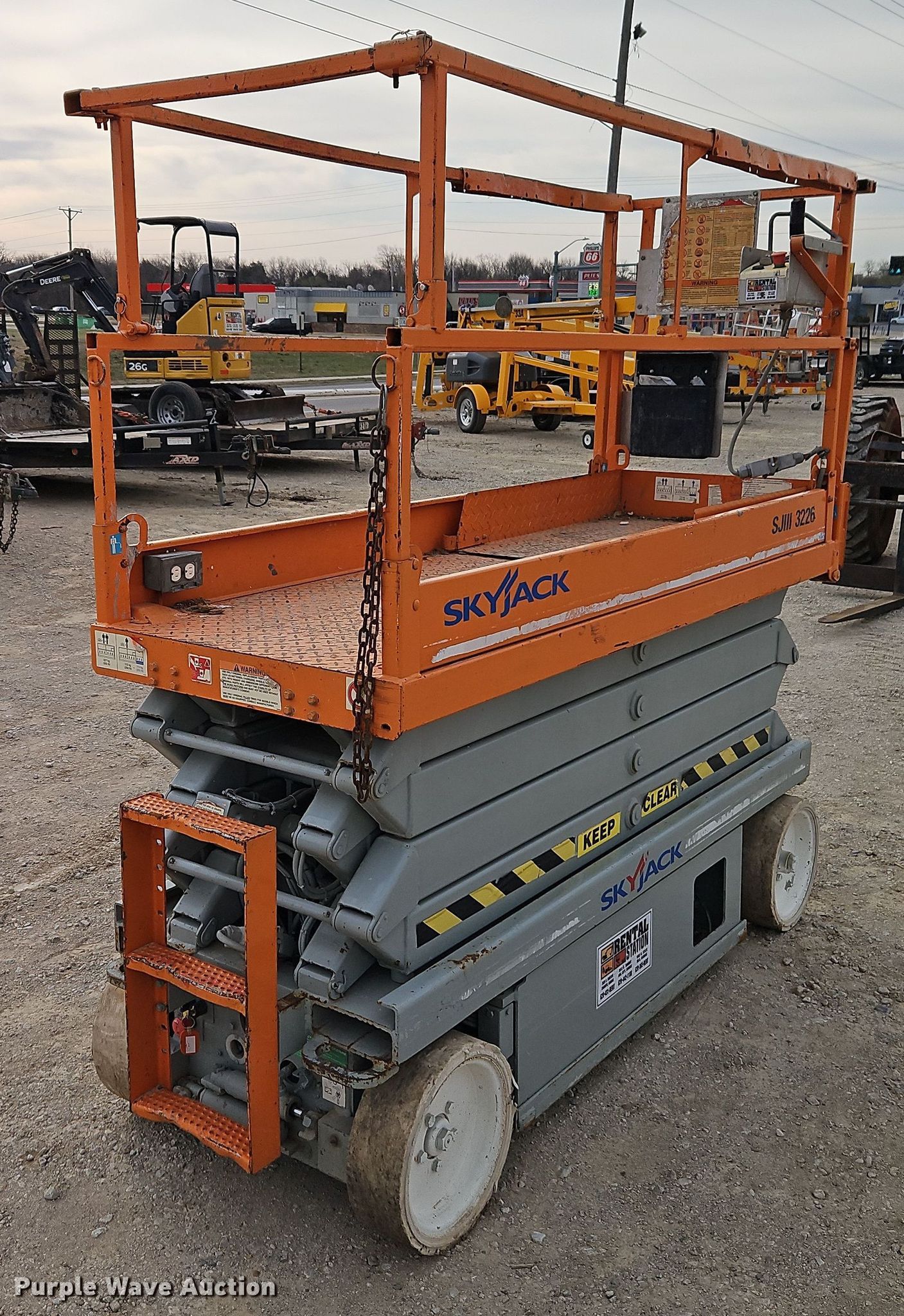 Purple Wave is selling a used Scissor or Vertical Lift in Kansas. This item is a Skyjack SJIII 3226 scissor lift with the following: Hours: 225 on meter