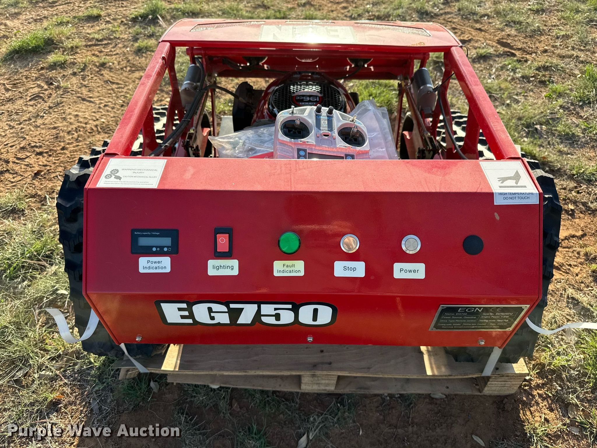 This 2024 EGN EG750 remote controlled lawn mower will sell to the highest bidder regardless of price.