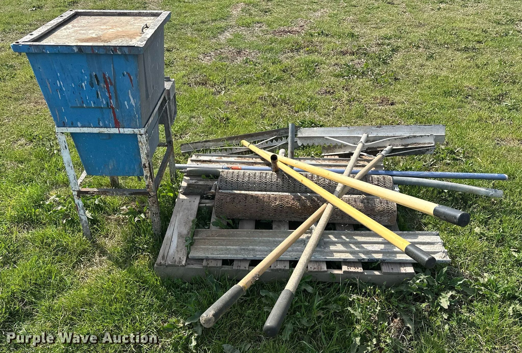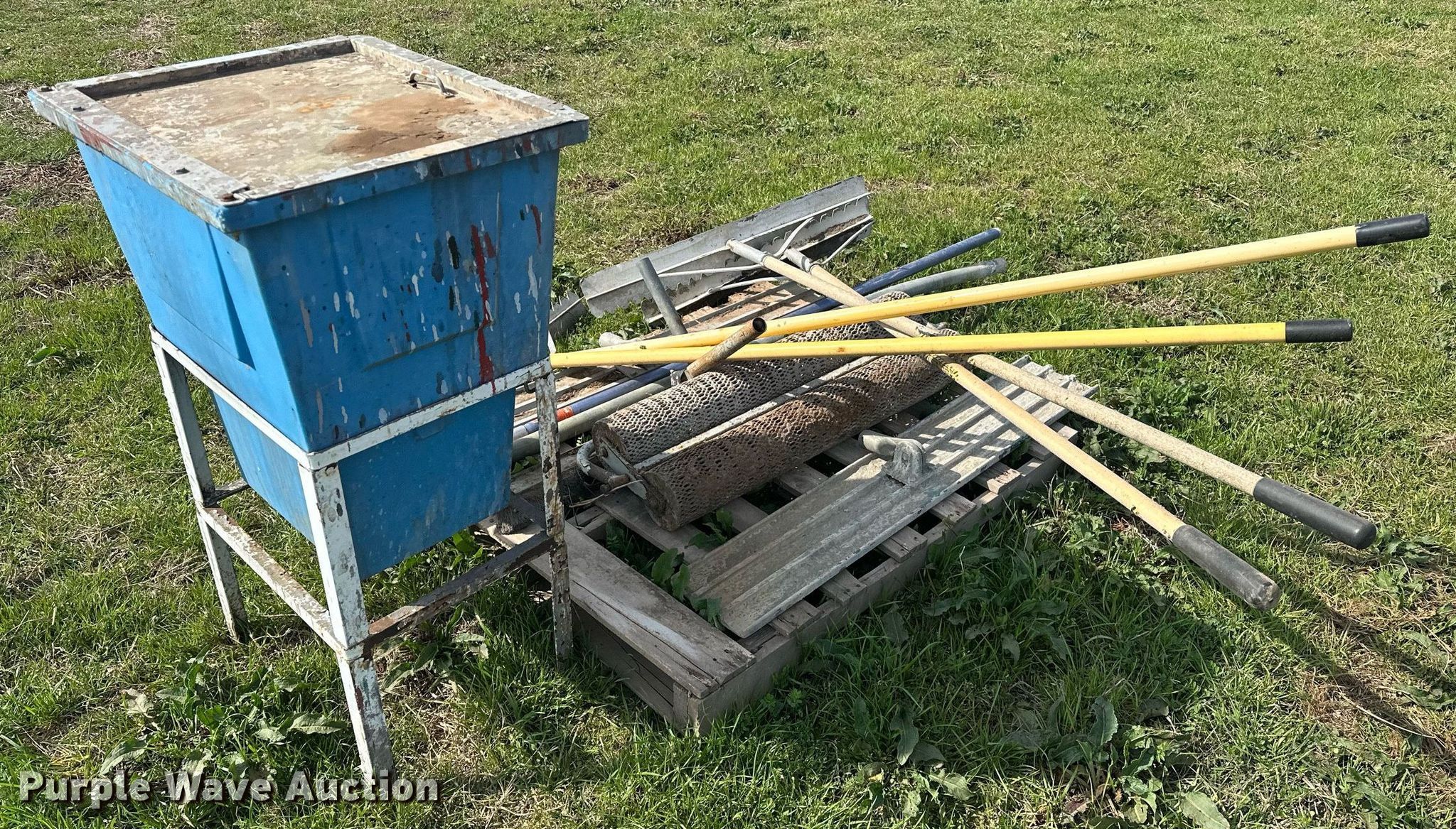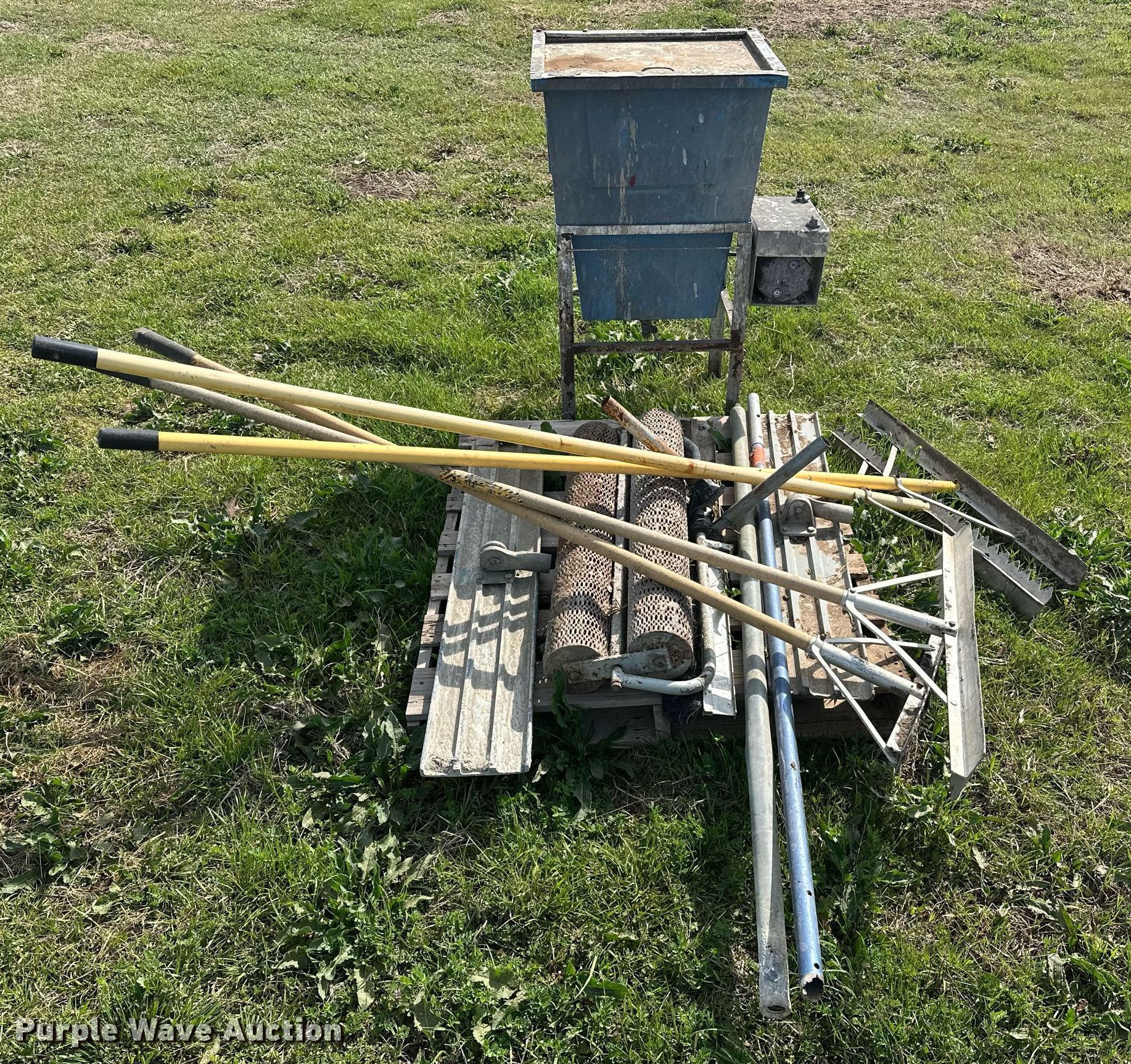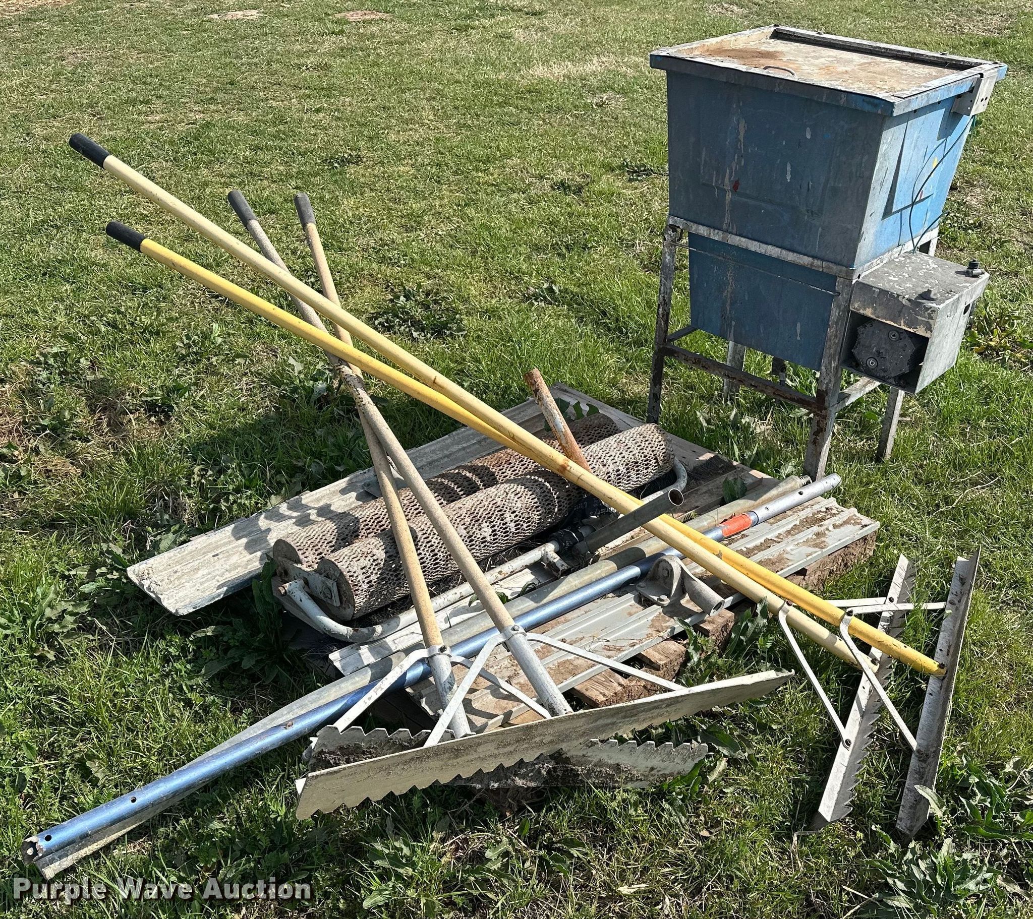 Purple Wave is selling a used Concrete Equip. or Acces. in Oklahoma. This item is a Concrete tools with the following: (4) Concrete finishing rakes, Concrete water roller, Paint mixer