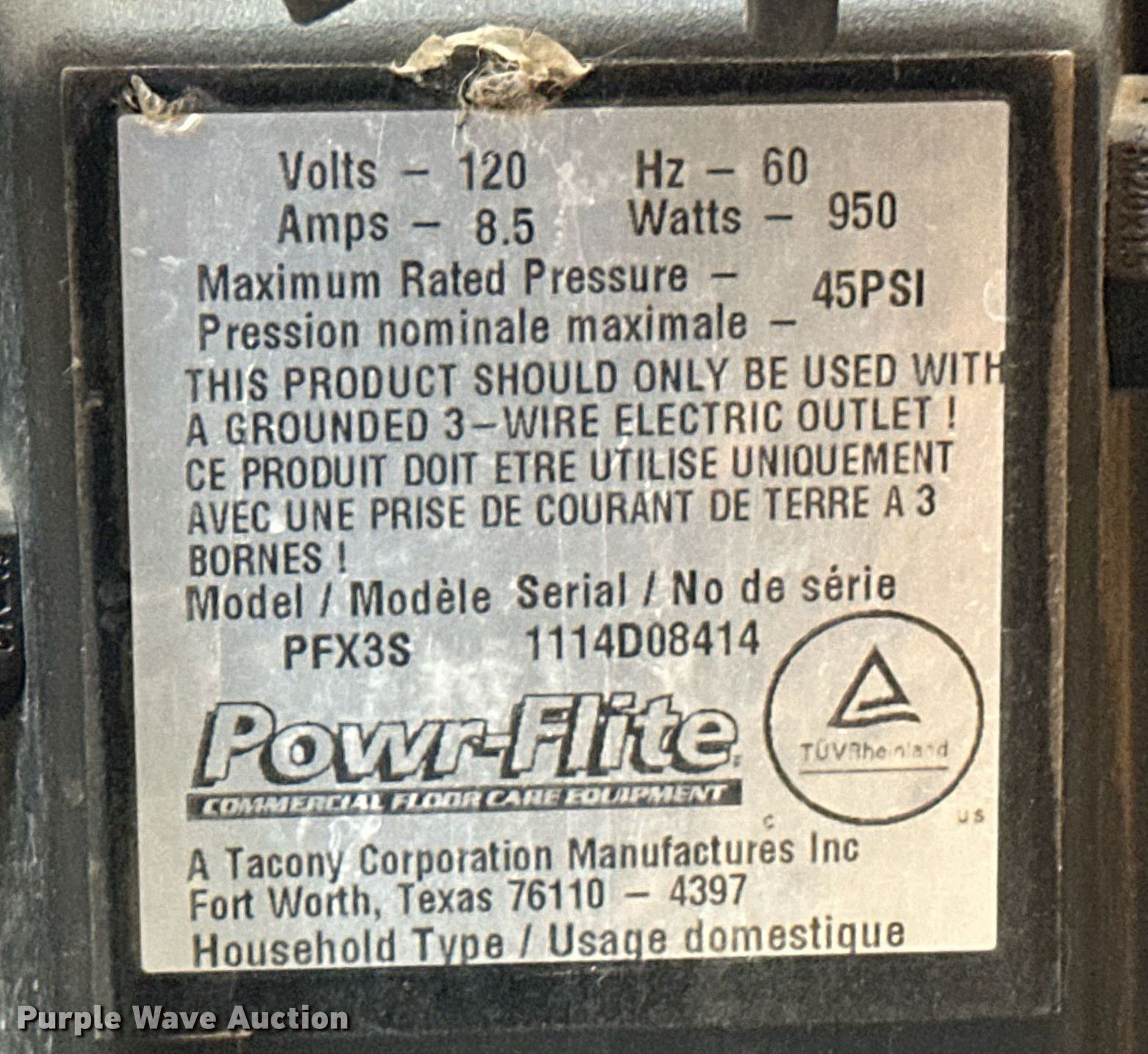 Purple Wave is selling a used Tools in Oklahoma. This item is a Floor tools with the following: Power-Flite PFX3S carpet cleaner, Volts: 120, Hz: 60, Watts: 950, Essex-Silver Line Corp. SL-8 floor sander, Electric motor: Baldor Reliancer, HP: 1.5, Volts: 115, Phase: Single