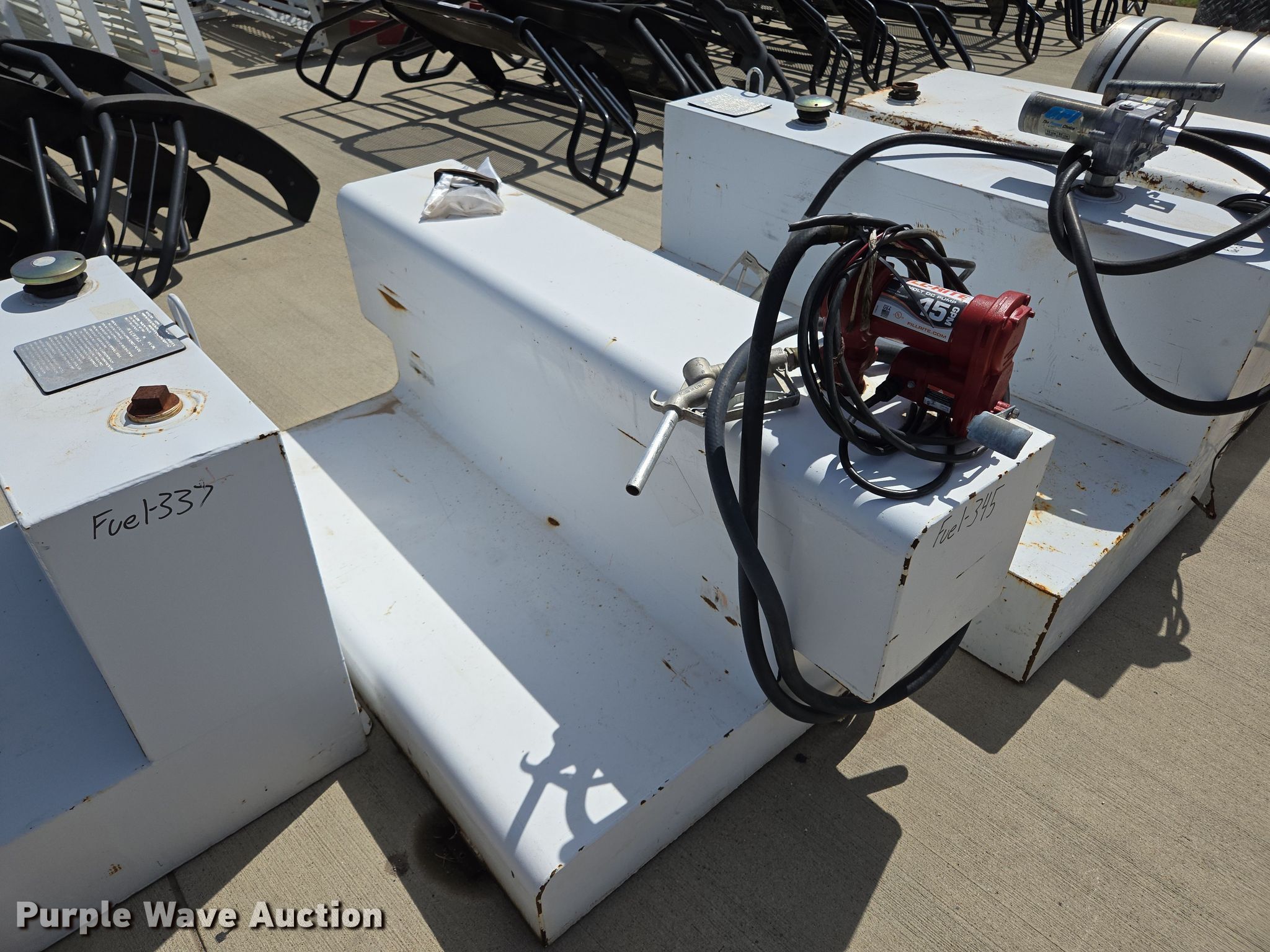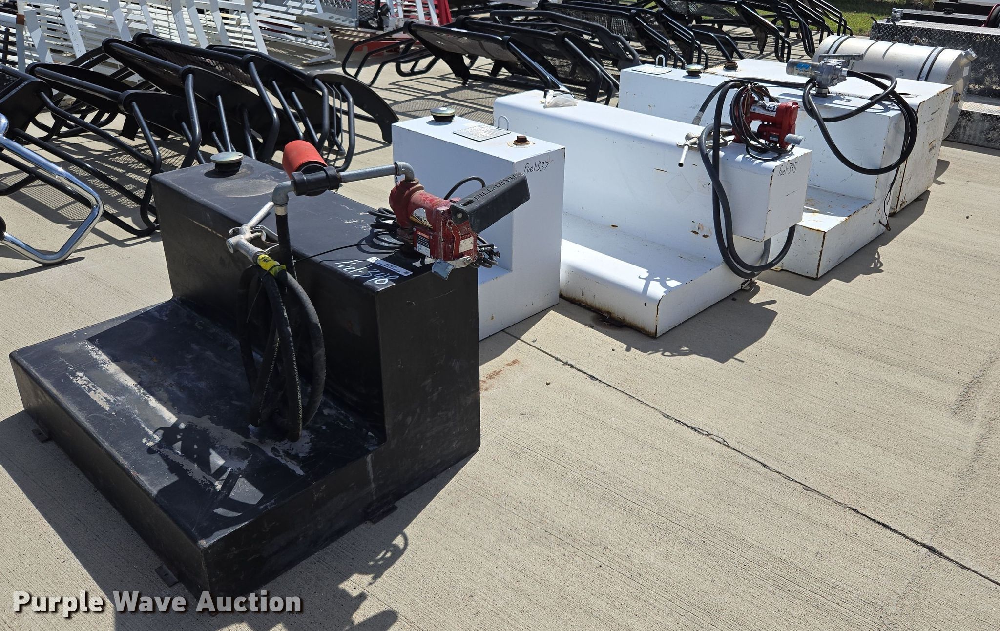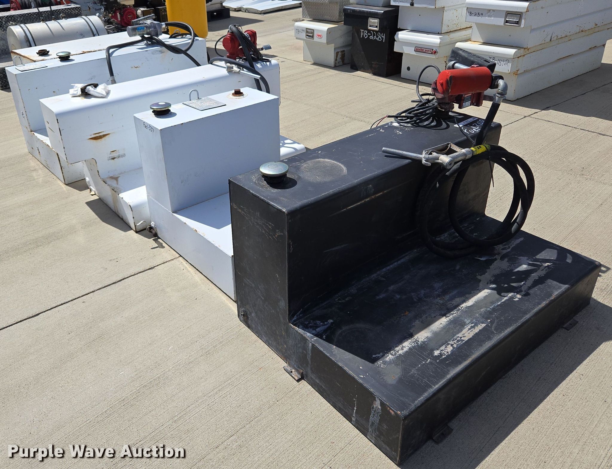 Purple Wave is selling a used Automotive Parts or Acces. in Texas. This item is a (10) auxiliary fuel tanks with the following: (4) pumps, (2) hose reels