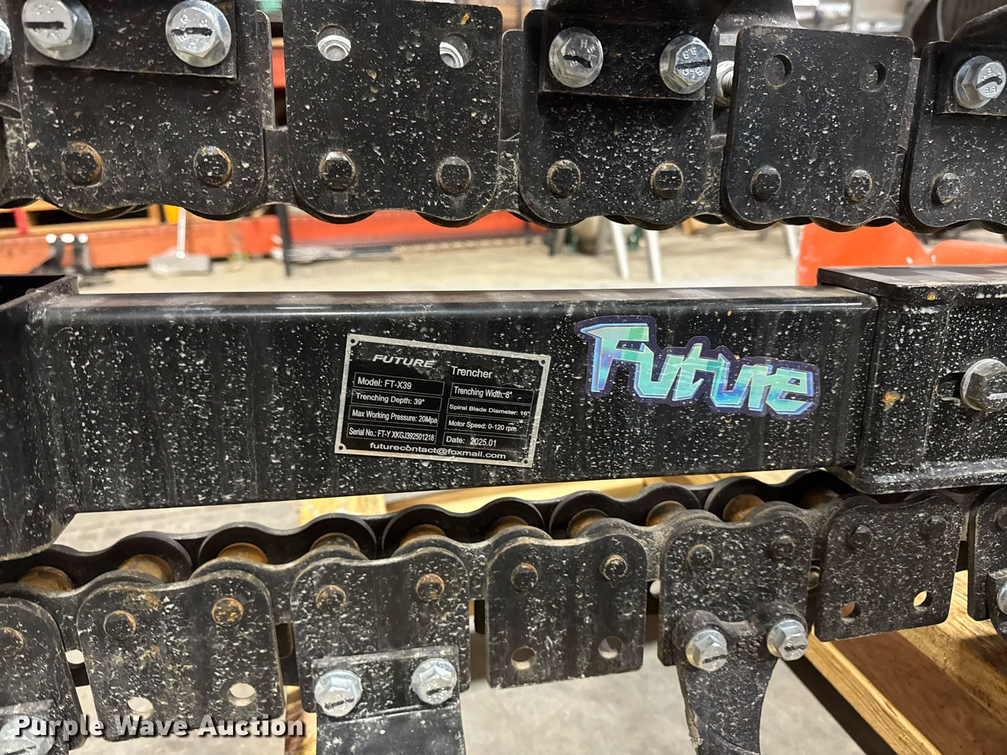 Purple Wave is selling a used Skid Steer Attach. in Iowa. This item is a 2025 Future FT-X39 skid steer trencher with the following: Serial: FT-Y XKGJ392501218, Depth: 38", Width: 6", Unused