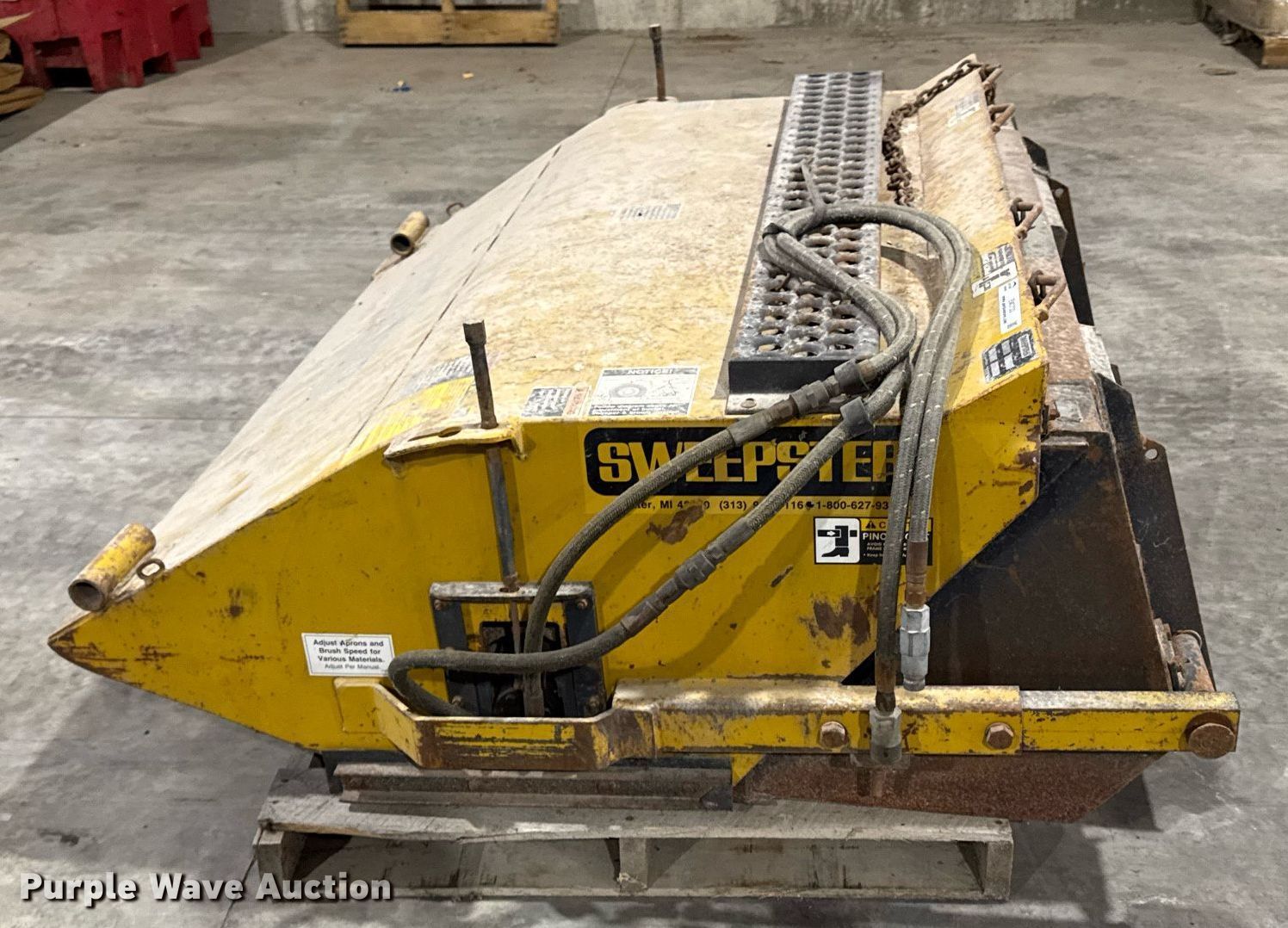 Purple Wave is selling a used Skid Steer Attach. in Iowa. This item is a Sweepster HB60 skid steer sweeper with the following: Serial: 922351, Width: 62"