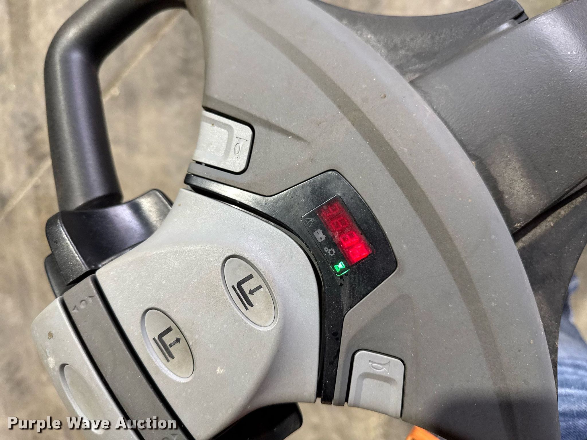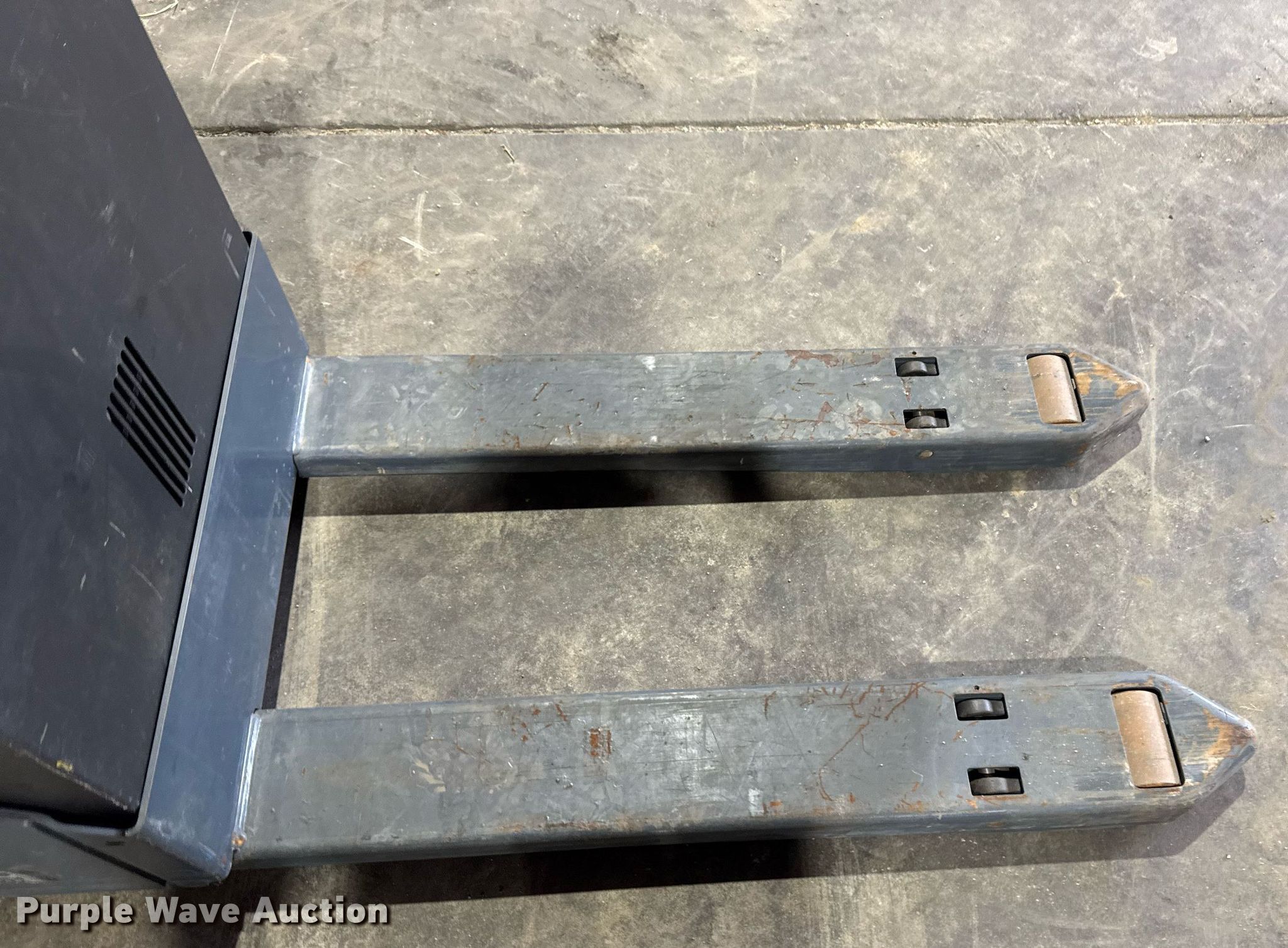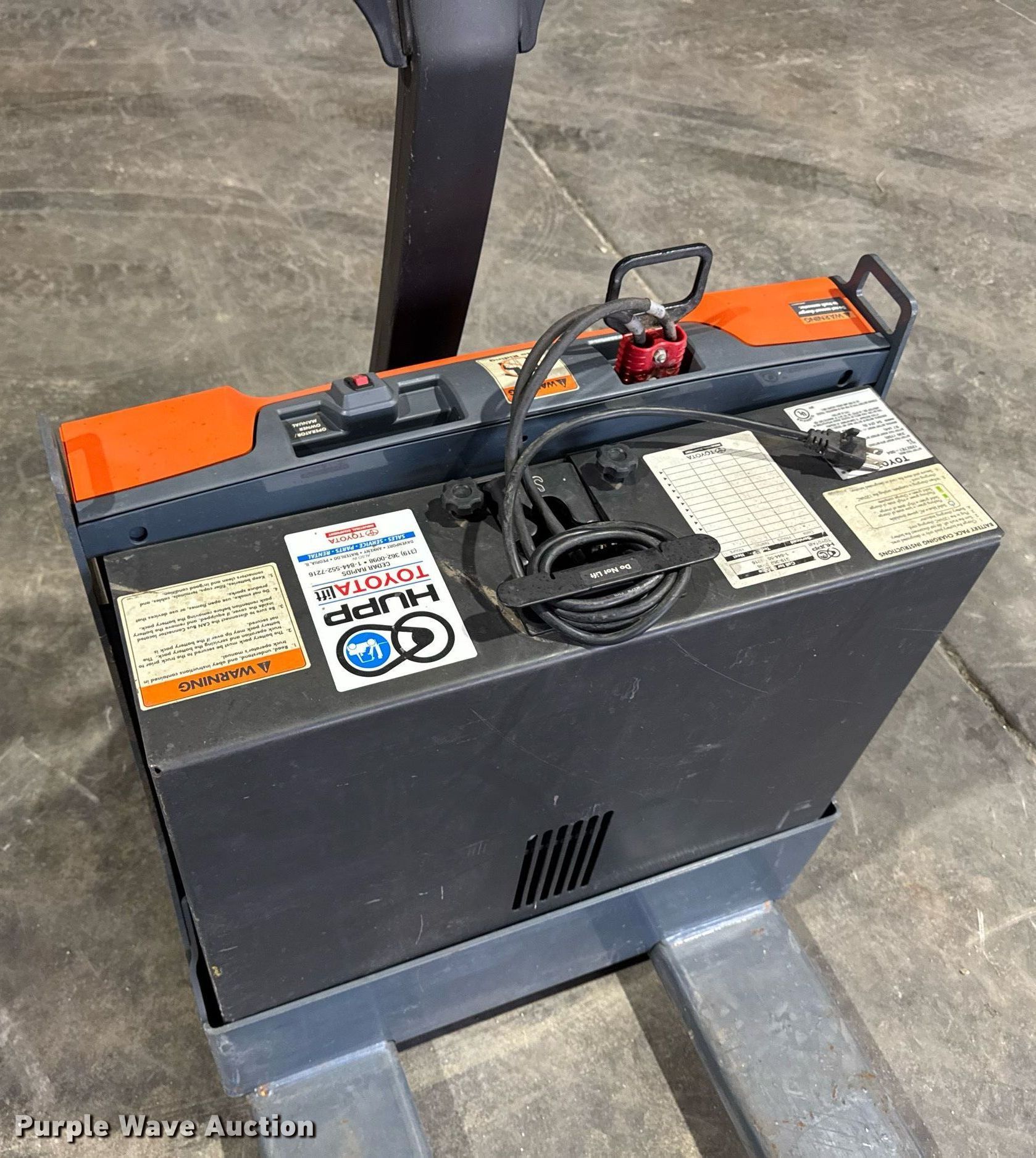 Purple Wave is selling a used Warehouse Forklift in Iowa. This item is a Toyota 8HBW23 pallet jack with the following: Hours: 14 on meter, Serial: 19418