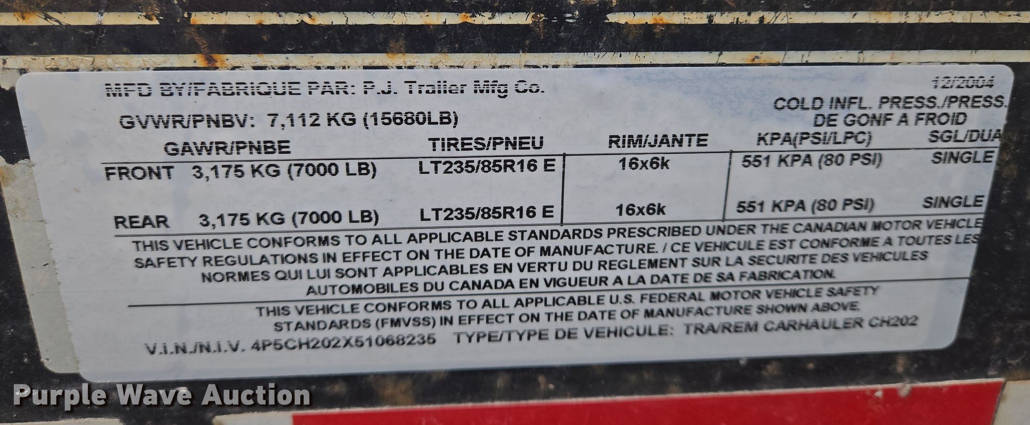 Purple Wave is selling a used Equip. Trailer in Kansas. This item is a 2005 PJ equipment trailer with the following: VIN: 4P5CH202X51068235