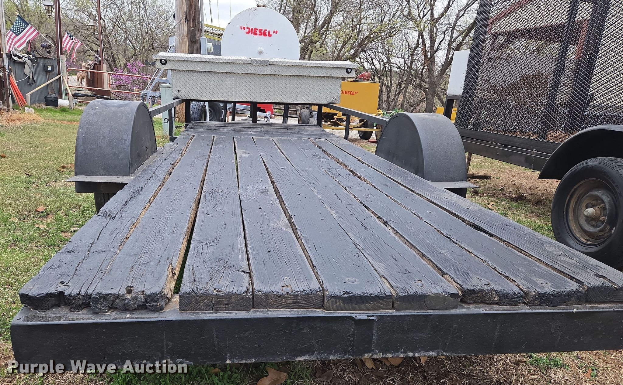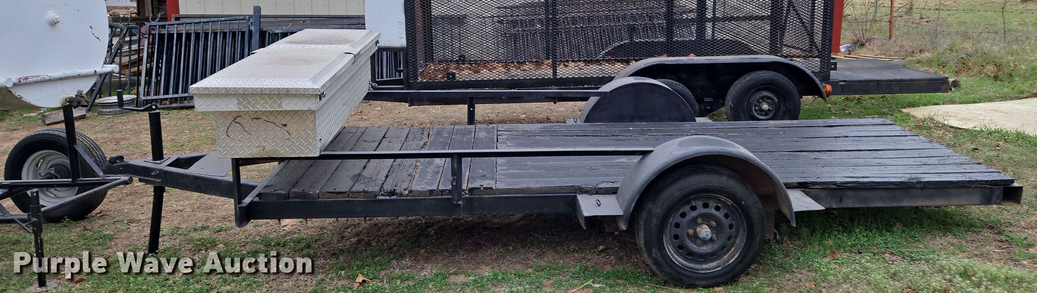 Purple Wave is selling a used Car or Utility Trailer in Oklahoma. This item is a Shop built utility trailer with the following: Overall: 15' 8" L x 74" W, Deck: 12' 7" L x 54" W