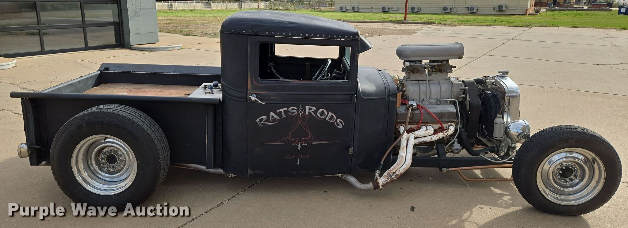 1929 Chevrolet Roadster rat rod pickup truck. Miles: 51,272 on odometer, VIN: 5LT2992. Engine 350 CID, Cylinders: 8, Fuel type: Gas, Weiand 6-71 supercharger, Dual Weber 600 CFM carburetors. Transmission Automatic. Chassis 10 bolt Positraction rear end. Tires Front: 165/80R15, Rear: 235/75R15. Kansas antique title. Title distribution may be delayed up to 30 days from verification of funds. Gulick Drilling Co., Inc.. Eureka, KS 67045