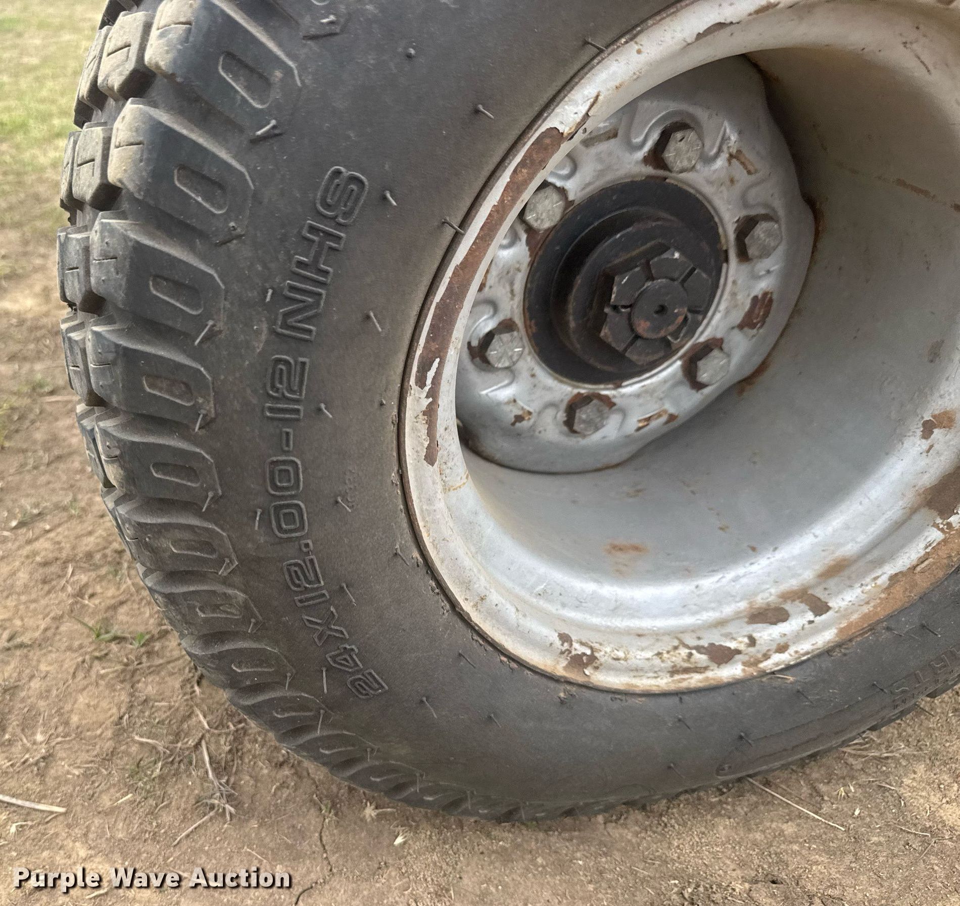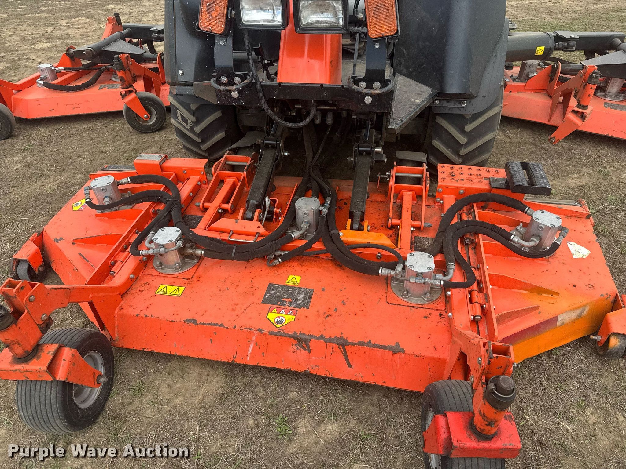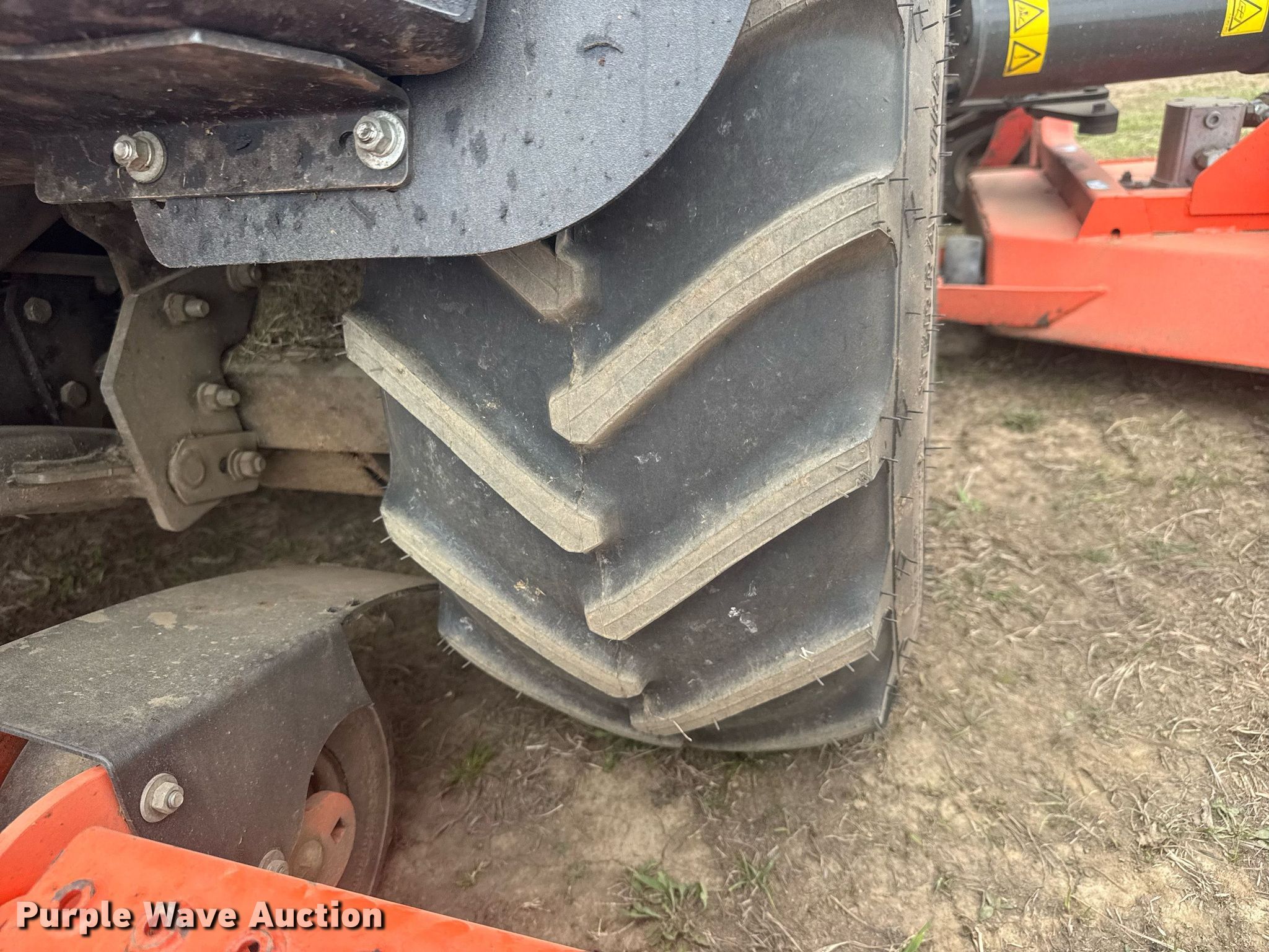Jacobson HR9016 lawn mower. Hours: 2,143 on meter, Cutting width: 192", Serial: 7053901739. Engine Kubota V3800-T, Serial: 2DE3951, Displacement: 3.8L, Cylinders: 4, Fuel type: Diesel. Transmission Hydrostatic. Chassis Four wheel drive. Operators station OROPS. Features Hydraulic fold decks, Hydraulic front deck lift. Tires Front: 29x12.50-15, Rear: 24x12.00-12. Notes Left mower deck tire and wheel missing. Ramona, OK 74061