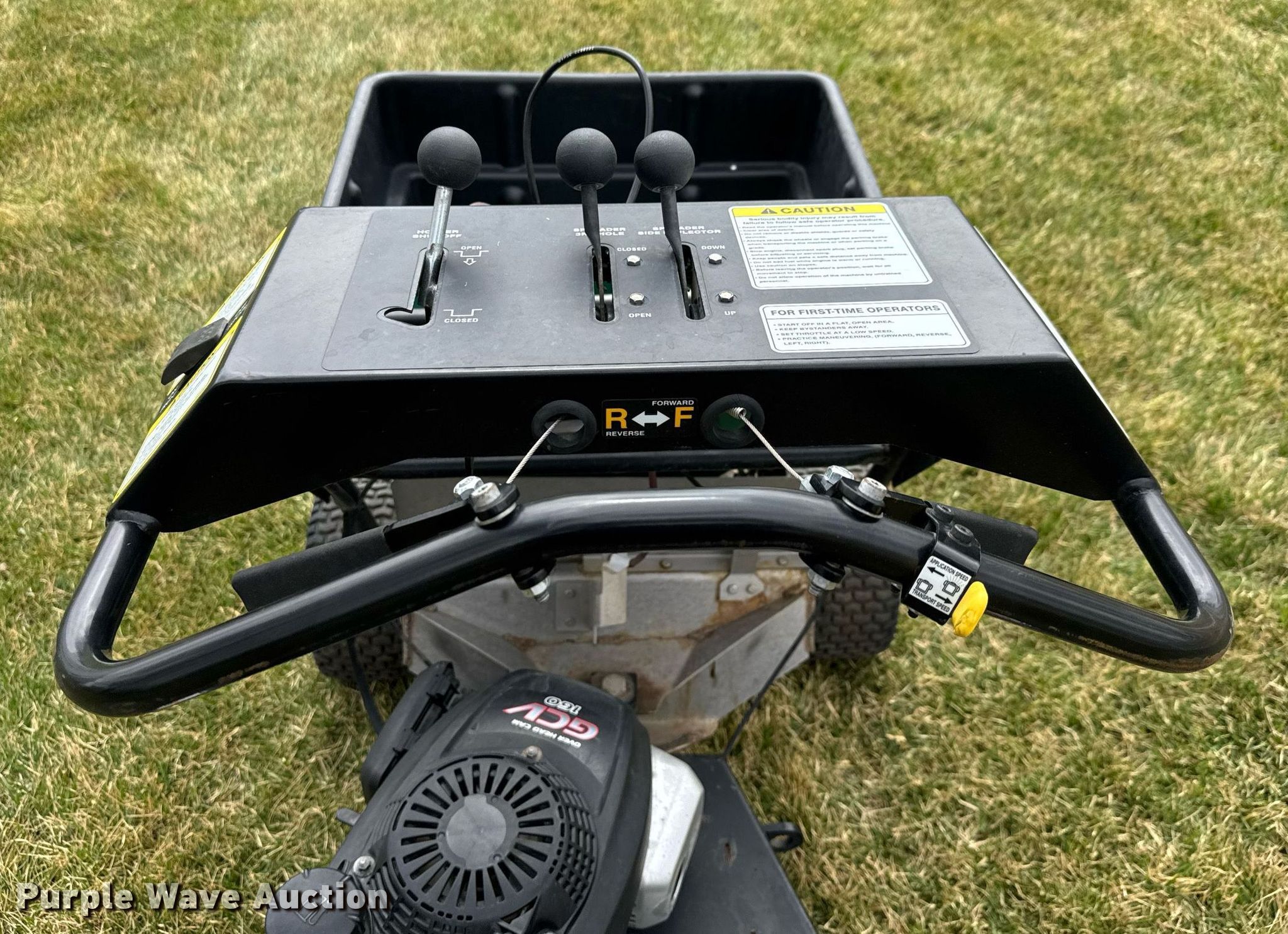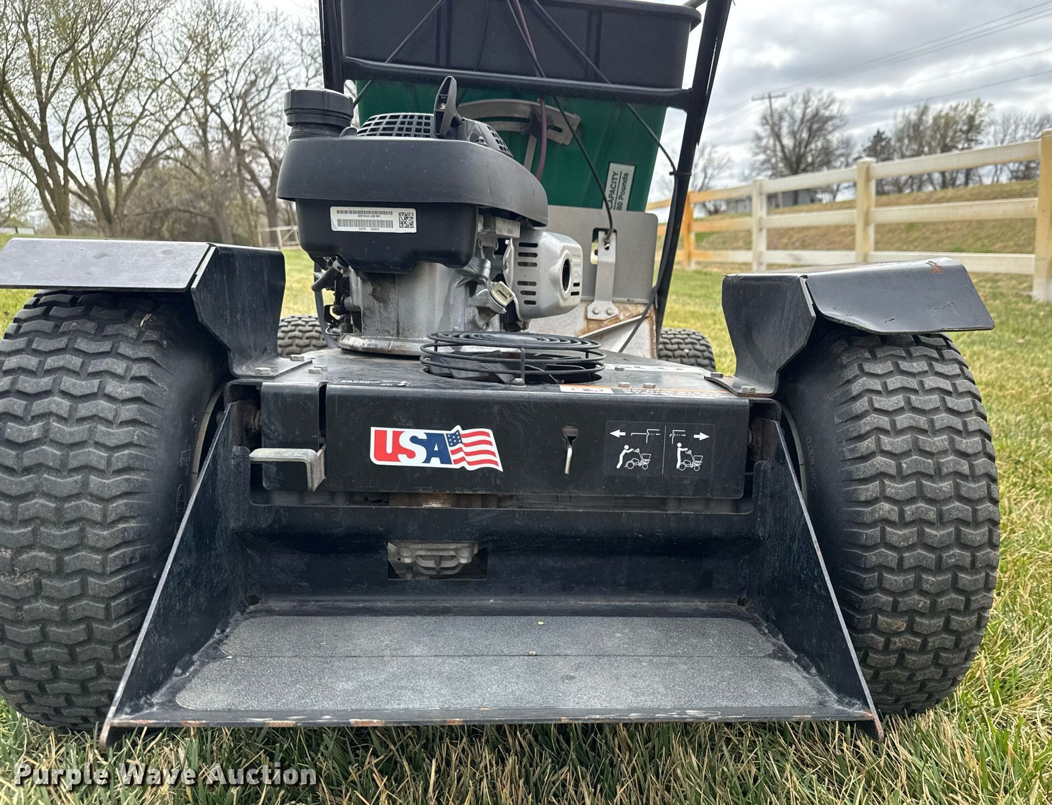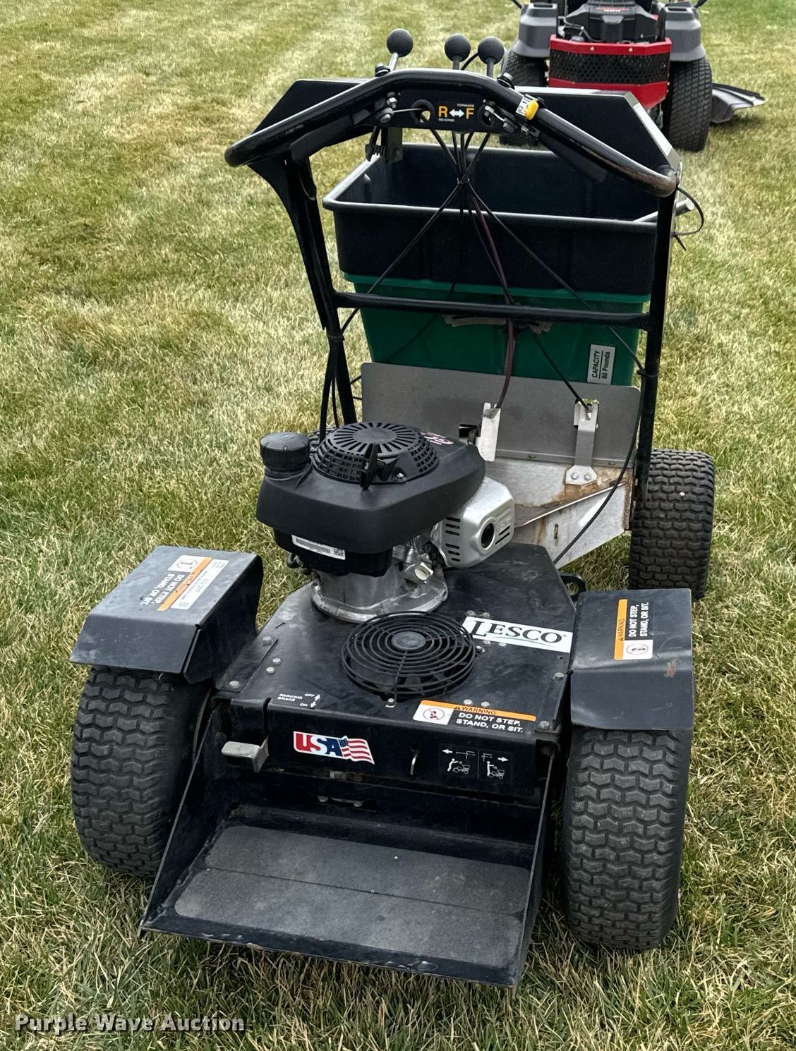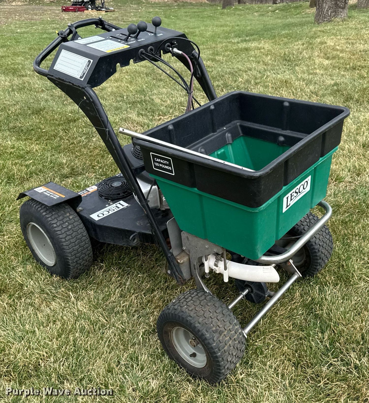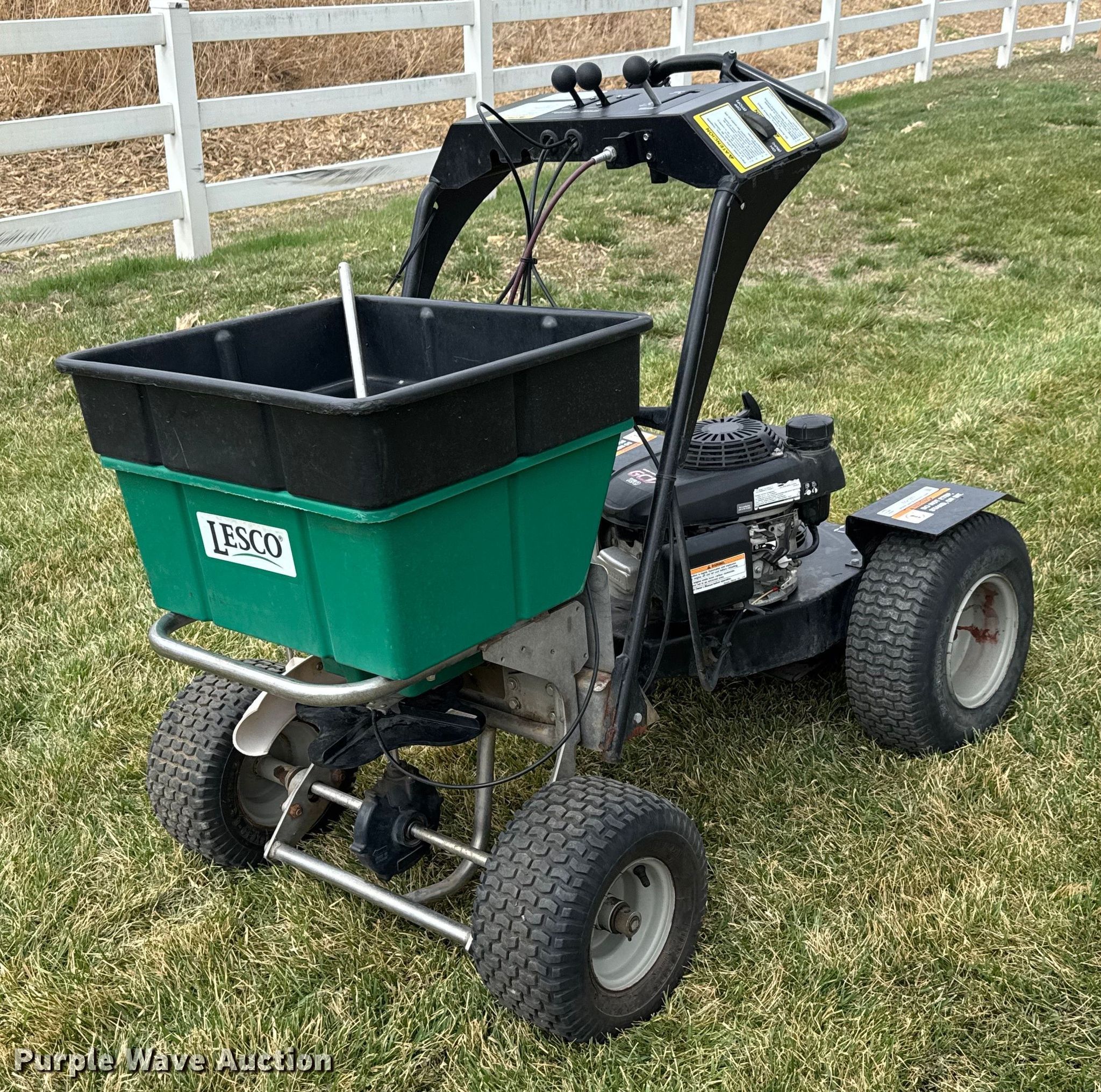 Purple Wave is selling a used Lawn and Garden in Kansas. This item is a Lesco spreader with the following: Honda GCV160, Displacement: 161 cc, Cylinders: 1, Fuel type: Gas