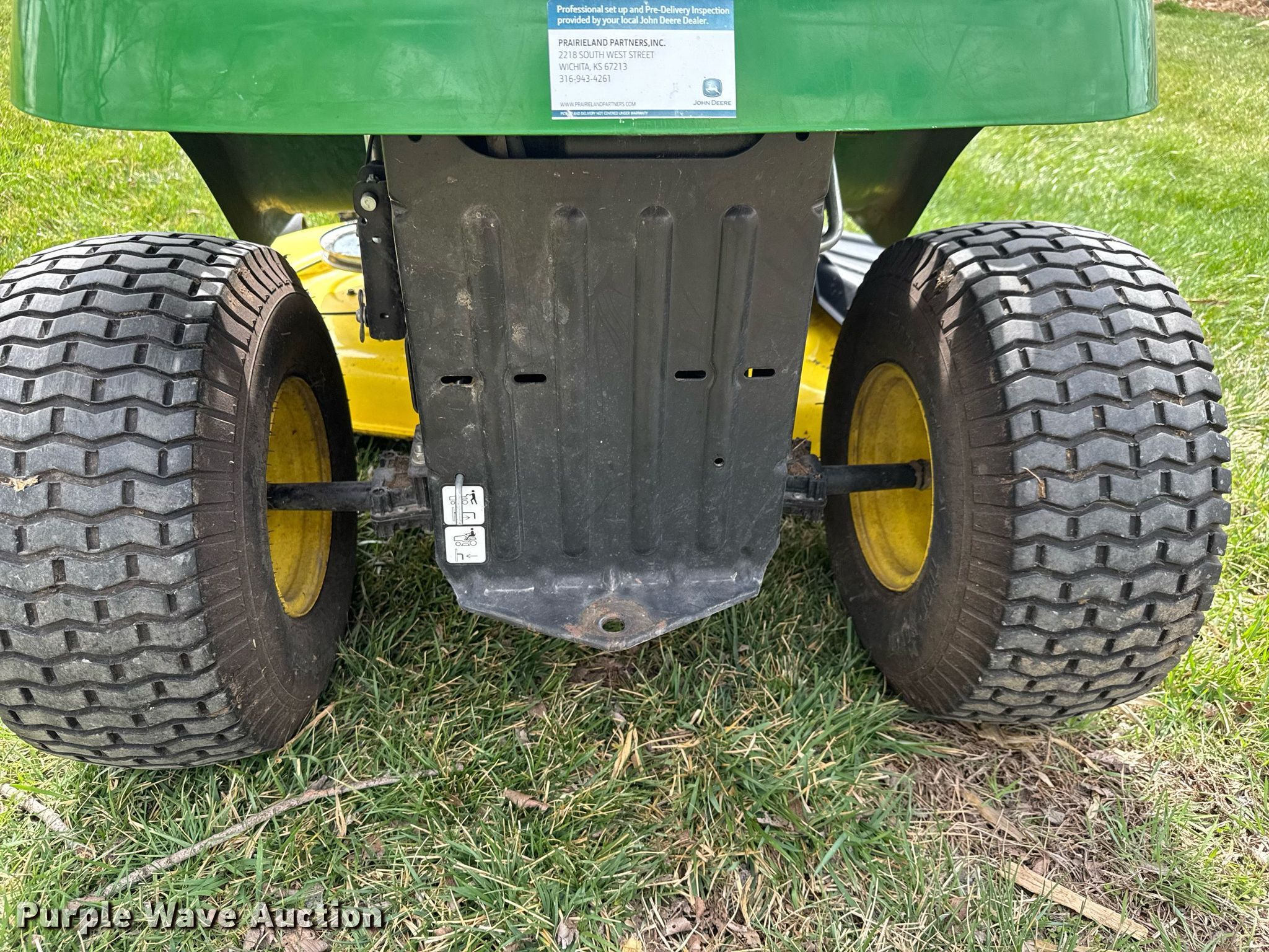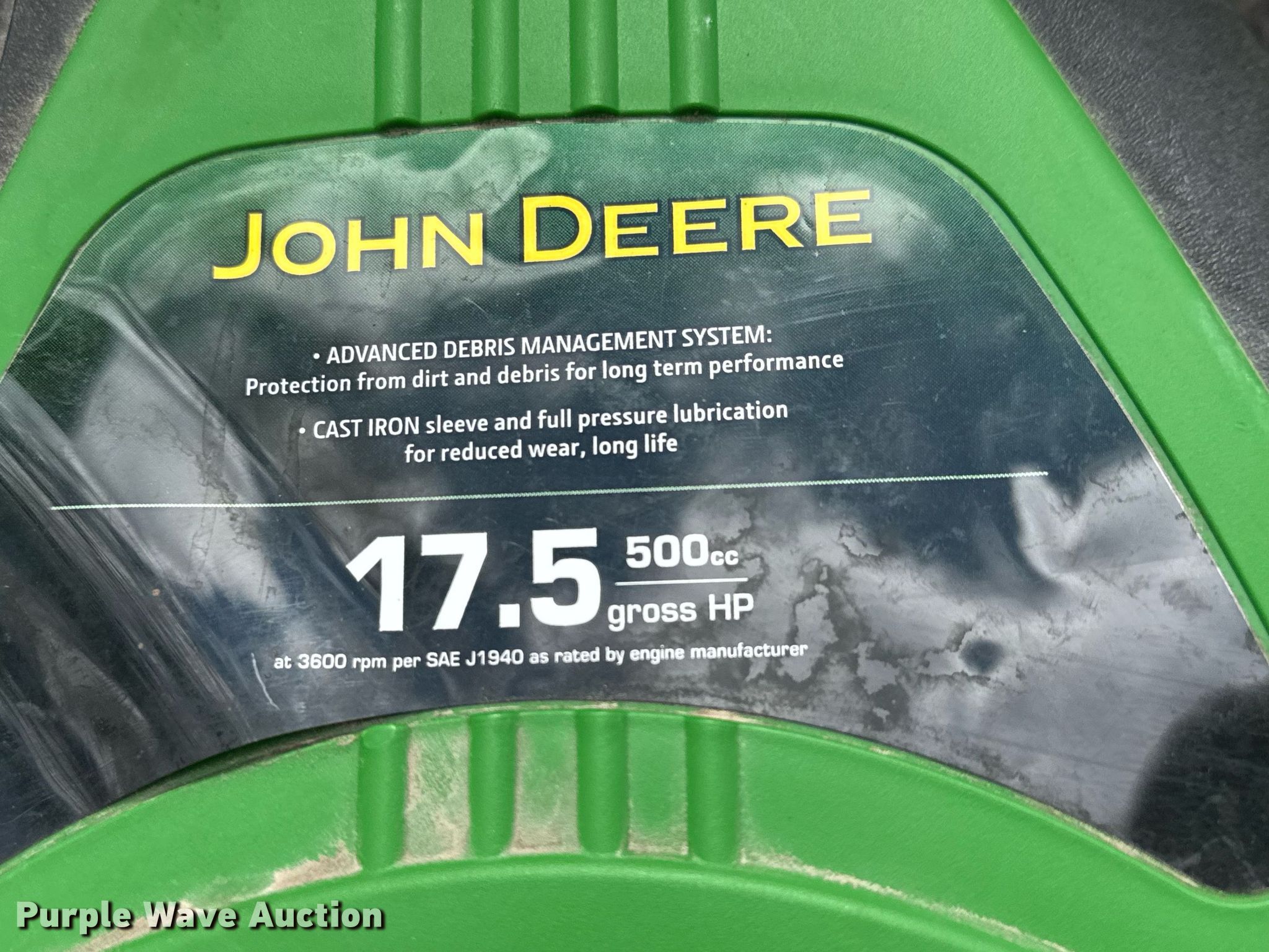 2017 John Deere D105 Auto lawn mower. Hours: 299 on meter, Cutting width: 42", Serial: 1GXD105ELHH834143. Engine Briggs & Stratton, Displacement: 500 cc, Cylinders: 1, Fuel type: Gas, HP: 17.5. Transmission Hydrostatic. Tires Front: 15x6.00-6, Rear: 20x8.00-8. Sedgwick, KS 67135