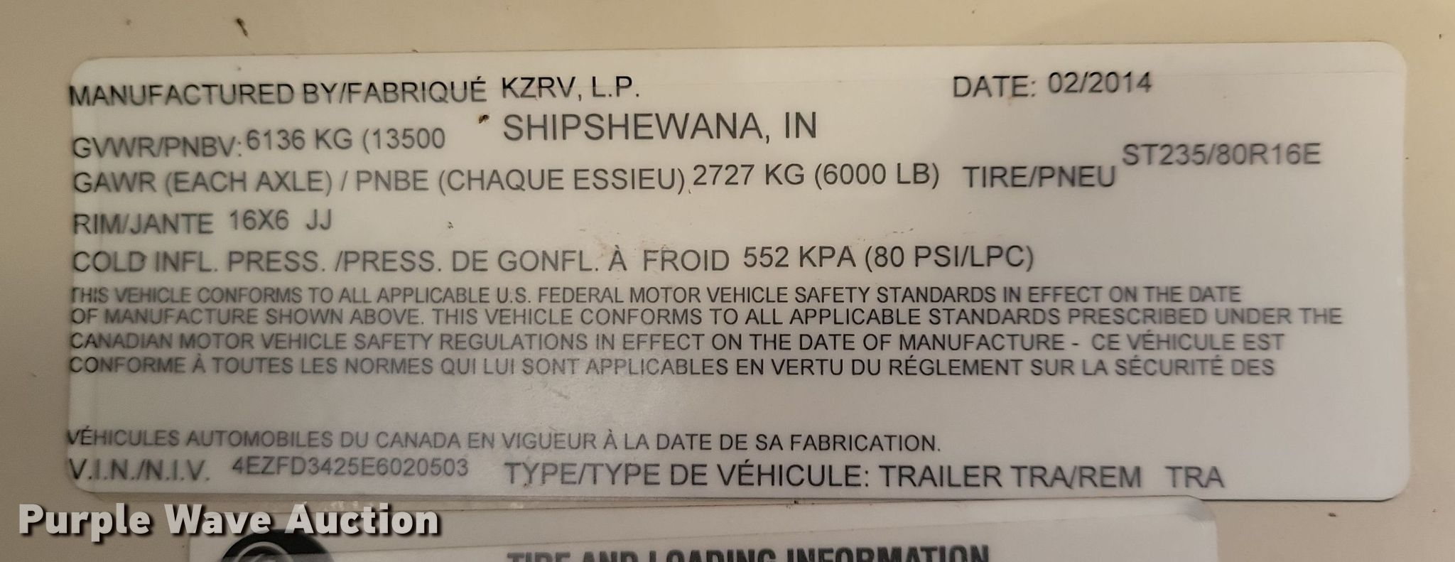 Purple Wave is selling a used RV or Camper in South Dakota. This item is a 2014 KZRV Durango 345SE camper with the following: Camper length: 36', VIN: 4EZFD3425E6020503