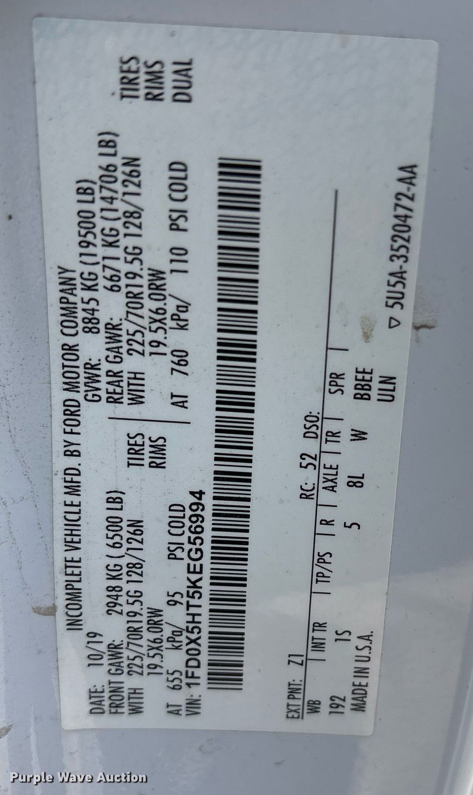 - VIN: 1FD0X5HT5KEG56994