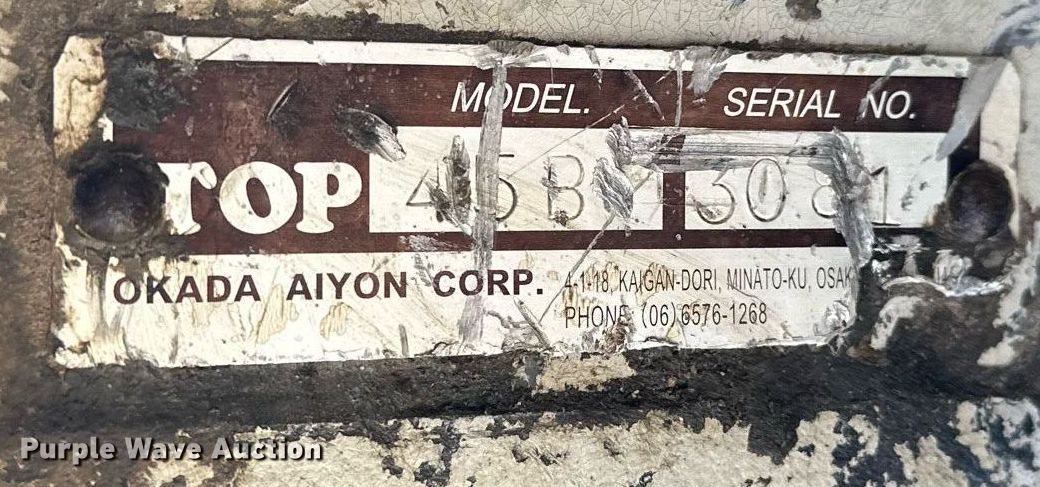 Purple Wave is selling a used Breaker or Hammer in Kansas. This item is a Okada TOP 45B breaker with the following: Serial: 3081