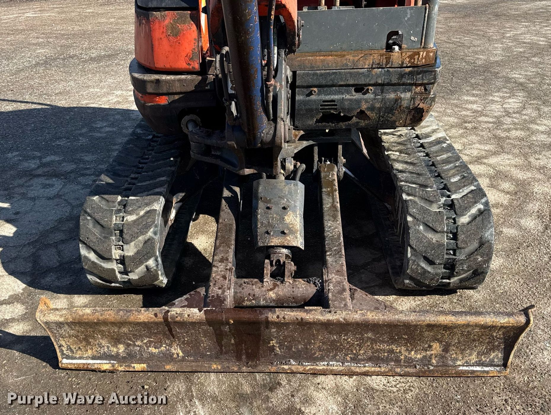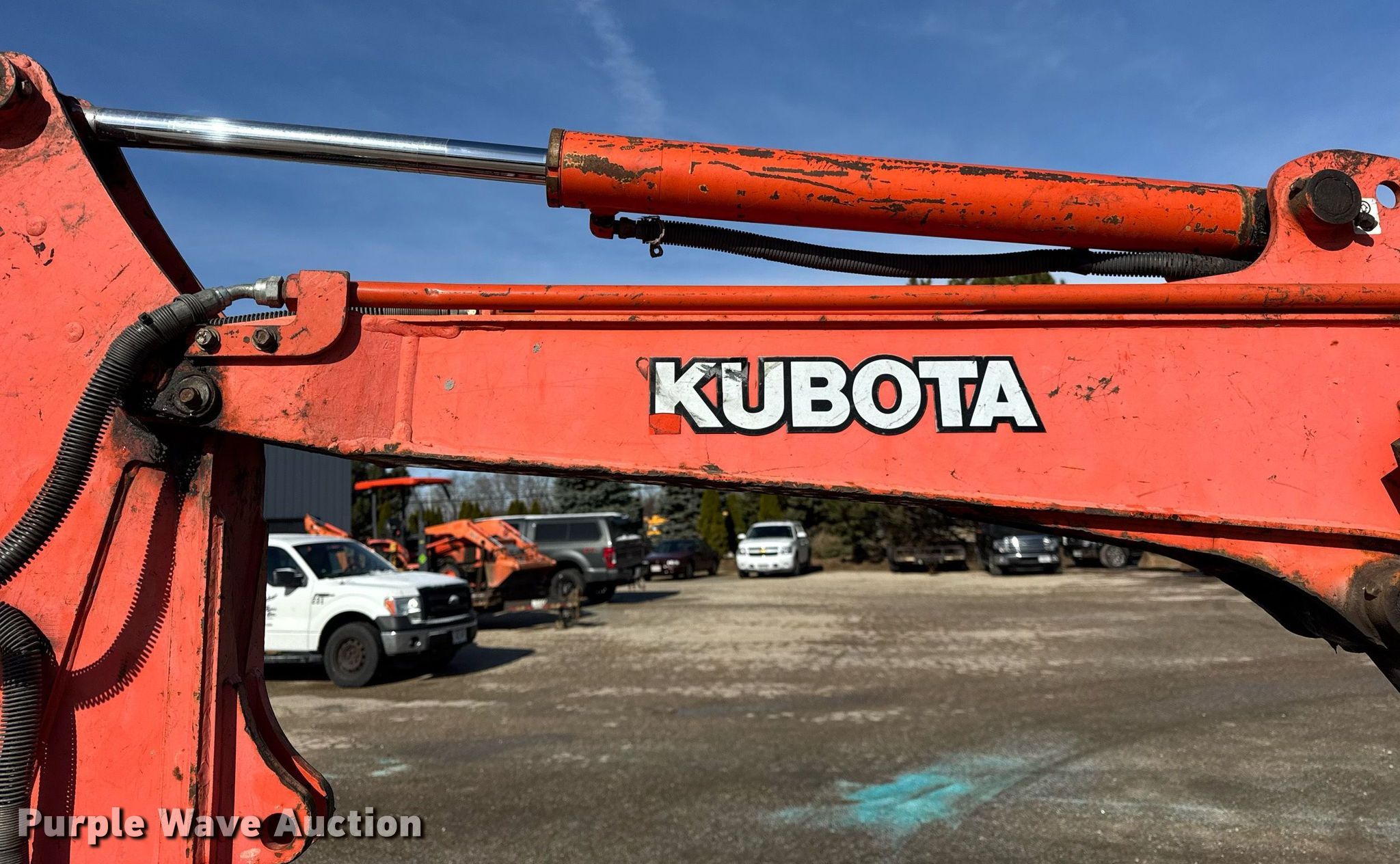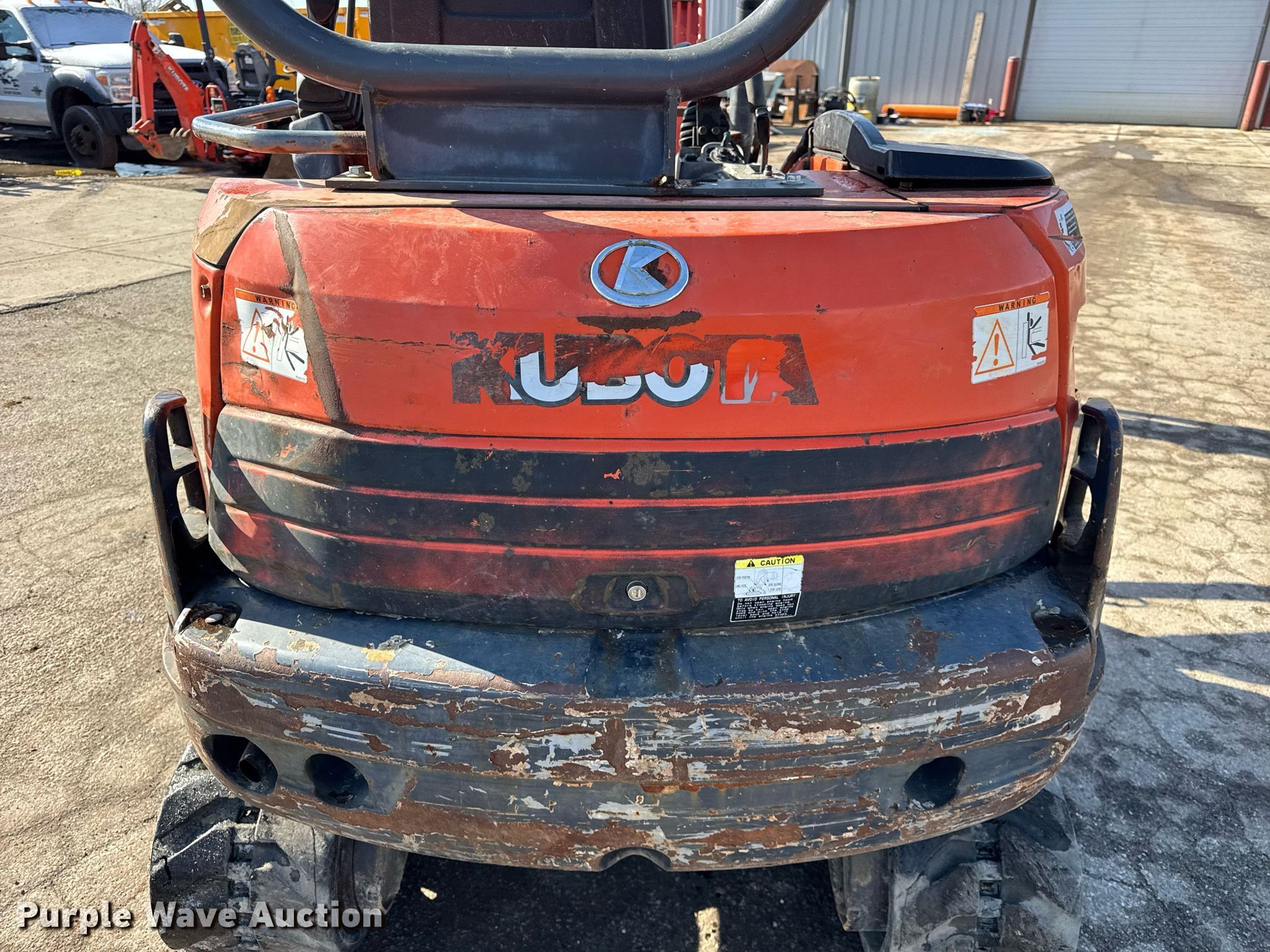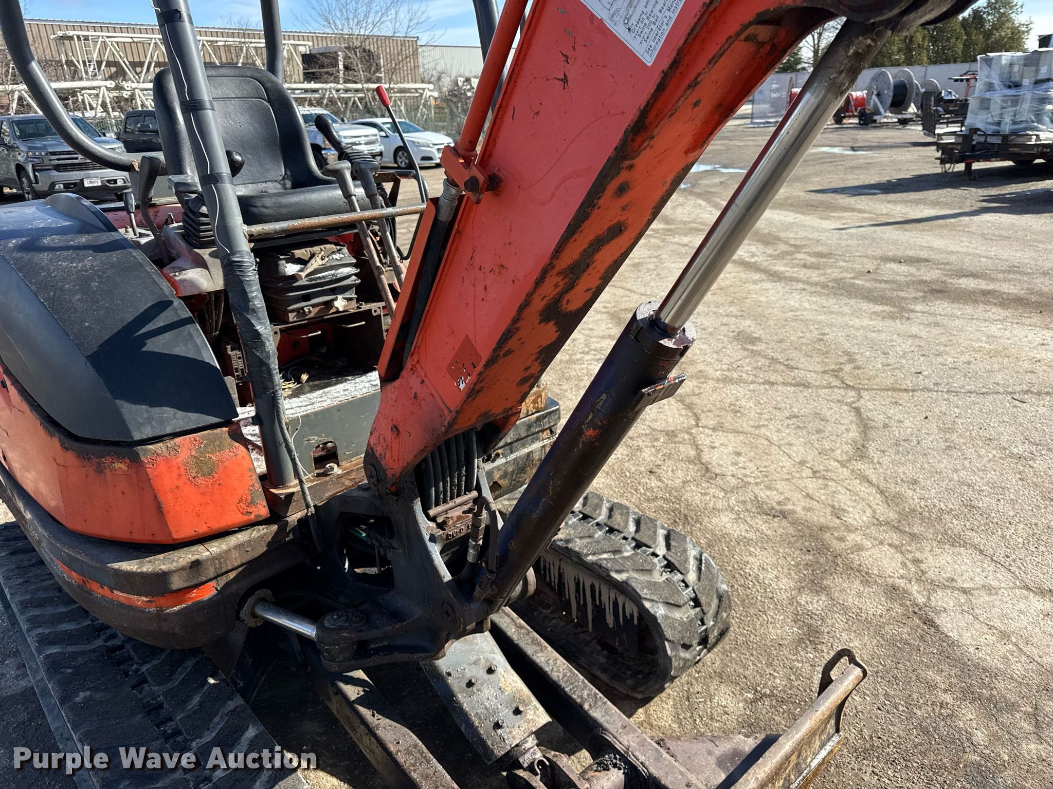 2006 Kubota KX71-3 mini excavator. Hours: 1,900 on meter, Serial: 11387, Unit #: B27. Engine Kubota V1505, Cylinders: 4, Fuel type: Diesel. Transmission Hydrostatic, Two speed travel. Operators station OROPS. Features Auxiliary hydraulics, Backfill blade Width: 58", Boom Swing, Stick Stick length: 4' 5", Quick coupler: Mechanical, Bucket Width: 12", Teeth: 3. Tracks Width: 12", Rubber. Ken Becker & Sons. Lannon, WI 53046
