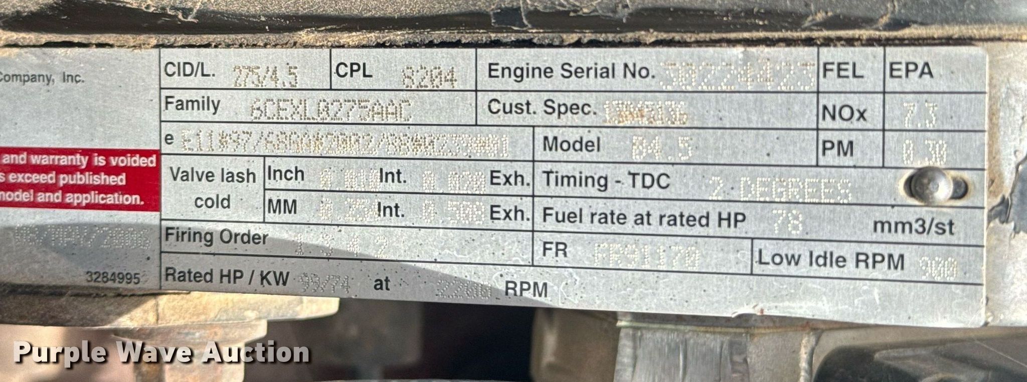 2006 Ingersoll Rand SD-77DX TF single drum vibratory roller. Hours: 3,078 on meter, Serial: 190749, Unit #: D9. Engine Cummins B4.5, Displacement: 4.5L, Cylinders: 4, Fuel type: Diesel. Transmission Hydrostatic. Operators station OROPS. Features Drum: Smooth, Vibratory system: Single, Front drum Width: 66", Diameter: 48", Drum scrapers: Front, Rear. Tires Size: 14.9-24. Notes Vibratory system issues, High idle issues. Paragon Contractors. Tulsa, OK 74116