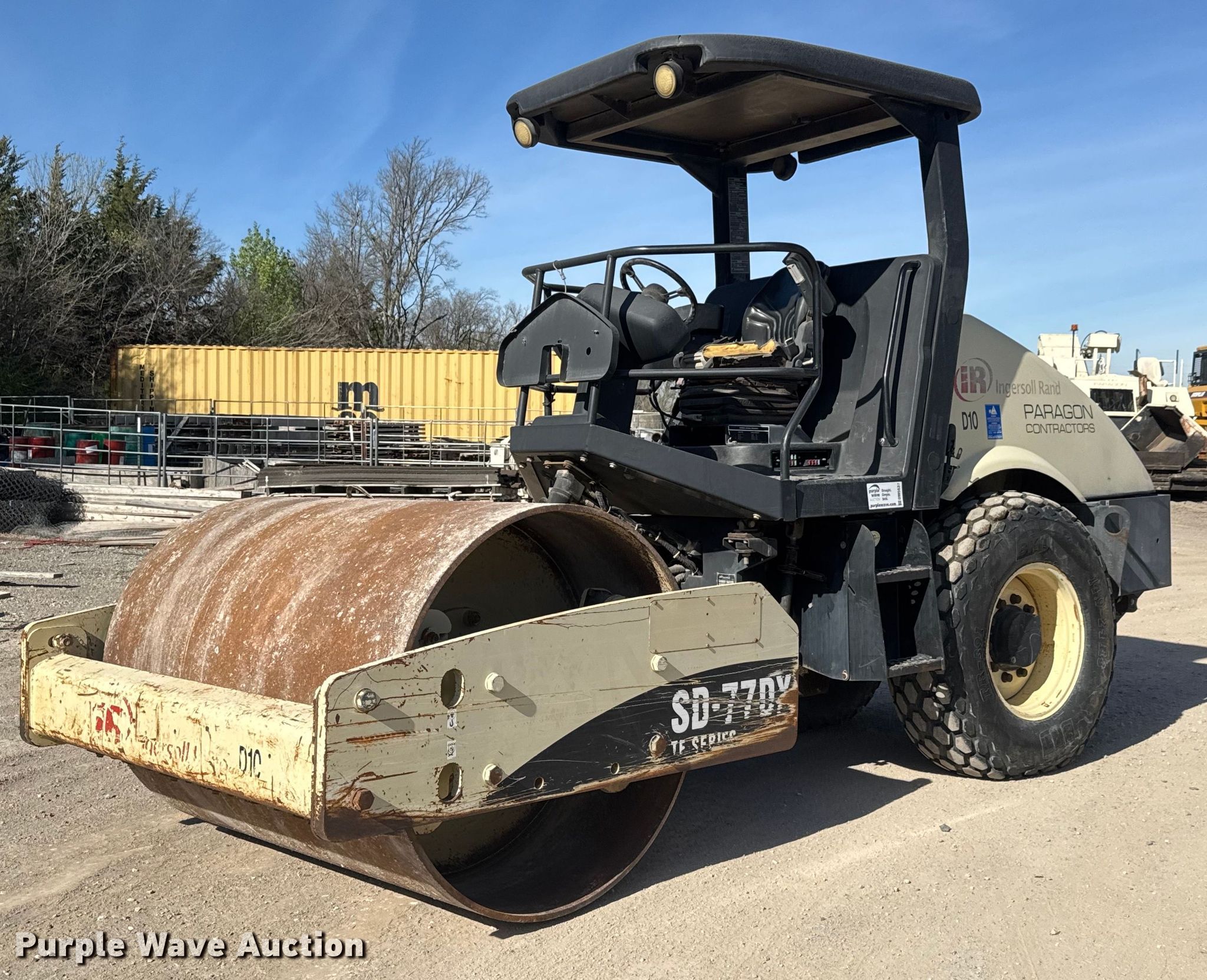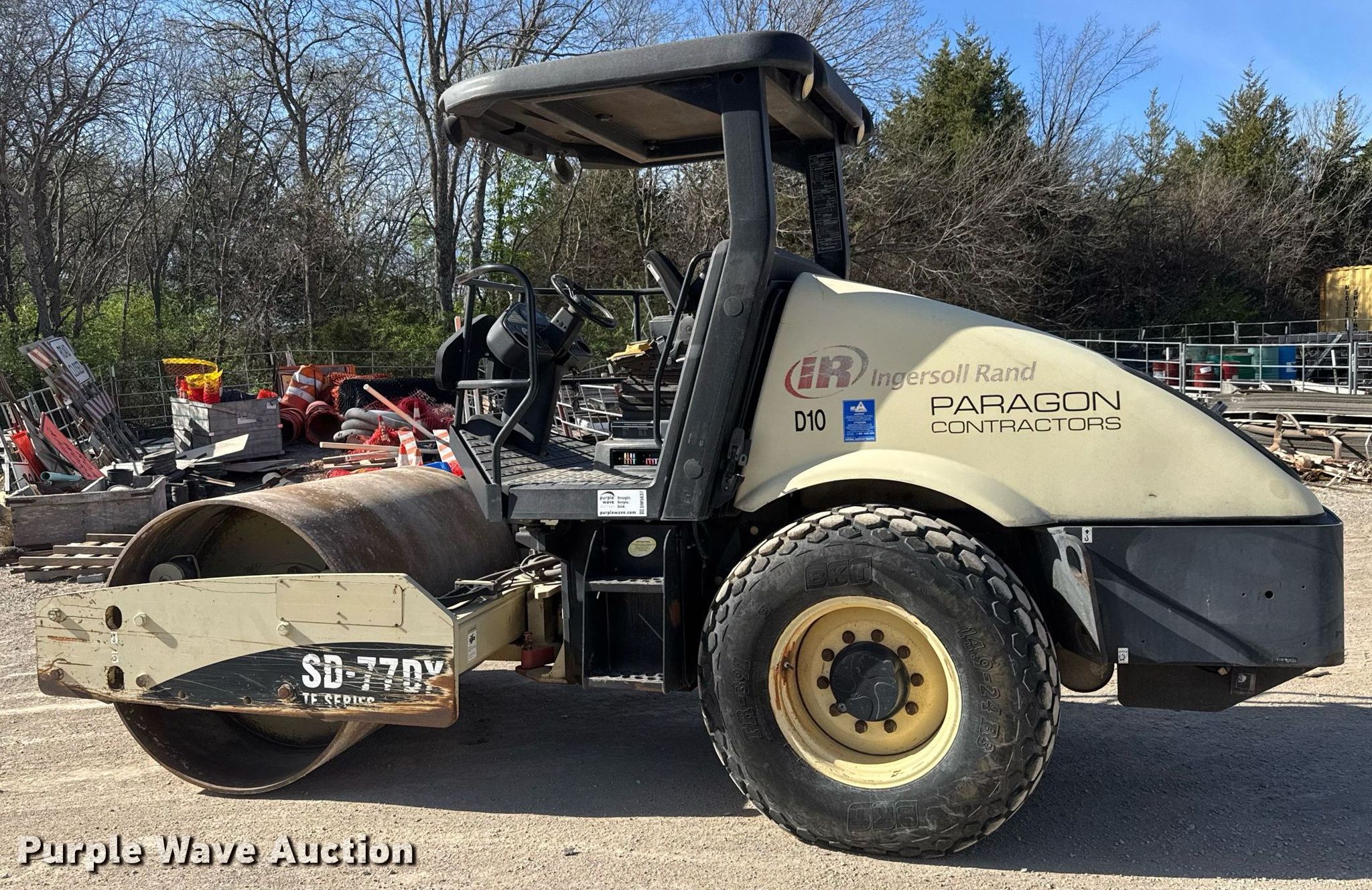 Purple Wave is selling a used Single Drum Roller Compactor in Oklahoma. This item is a 2006 Ingersoll Rand SD-77DX TF single drum vibratory roller with the following: Hours: 3,979 on meter, Serial: 189841, Unit #: D10