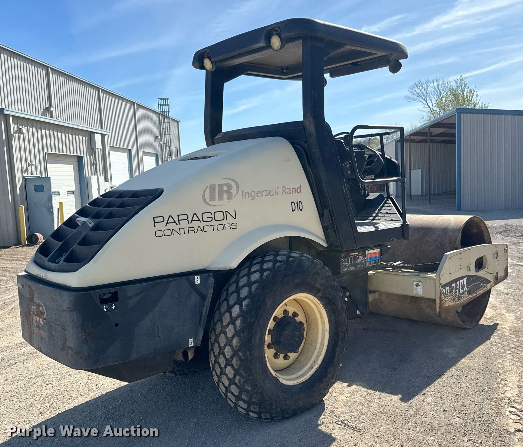 2006 Ingersoll Rand SD-77DX TF single drum vibratory roller. Hours: 3,979 on meter, Serial: 189841, Unit #: D10. Engine Cummins B4.5, Displacement: 4.5L, Cylinders: 4, Fuel type: Diesel. Transmission Hydrostatic. Features Drum: Smooth, Vibratory system: Single, Front drum Width: 66", Diameter: 48", Drum scrapers: Front, Rear. Tires Size: 14.9-24R3. Paragon Contractors. Tulsa, OK 74116