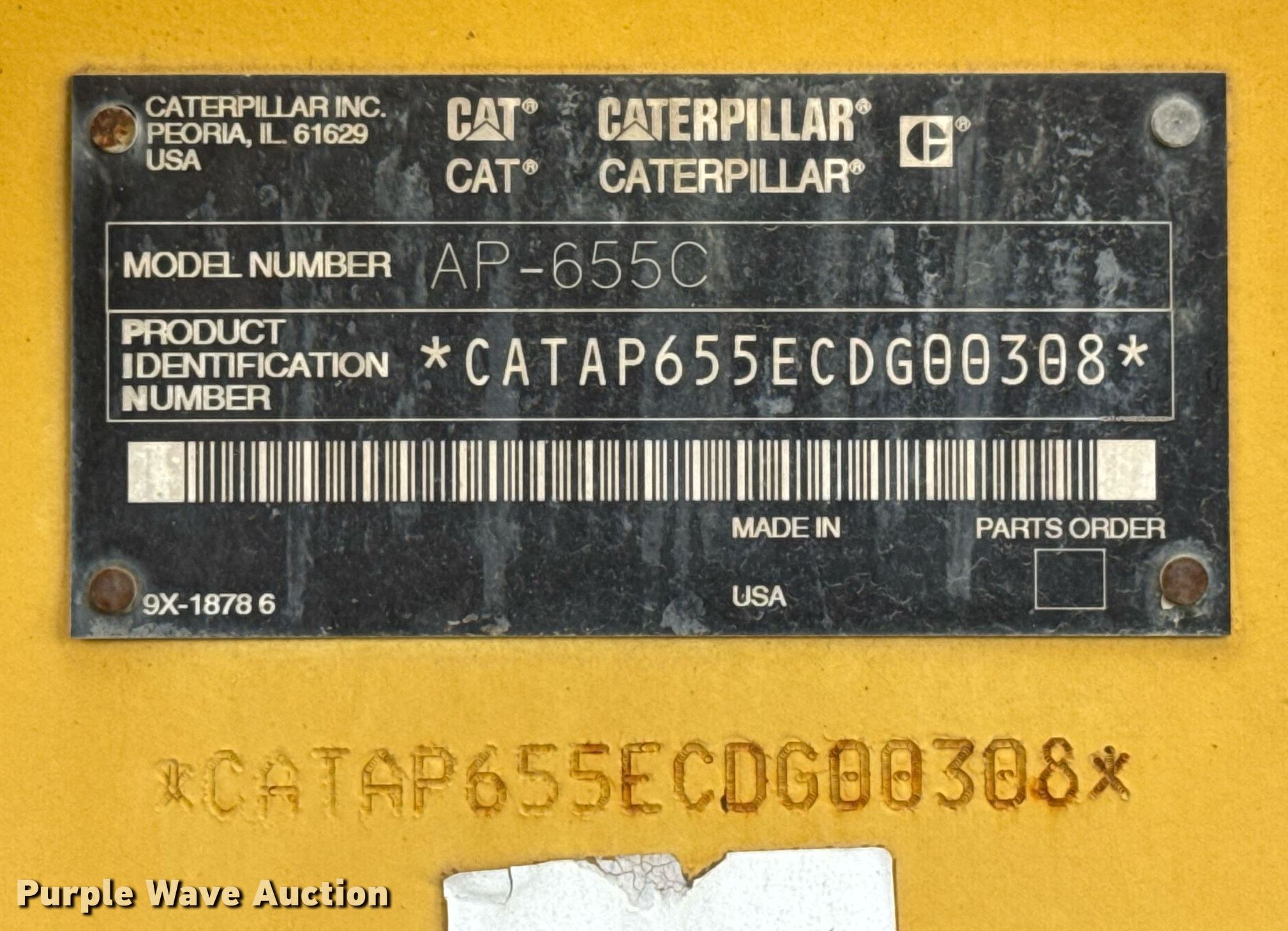 Purple Wave is selling a used Paver or Screed in Oklahoma. This item is a 2004 Caterpillar AP-655C paver with the following: Hours: 9,111 on meter, Serial: CATAP655ECDG00308, Unit #: AS3