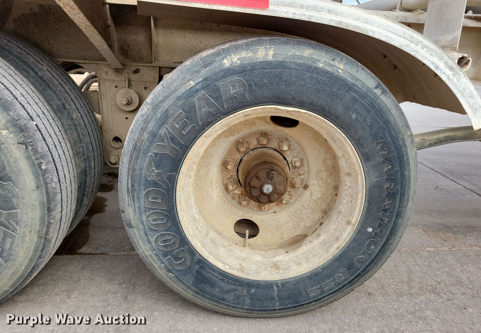 1988 Fruehauf pneumatic dry bulk trailer. VIN: 1H4B04321JL021502. Dimensions Overall: 43' L x 102" W. Features Tank type: Aluminum, Compartments: 4, Outlet valves: 4, No. of manways/manholes: 4. Chassis Landing gear: Dual, Suspension: Spring, Brakes: Air, Axles: Tandem, GVWR: 58,000 lbs, GAWR: 20,000 lbs. Tires Steel wheels, Size: 285/75R24.5. Notes Semi not included. South Dakota title. Title distribution may be delayed up to 30 days from verification of funds. Concrete Materials - Sweetman Const.. Sioux Falls, SD 57107