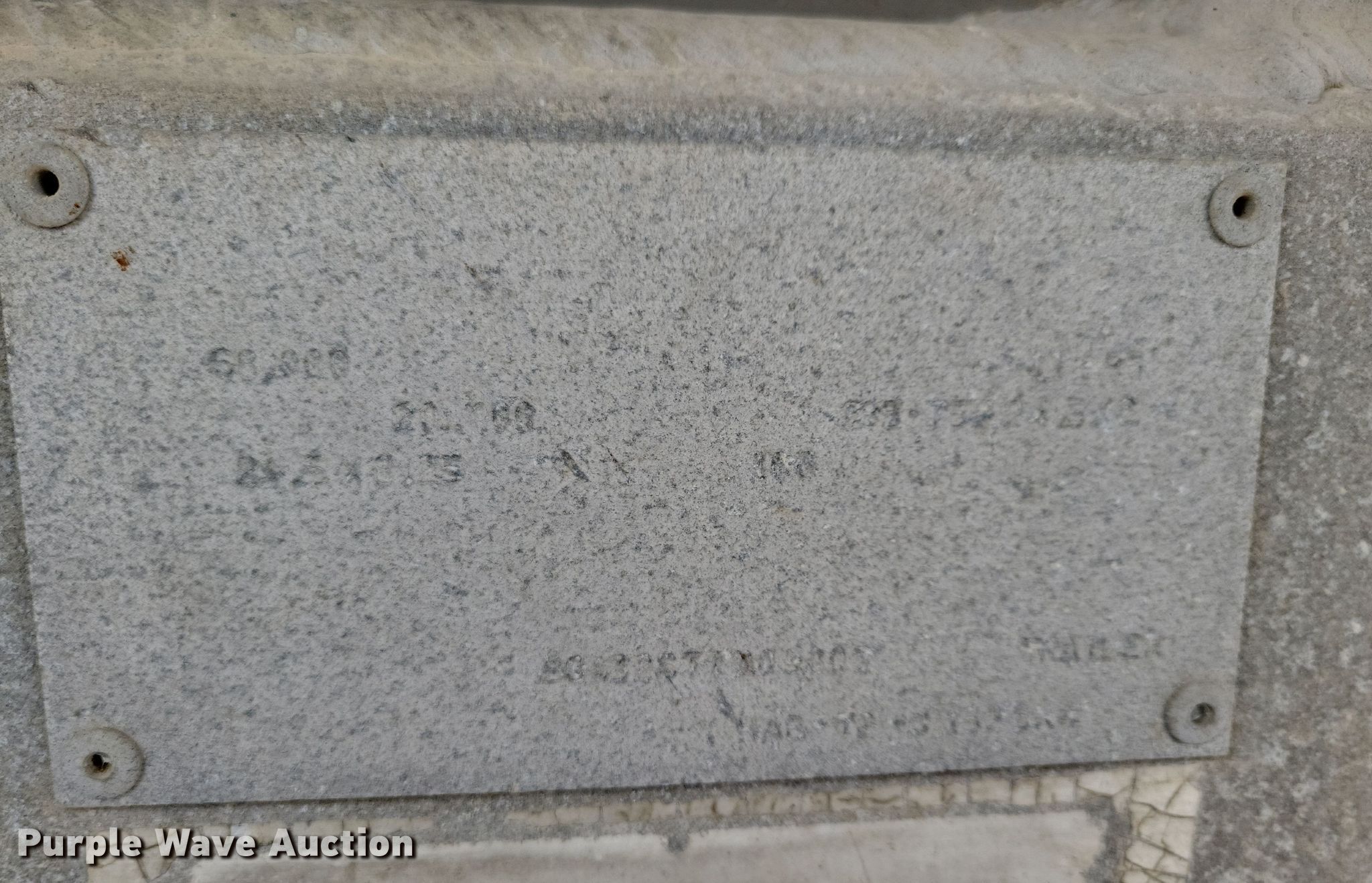 1996 Fruehauf pneumatic dry bulk trailer. VIN: 4J8B04326TT009602. Dimensions Overall: 44' L x 102" W. Features Tank type: Aluminum, Compartments: 4, Outlet valves: 4, No. of manways/manholes: 4. Chassis Landing gear: Dual, Suspension: Air, Brakes: Air, Axles: Tandem, GVWR: 58,000 lbs, GAWR: 20,000 lbs. Tires Aluminum wheels, Size: 285/75R24.5. Notes Semi not included. South Dakota title. Title distribution may be delayed up to 14 days from verification of funds. Concrete Materials - Sweetman Const.. Sioux Falls, SD 57107