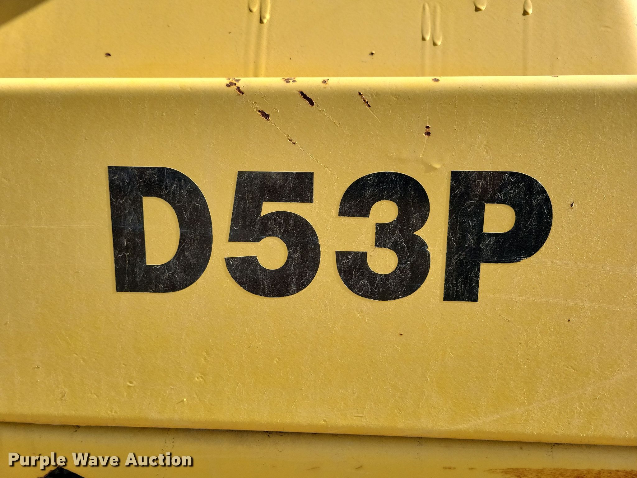 Komatsu D53P-18 dozer. Hours: 5,750 on meter, Serial: 83651. Engine Cummins, Displacement: 5.9L, Cylinders: 6, Fuel type: Diesel. Transmission Powershift, 3F - 3R. Operators station Enclosed cab, Steering: Clutch brake. Features Dozer blade Blade type: 6-way, Blade shape: Straight, Width: 12' 7". Tracks Width: 30", Grouser pads: Single, Bottom rollers: 7, Track guards. Notes Dead battery. Sjoile Construction. Lake Preston, SD 57249