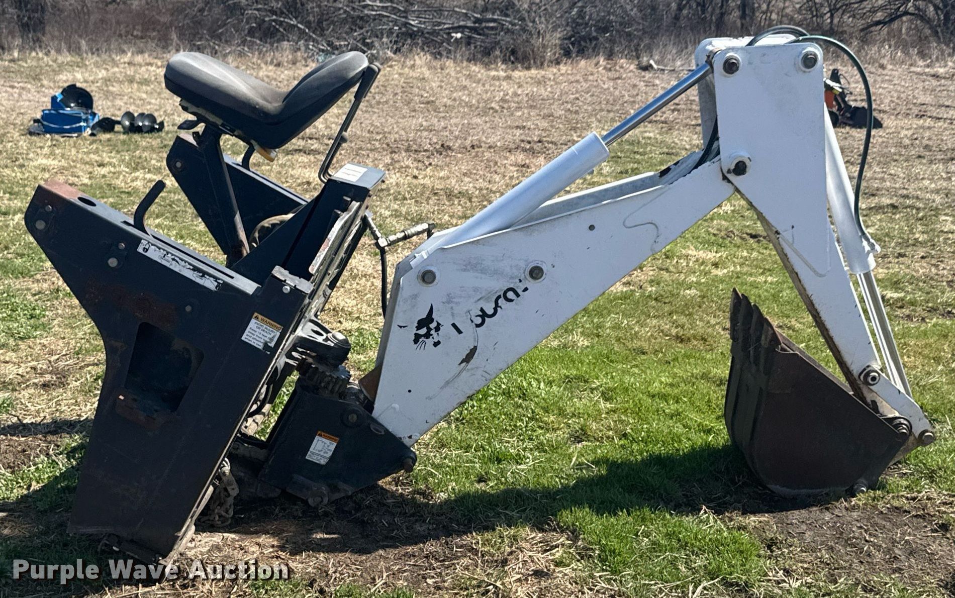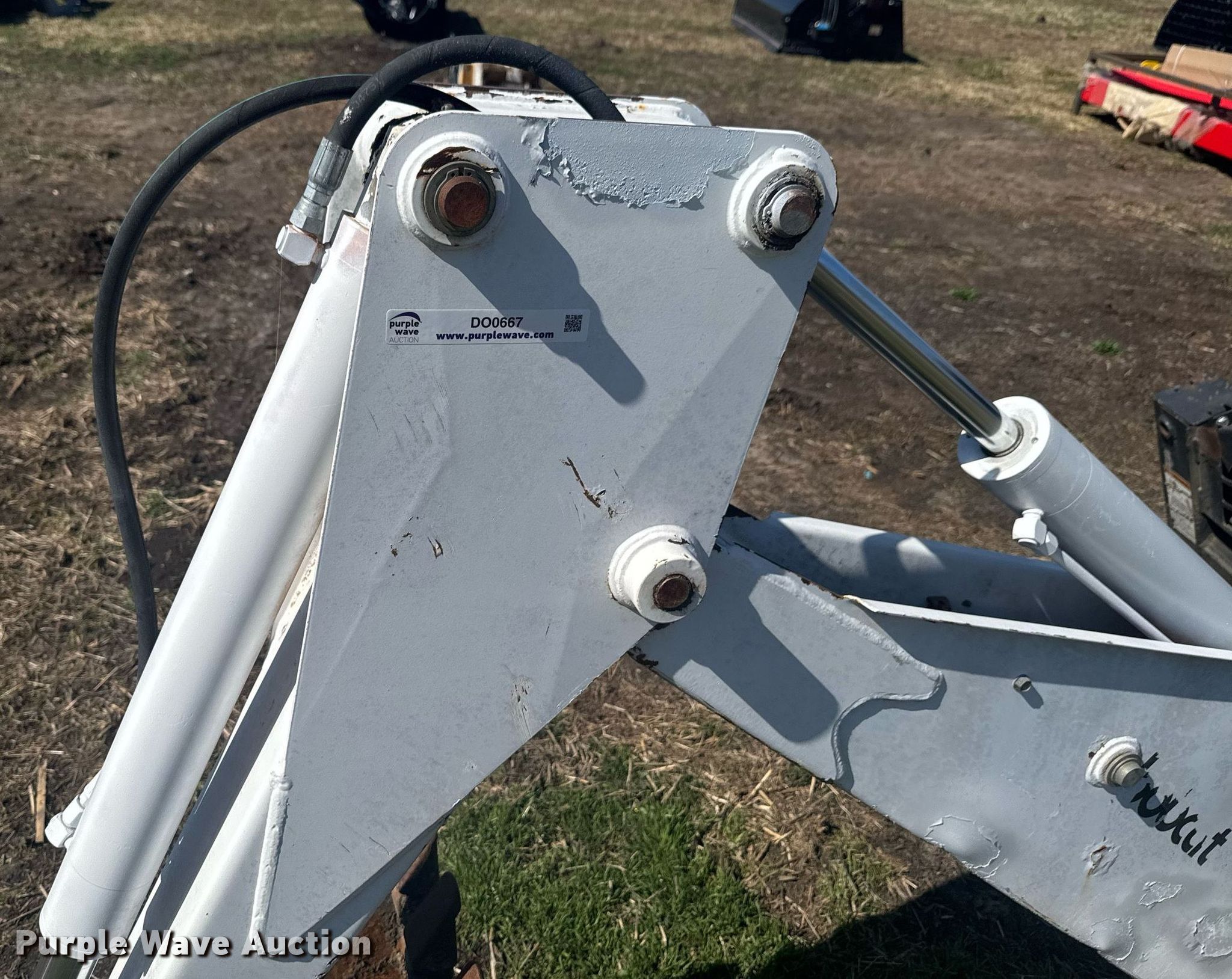 Purple Wave is selling a used Skid Steer Attach. in Kansas. This item is a Bobcat 709 skid steer backhoe with the following: Serial: 270004021, Width: 16", Teeth: Bolt-on