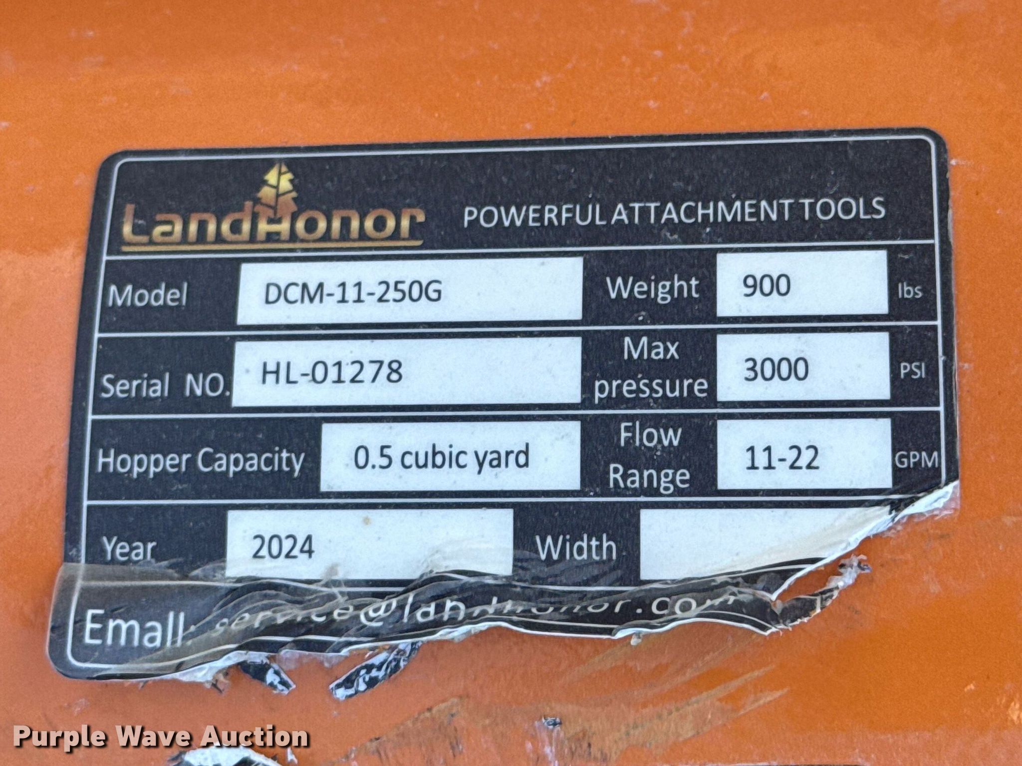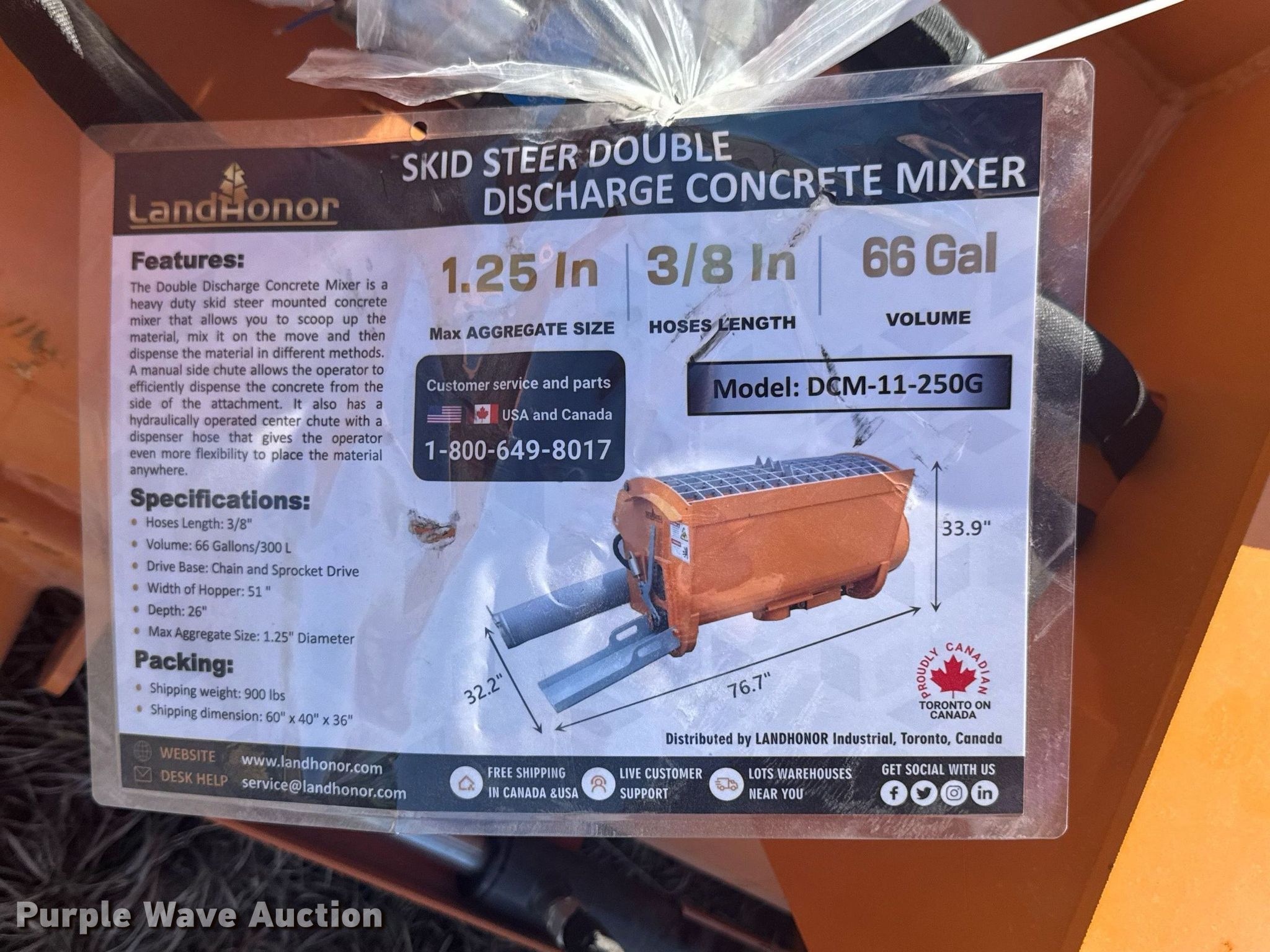 Purple Wave is selling a used Skid Steer Attach. in Kansas. This item is a 2024 LandHonor DCM-11-250G skid steer concrete mixer with the following: Serial: HL-01278, Width: 48", Length: 24"