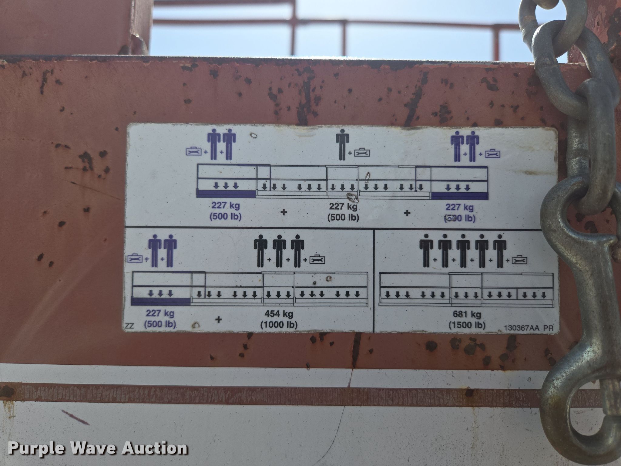 Skyjack SJ 8841 scissor lift. Serial: 42756. Engine Ford VSG-413I-6005-BE, Serial: 01-03-002776, Cylinders: 4, Fuel type: Dual fuel. Features Maximum lift capacity: 1,500 lbs, Maximum lift height: 41', Platform: 136" L x 71" W, AC power outlet, Controls: Platform, Ground, Platform extensions: Manual. Tires Tire size: 10-16.5 NHS. Notes Engine issues, cuts out under load , Unknown operating condition of LPG fuel system. Seymour, MO 65746