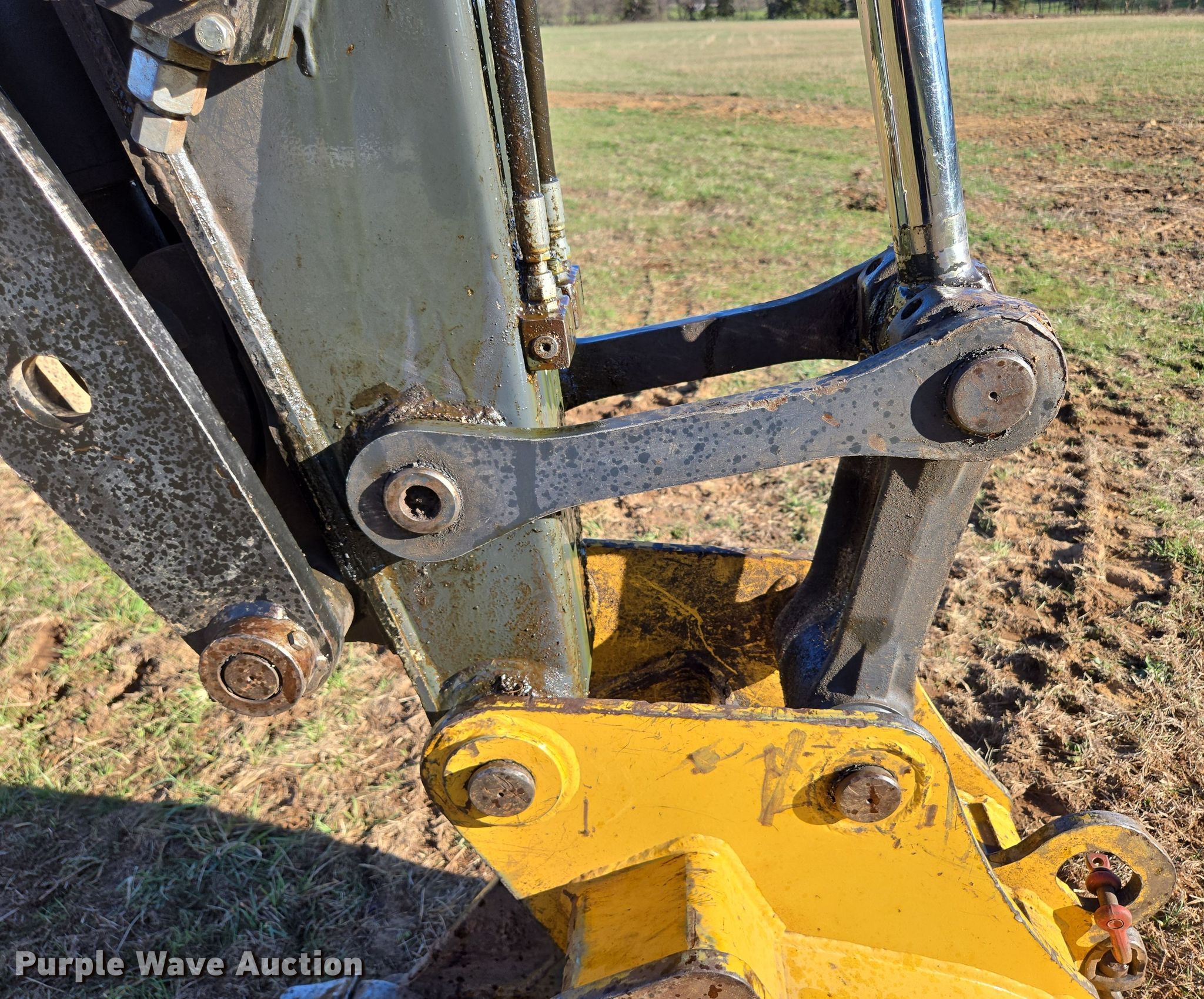 2010 John Deere 85D mini excavator. Hours: 2,679 on meter, Serial: 1FF085DXTA0016210, Unit #: 2010372. Engine Izuzu AU-4LE2X, Cylinders: 4, Fuel type: Diesel, kW: 40.5. Transmission Hydrostatic, Two speed travel. Operators station Enclosed cab, AC, Heat. Features Auxiliary hydraulics Two-way, Counter weights, Backfill blade Width: 91", Boom Swing, Stick Stick length: 7', Thumb: Hydraulic Amulet, Bucket Width: 24", Teeth: 4. Tracks Width: 18", Rubber. Notes Passenger side compartment door latch issues, Non-operational AC, Auxiliary hydraulic caps missing, Hydraulic leak. Prairie Grove, AR 72753