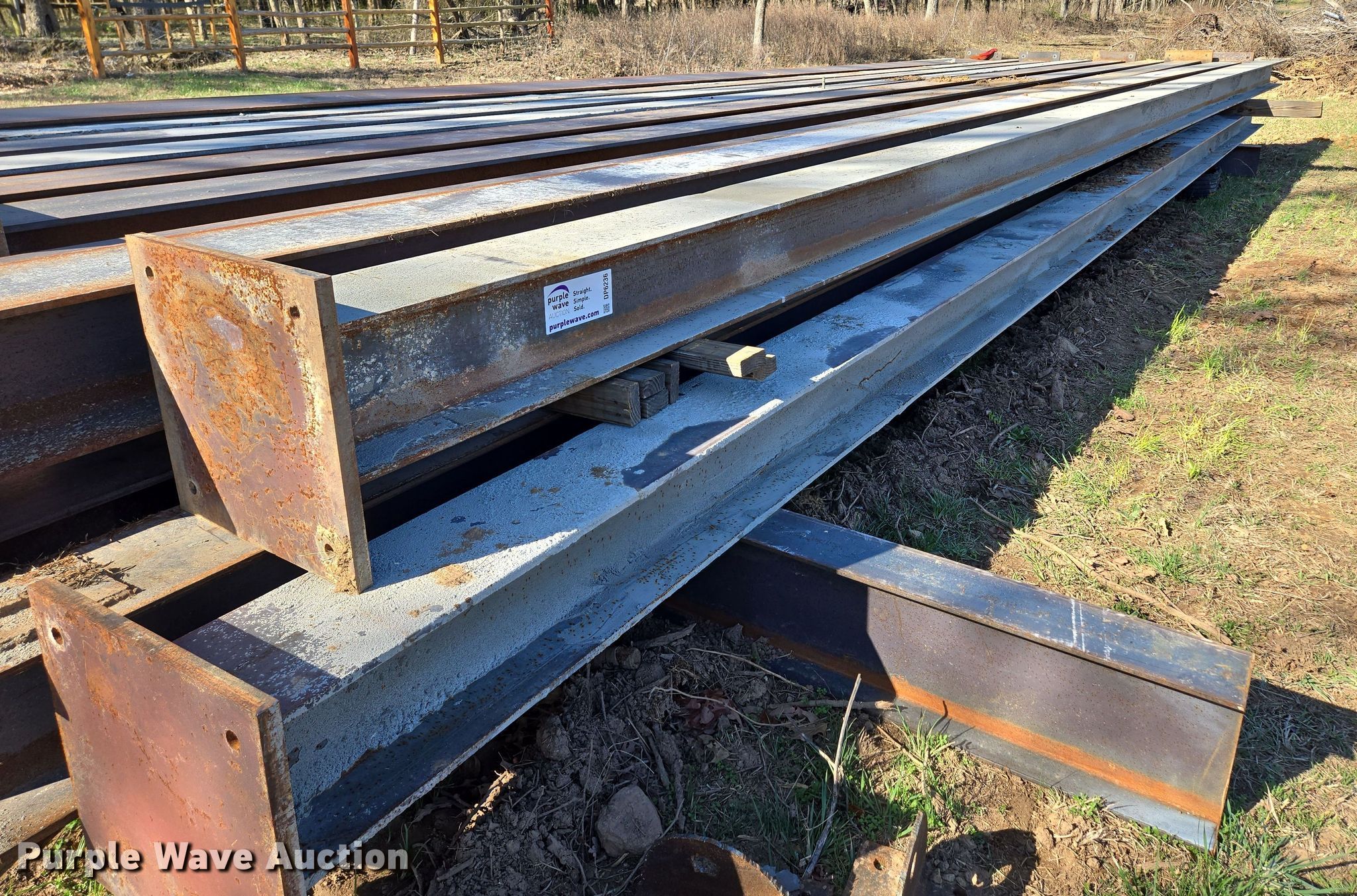 Purple Wave is selling a used Building Materials in Arkansas. This item is a (20) I-beams with the following: Length: 38' 5", Base plate, 18" x 18" x 1"