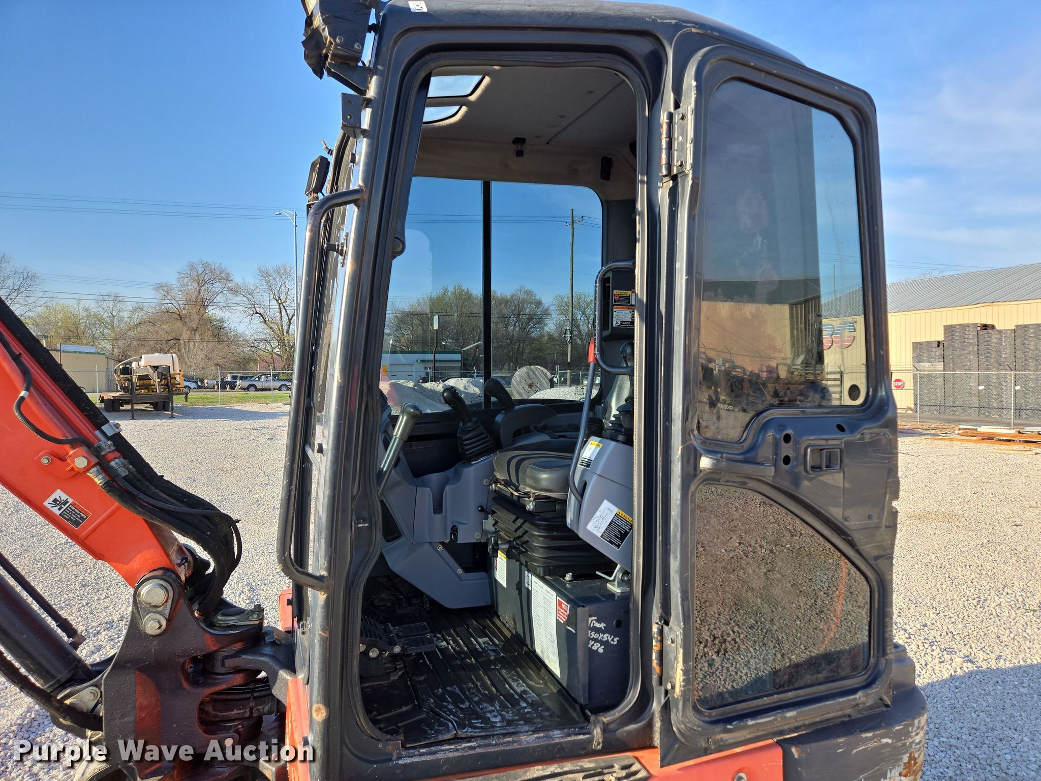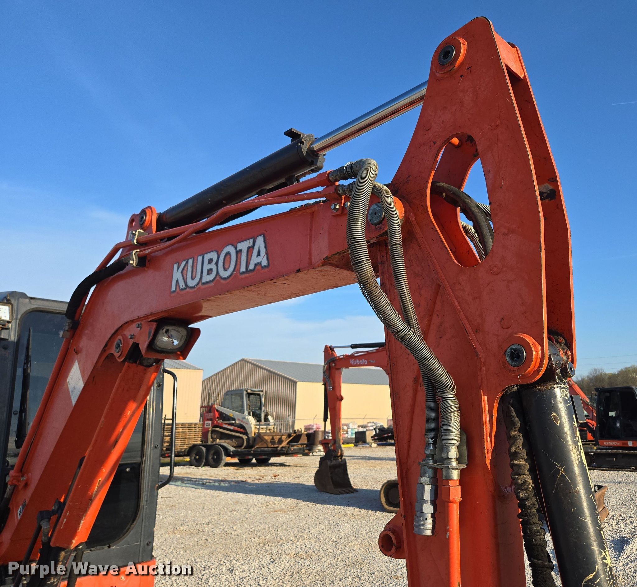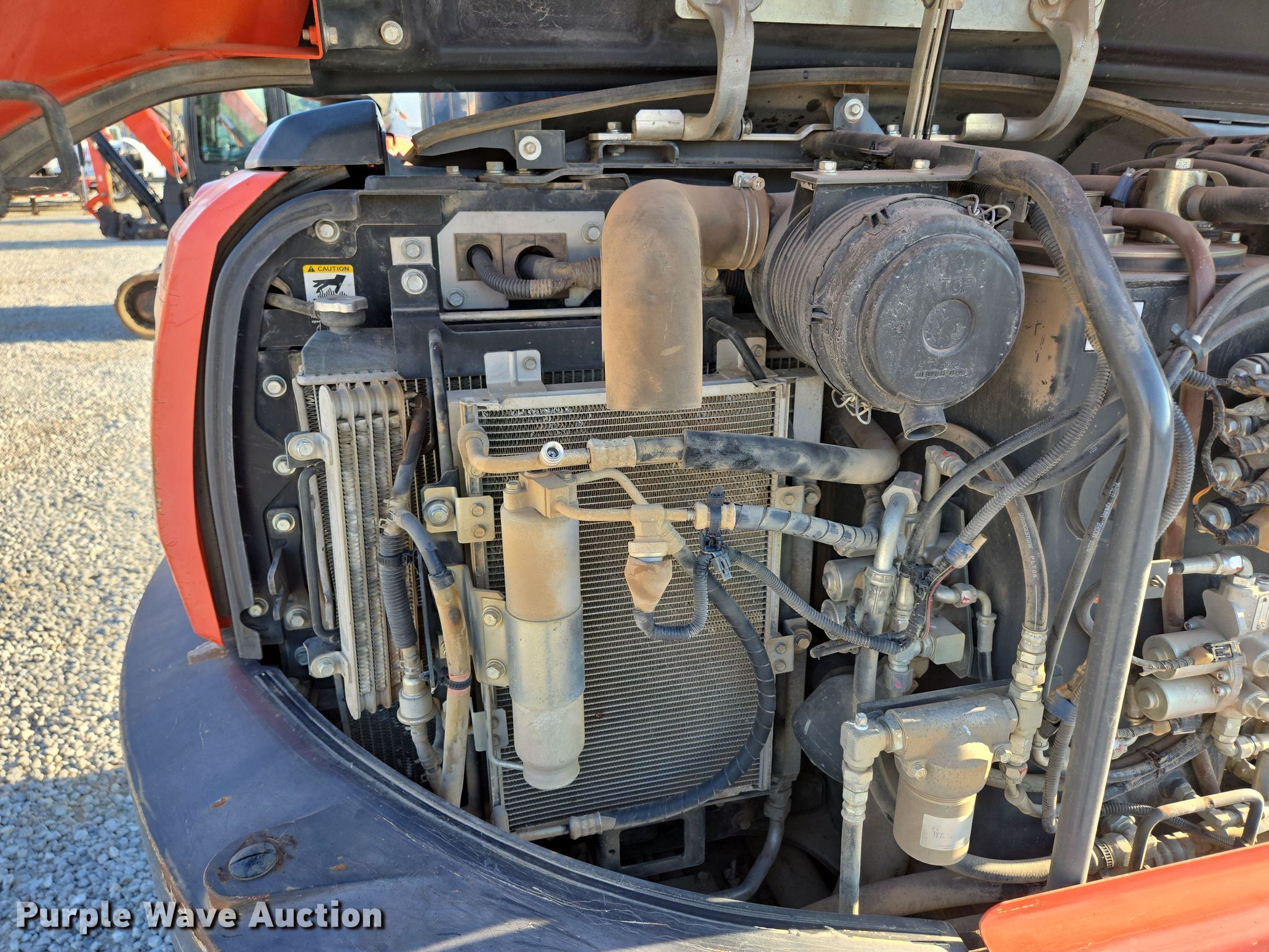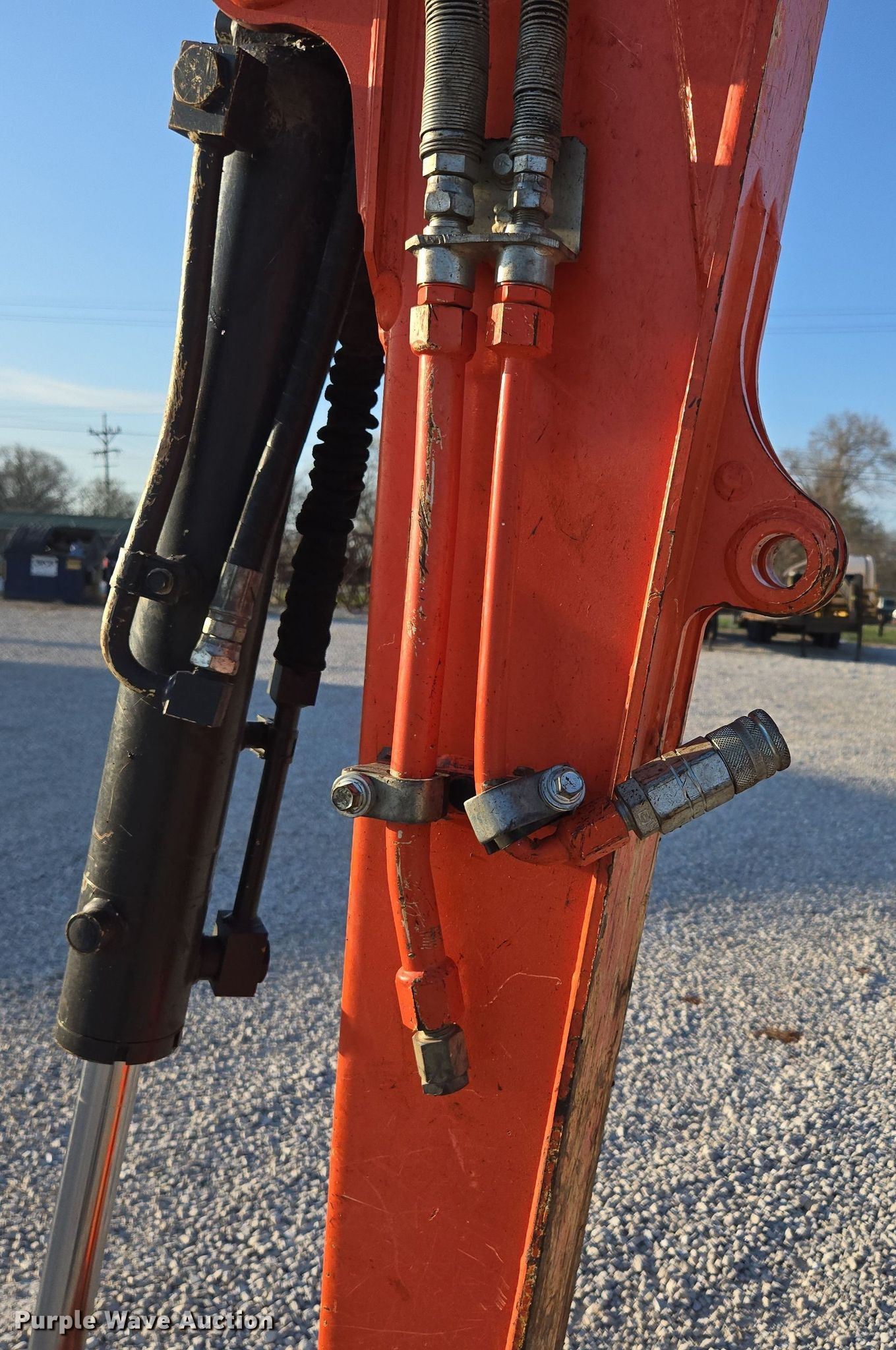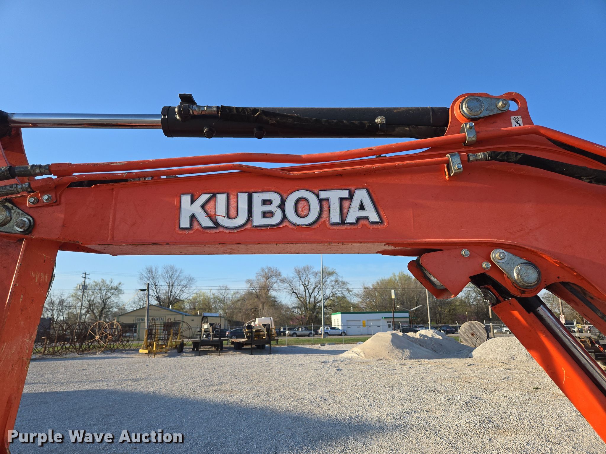 2015 Kubota KX040-4 mini excavator. Hours: 4,004 on meter, Serial: 23422. Engine Kubota D1803-CR-T-EF03, Serial: 7FH2045, Cylinders: 3, Fuel type: Diesel, kW: 29.7. Transmission Hydrostatic. Operators station Enclosed cab, AC, Heat, Pattern changer. Features Auxiliary hydraulics, Backfill blade Width: 67", Boom Swing, Stick Stick length: 5' 3", Quick coupler: Mechanical, Bucket Width: 18.5", Teeth: 4. Tracks Width: 14", Rubber. L&B Services LLC. Springfield, MO 65802