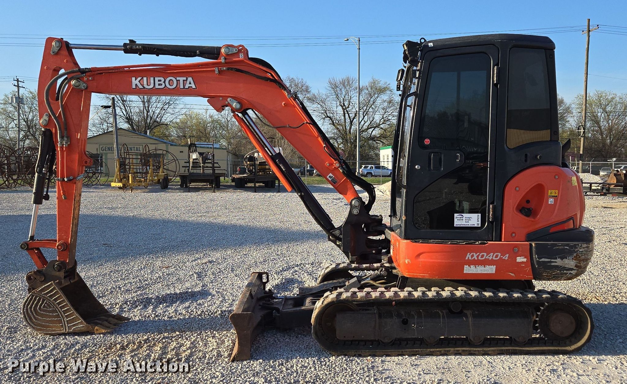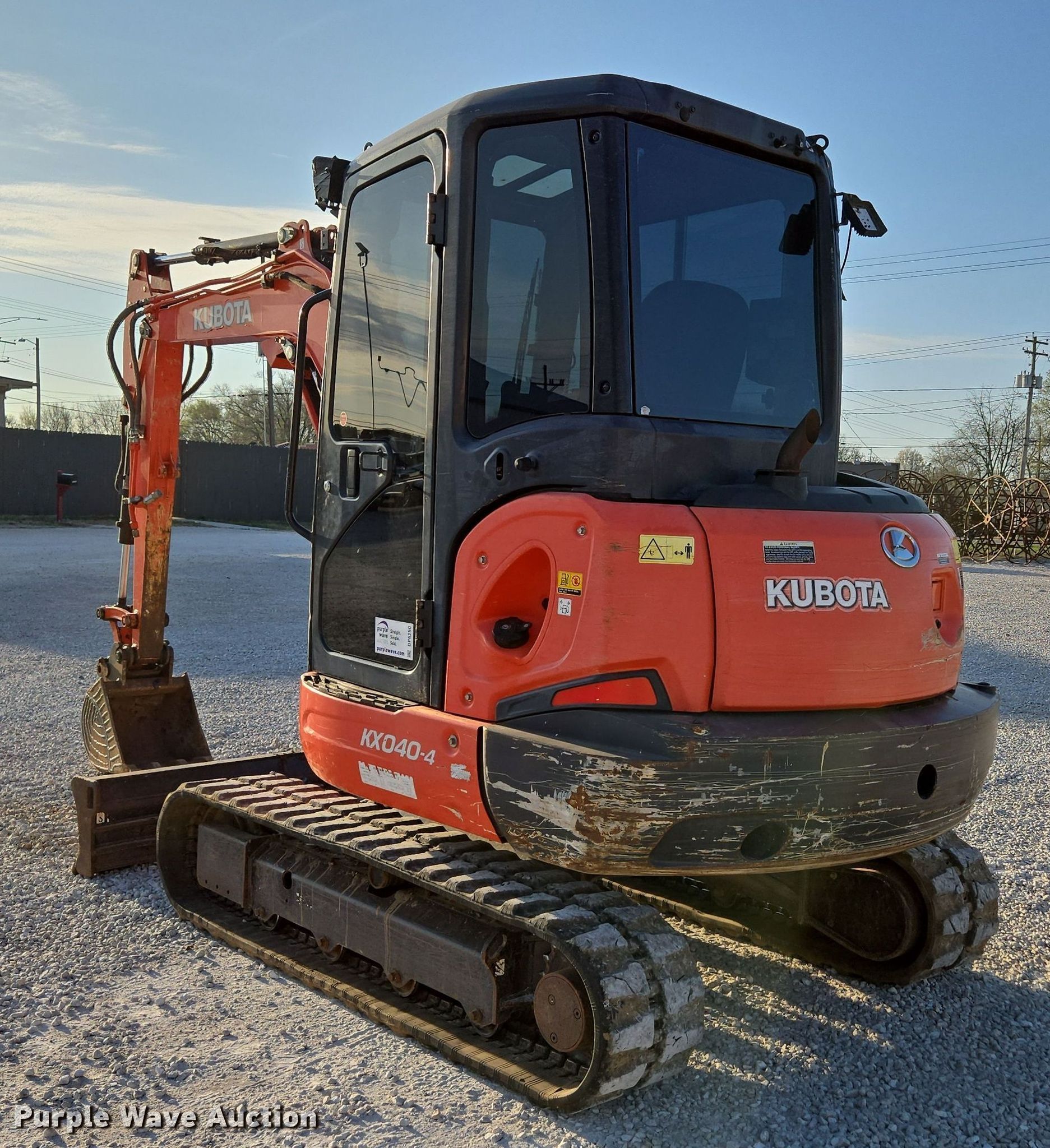 Purple Wave is selling a used Mini Excavator in Missouri. This item is a 2015 Kubota KX040-4 mini excavator with the following: Hours: 4,004 on meter, Serial: 23422