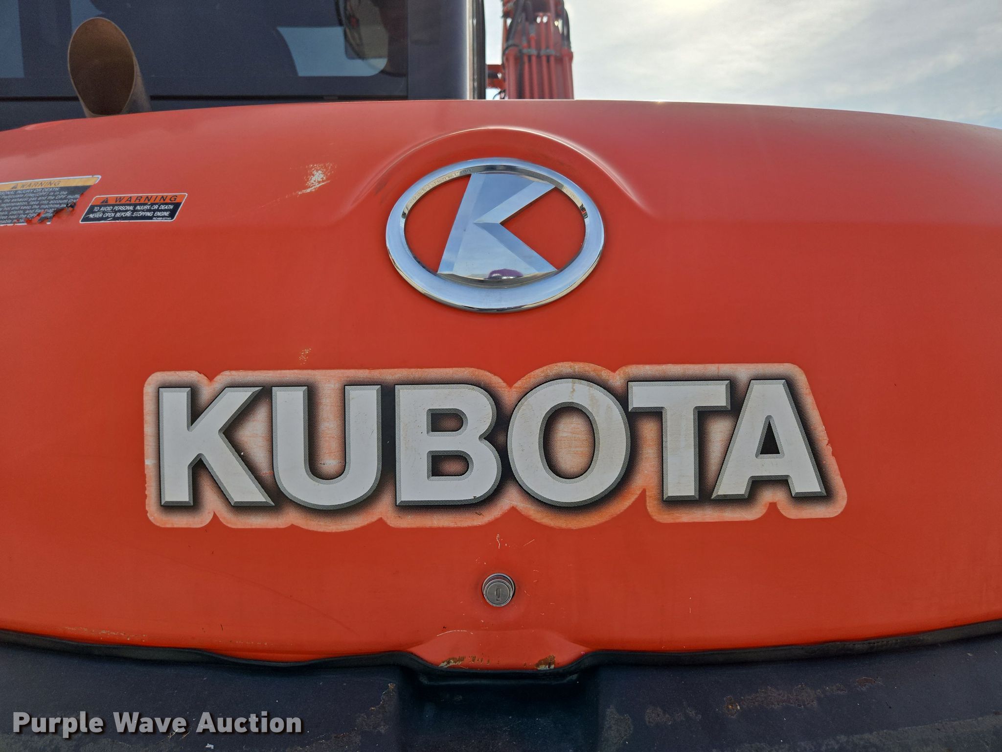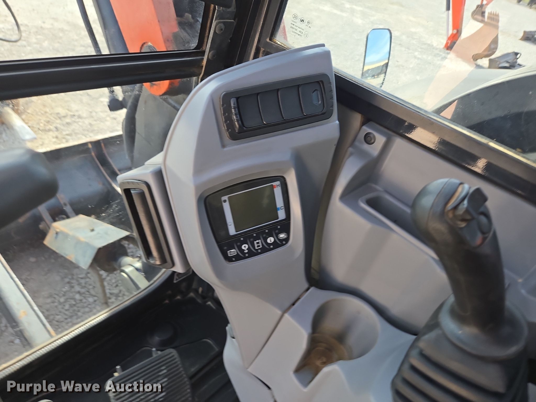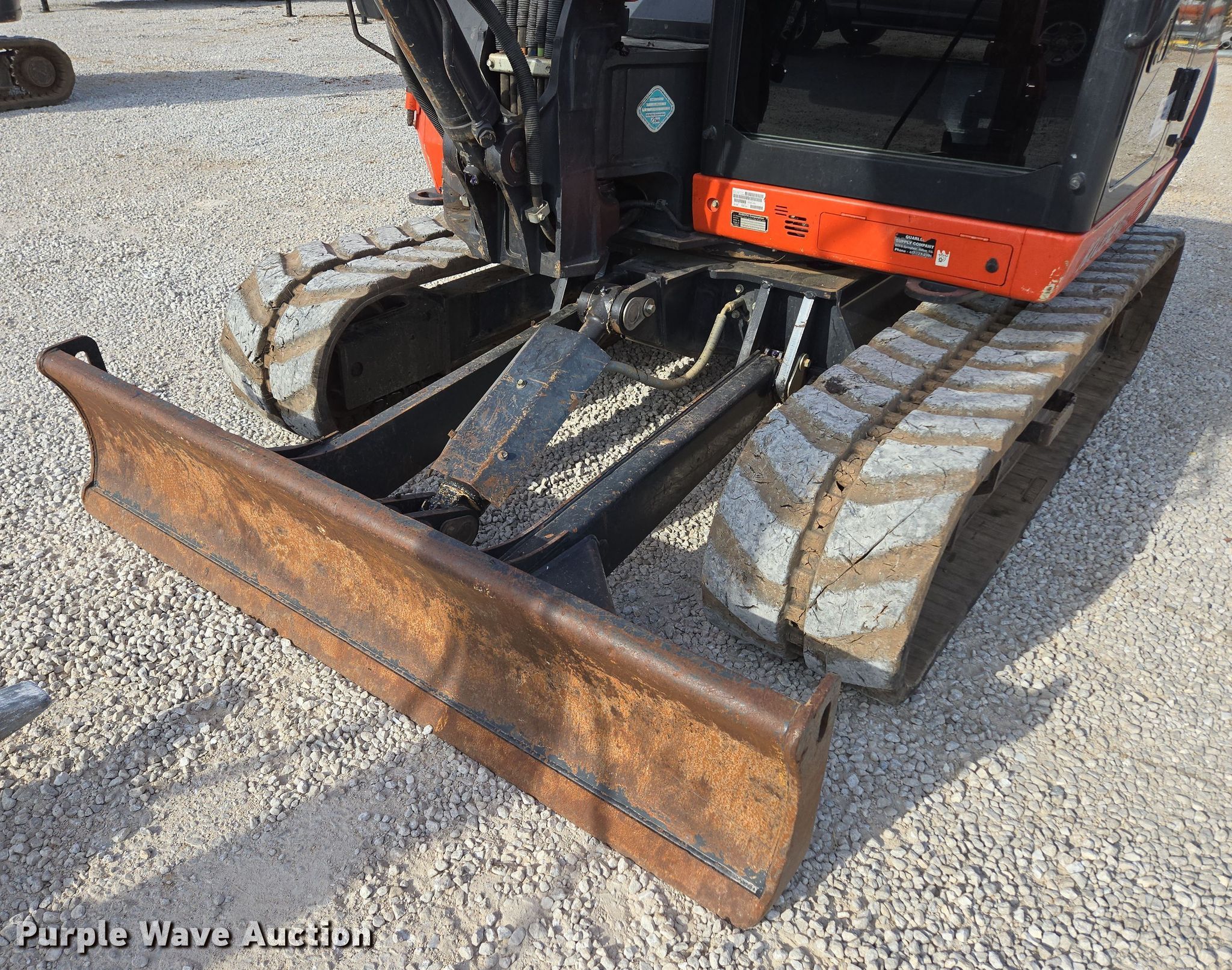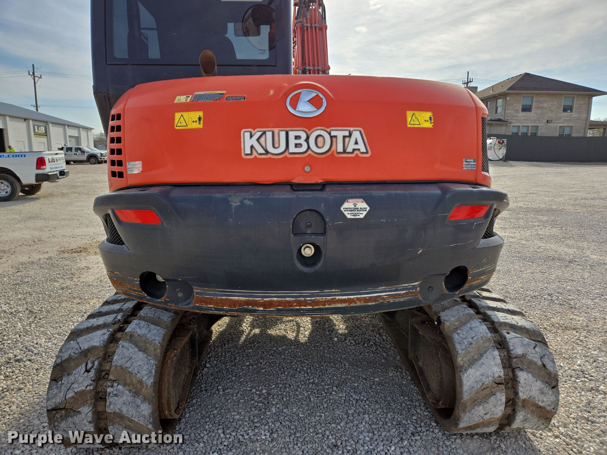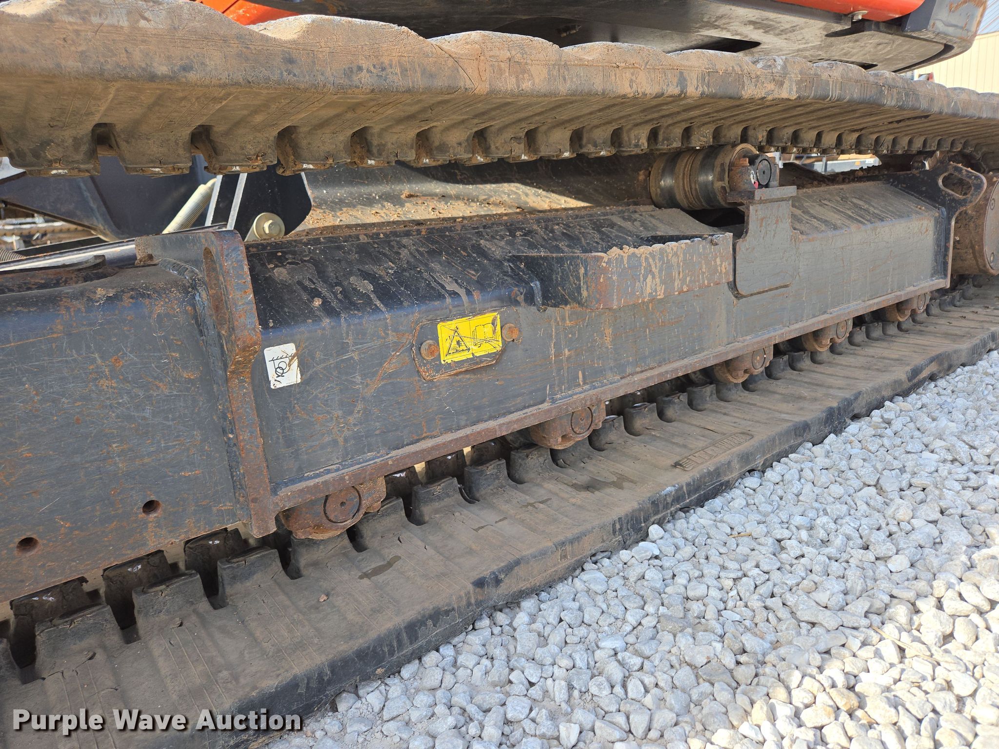 2017 Kubota KX080-4 mini excavator. Hours: 3,173 on meter, Serial: 40799, Unit #: 319. Engine Kubota V3307-CR-T-EF06, Serial: 8GW1523, Displacement: 3.3L, Cylinders: 4, Fuel type: Diesel, kW: 49. Transmission Hydrostatic. Operators station Enclosed cab, AC, Heat, Pattern changer. Features Auxiliary hydraulics, Backfill blade Width: 86.5", Boom Swing, Stick Stick length: 6' 10.5", Quick coupler: Mechanical, Bucket Width: 19.5", Teeth: 4, Bucket Width: 23.5", Teeth: 5, Kubota hydraulic breaker. Tracks Width: 17.5", Rubber. Notes Engine hood latch issues. L&B Services LLC. Springfield, MO 65802