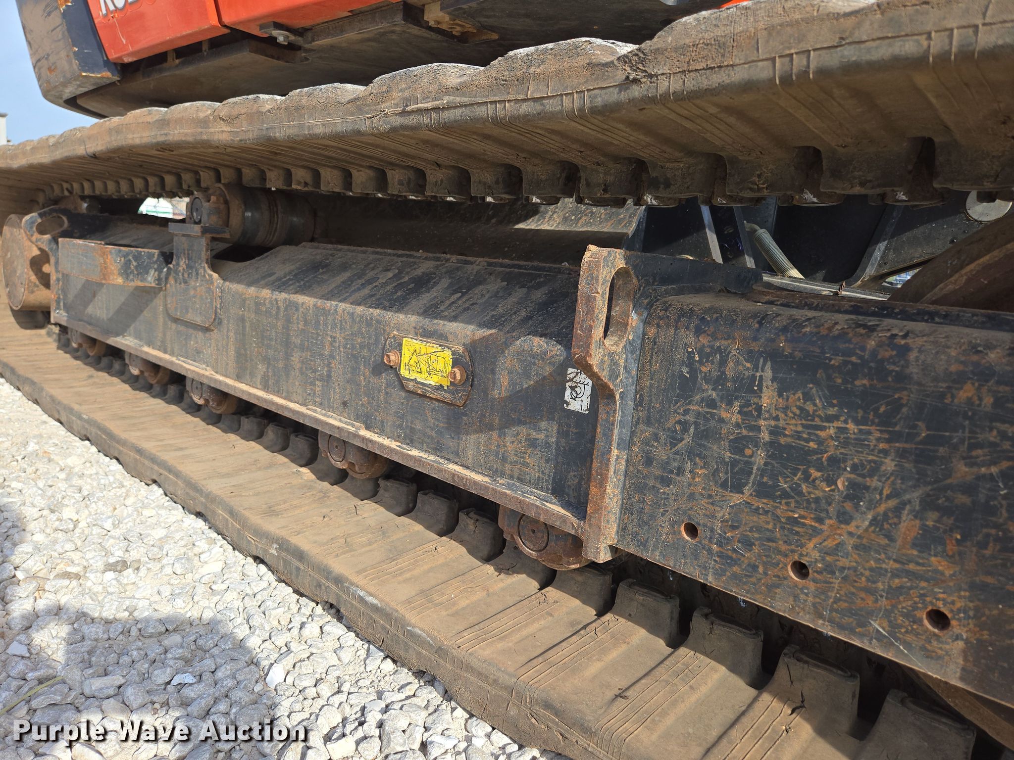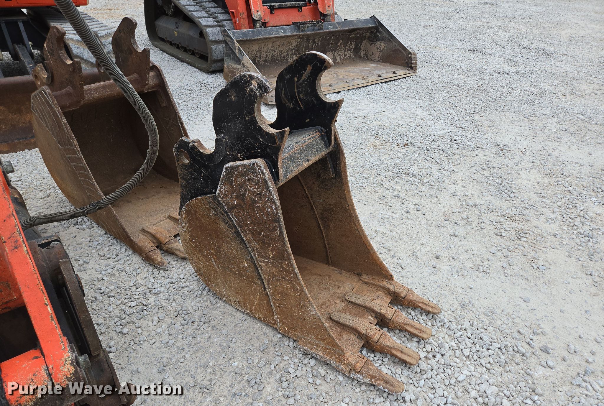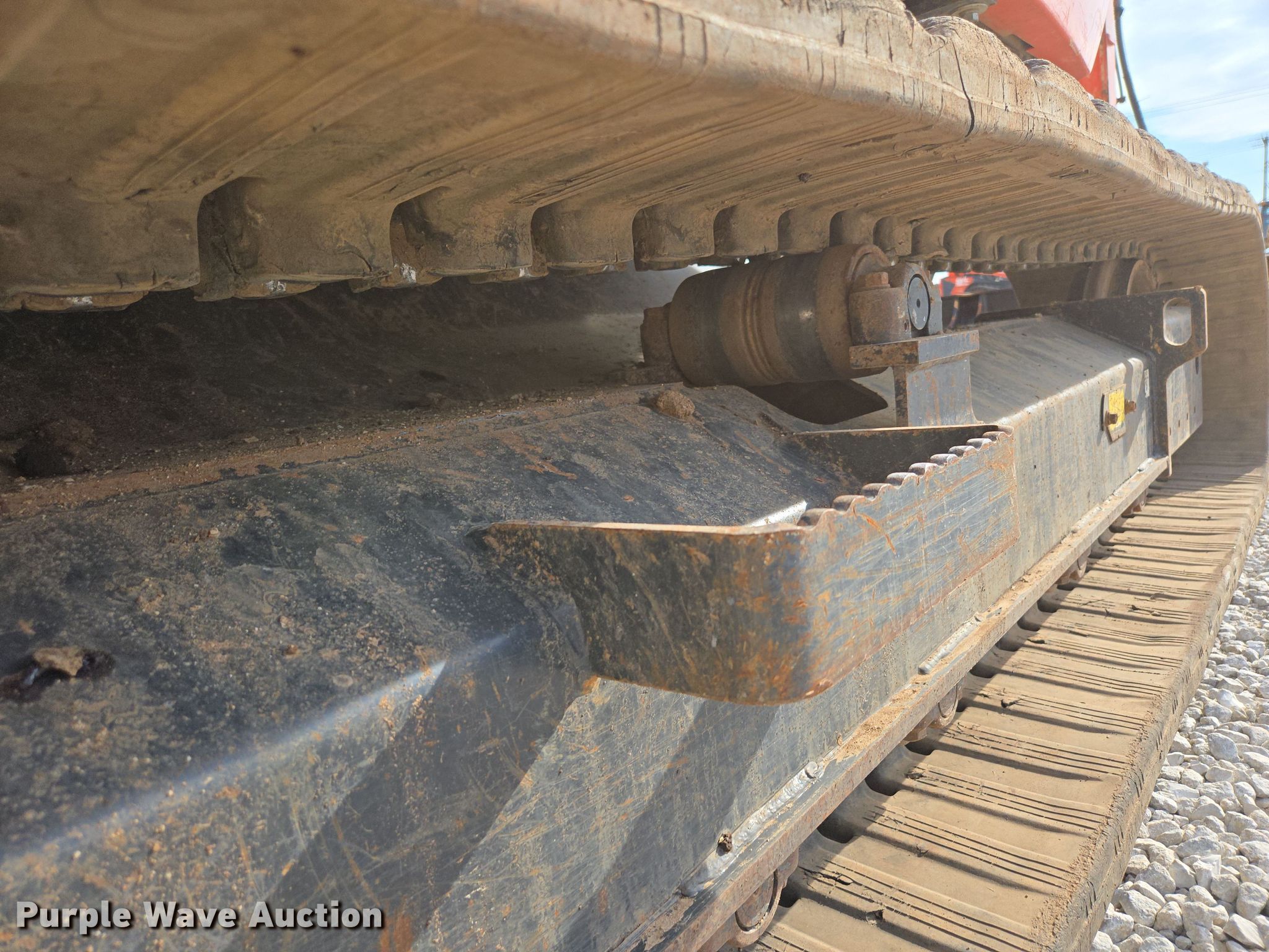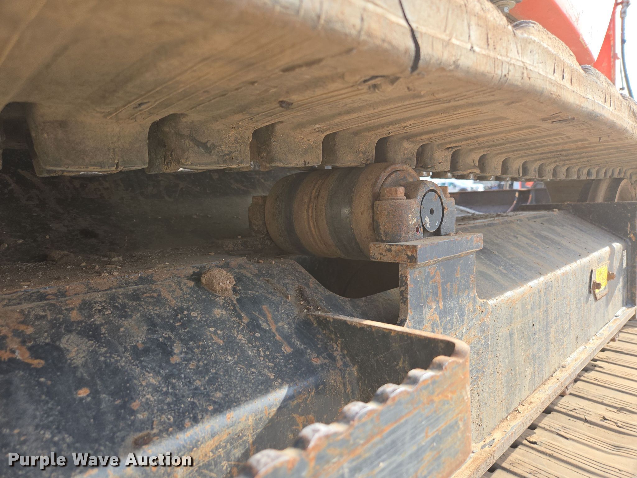 2017 Kubota KX080-4 mini excavator. Hours: 3,173 on meter, Serial: 40799, Unit #: 319. Engine Kubota V3307-CR-T-EF06, Serial: 8GW1523, Displacement: 3.3L, Cylinders: 4, Fuel type: Diesel, kW: 49. Transmission Hydrostatic. Operators station Enclosed cab, AC, Heat, Pattern changer. Features Auxiliary hydraulics, Backfill blade Width: 86.5", Boom Swing, Stick Stick length: 6' 10.5", Quick coupler: Mechanical, Bucket Width: 19.5", Teeth: 4, Bucket Width: 23.5", Teeth: 5, Kubota hydraulic breaker. Tracks Width: 17.5", Rubber. Notes Engine hood latch issues. L&B Services LLC. Springfield, MO 65802