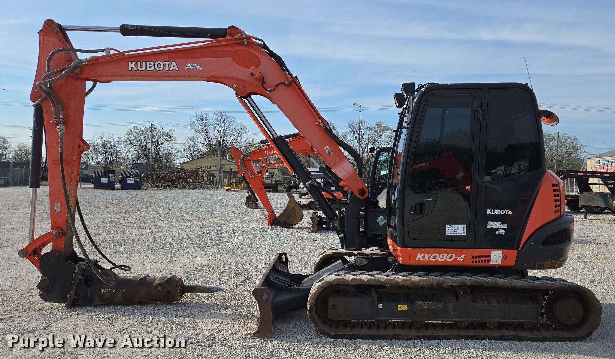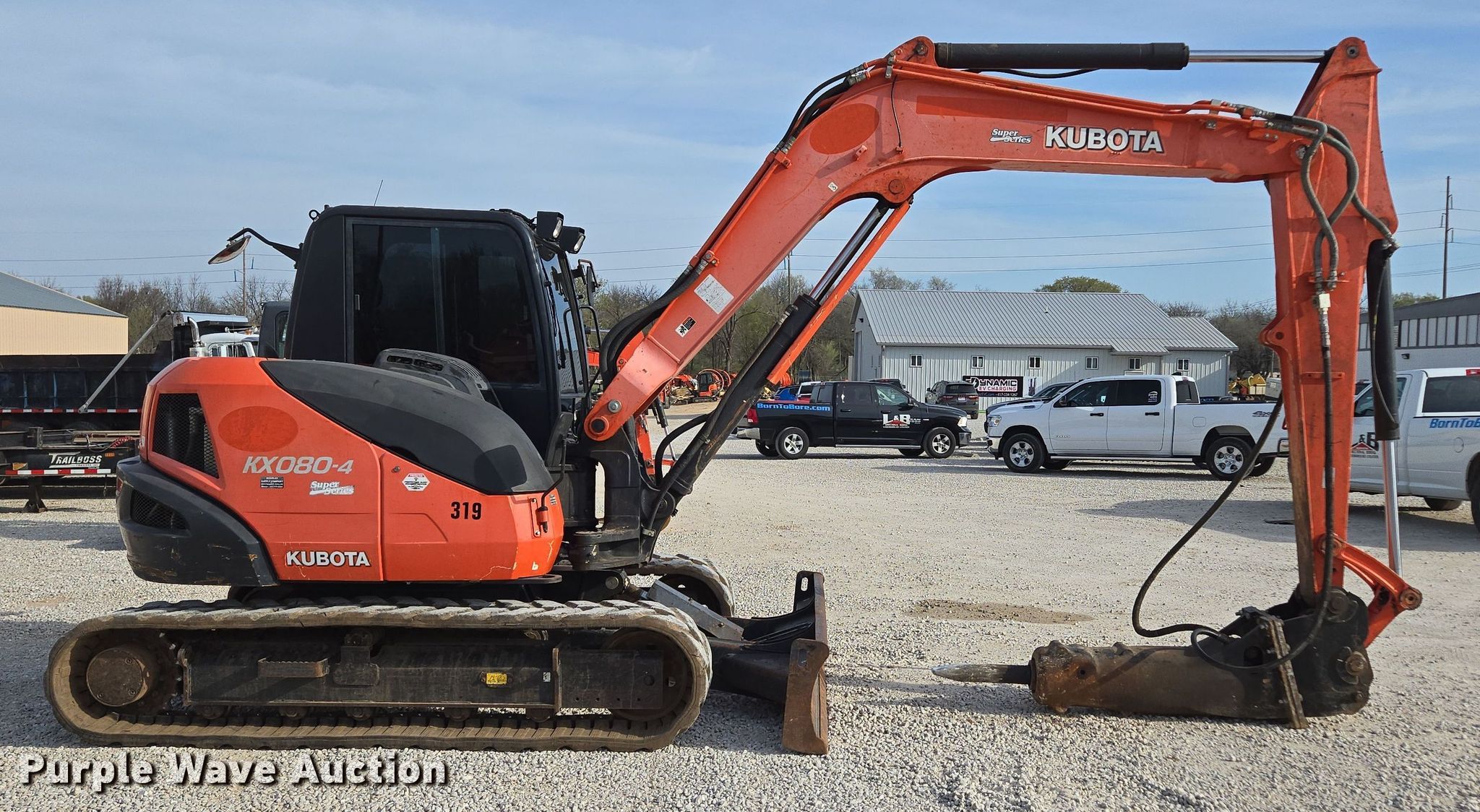 Purple Wave is selling a used Mini Excavator in Missouri. This item is a 2017 Kubota KX080-4 mini excavator with the following: Hours: 3,173 on meter, Serial: 40799, Unit #: 319