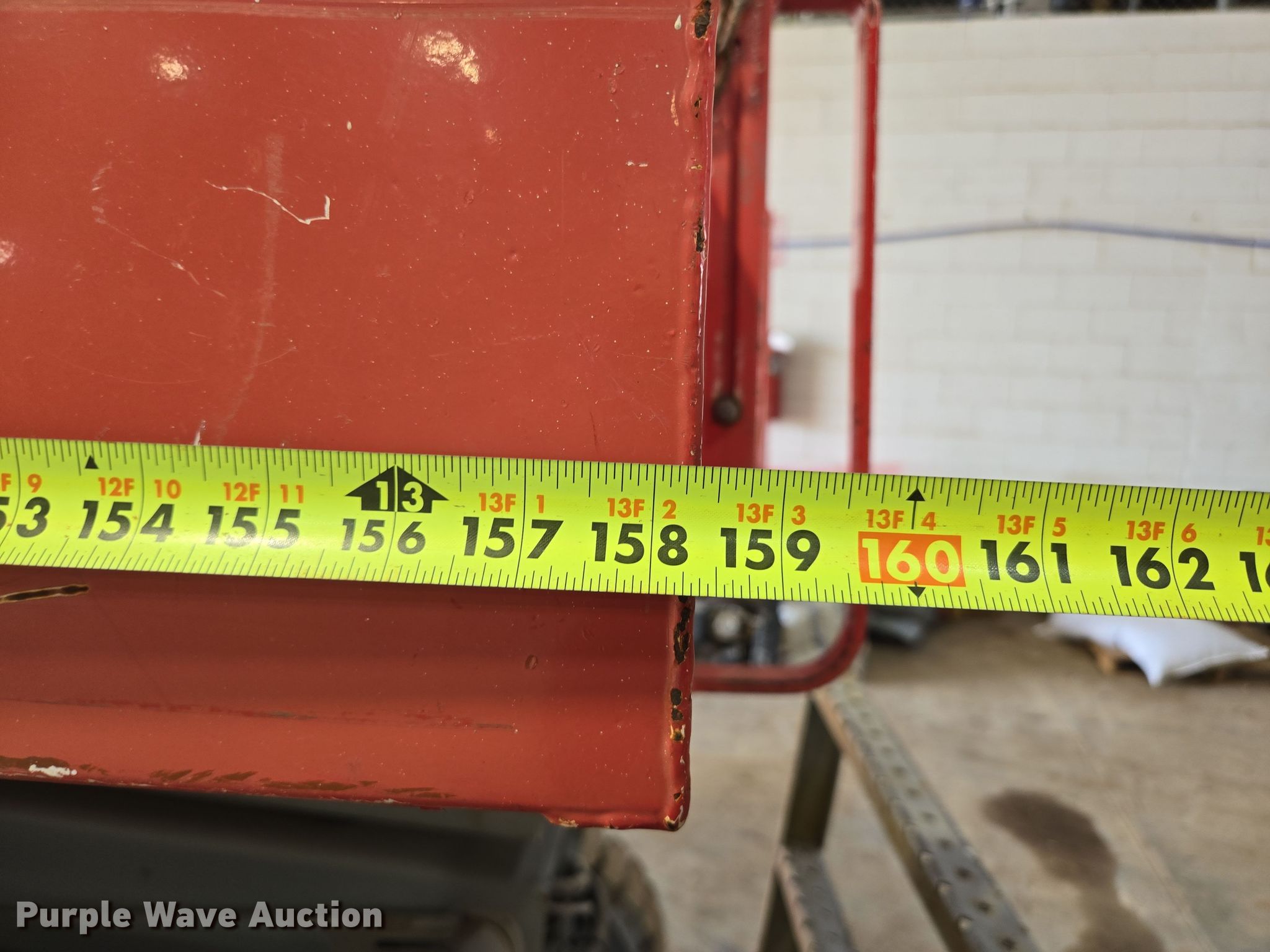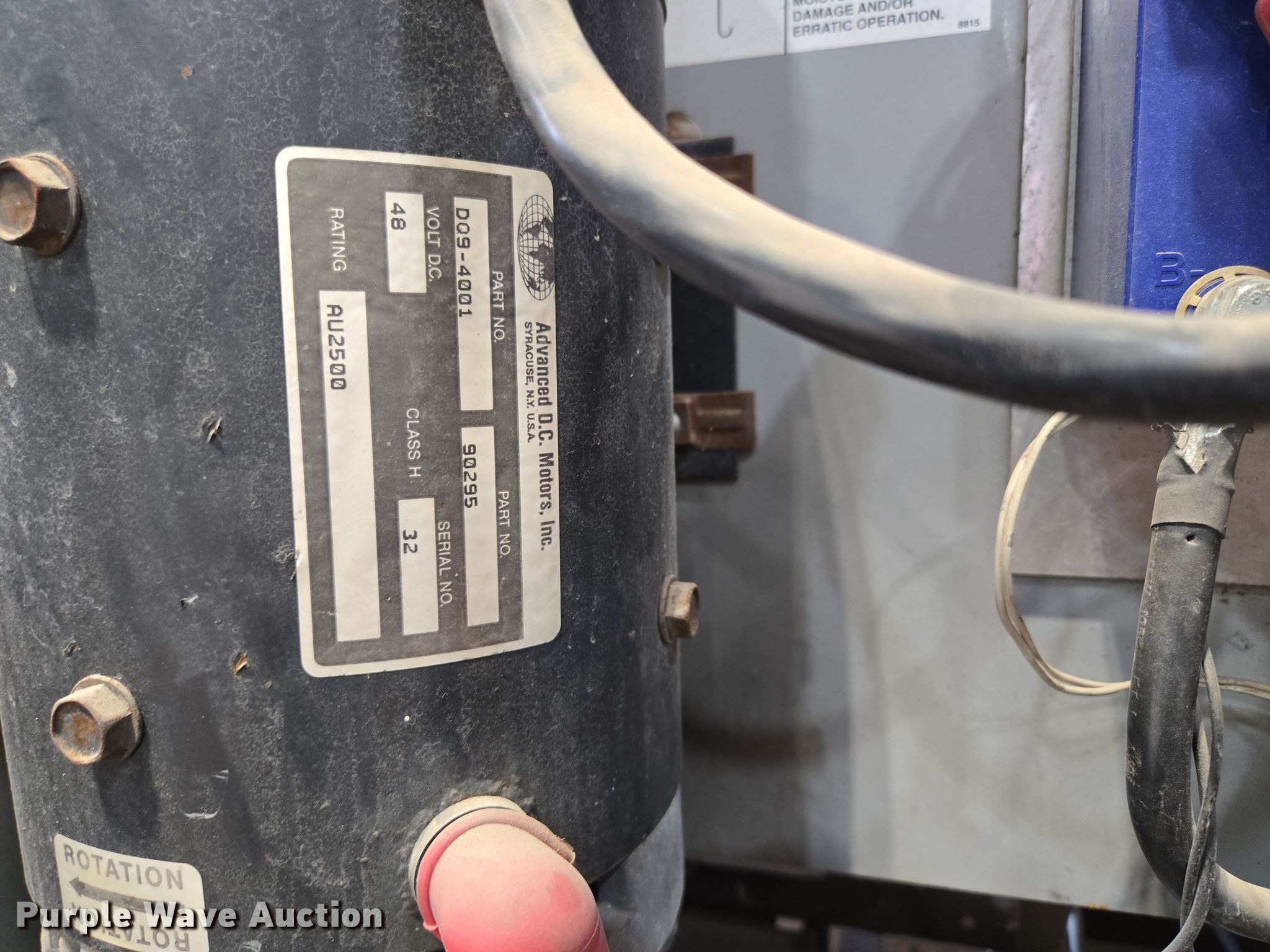 2000 Mayville Engineering Co Inc. 3768ES scissor lift. Hours: Unknown, Serial: 10900133, Unit #: C235S. Electric Motor Advanced D.C. Motors, Inc. DQ9-4001 90295 Serial: 32. Features Maximum lift capacity: 750 lbs, Maximum lift height: 37', Platform: 159.25" L x 60" W, AC power outlet, Controls: Remote Control, Ground, Platform extensions: Manual. Tires Tire size: 7.50-10, Solid. Notes Non-operational hour meter, Hydraulic fluid leak, Possible cable damage on remote control. L&B Services LLC. Springfield, MO 65802
