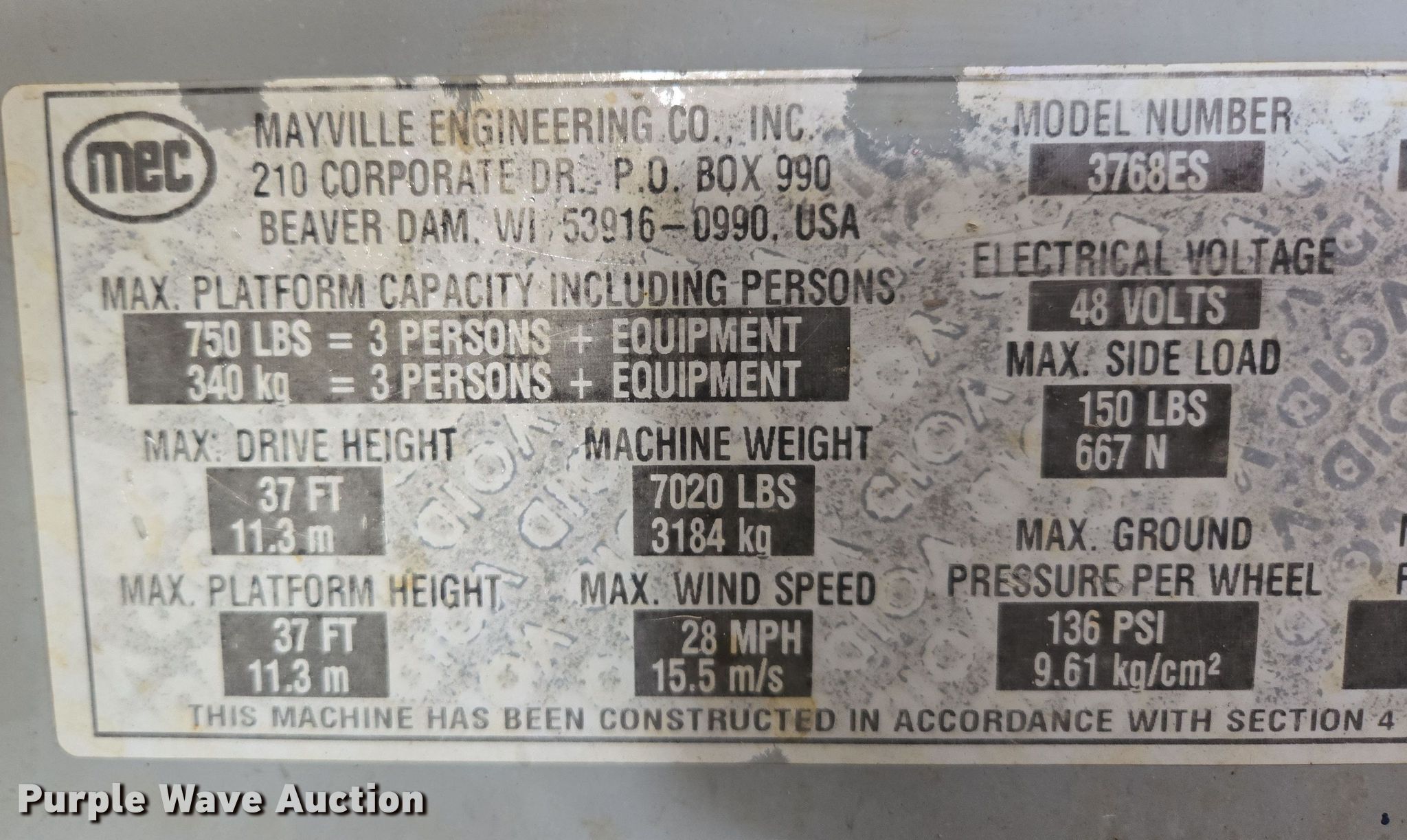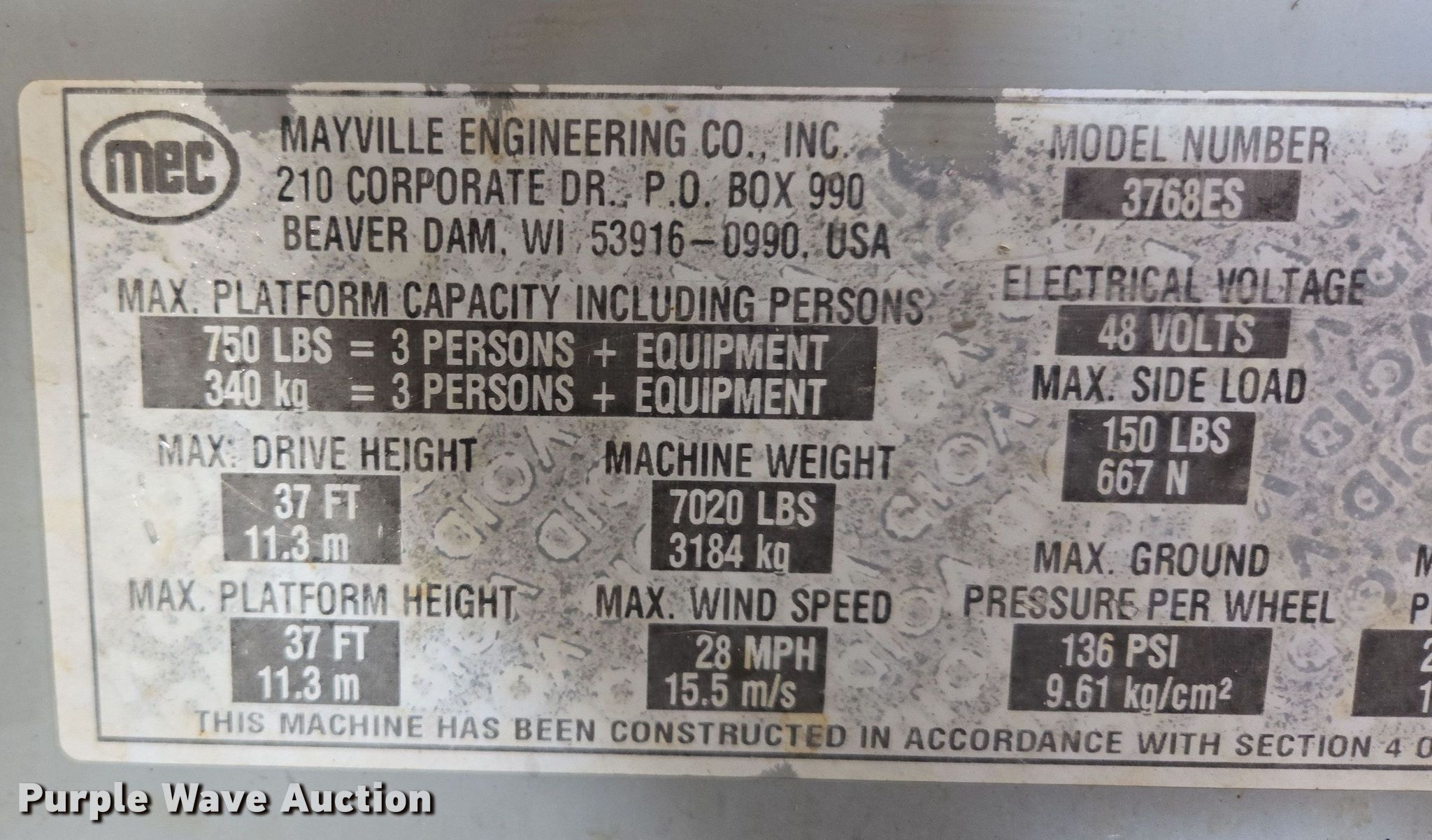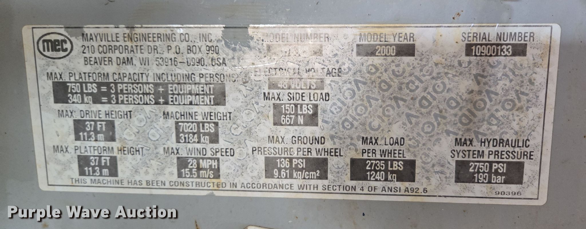 2000 Mayville Engineering Co Inc. 3768ES scissor lift | SOLD! April 24 Construction Equipment Auction