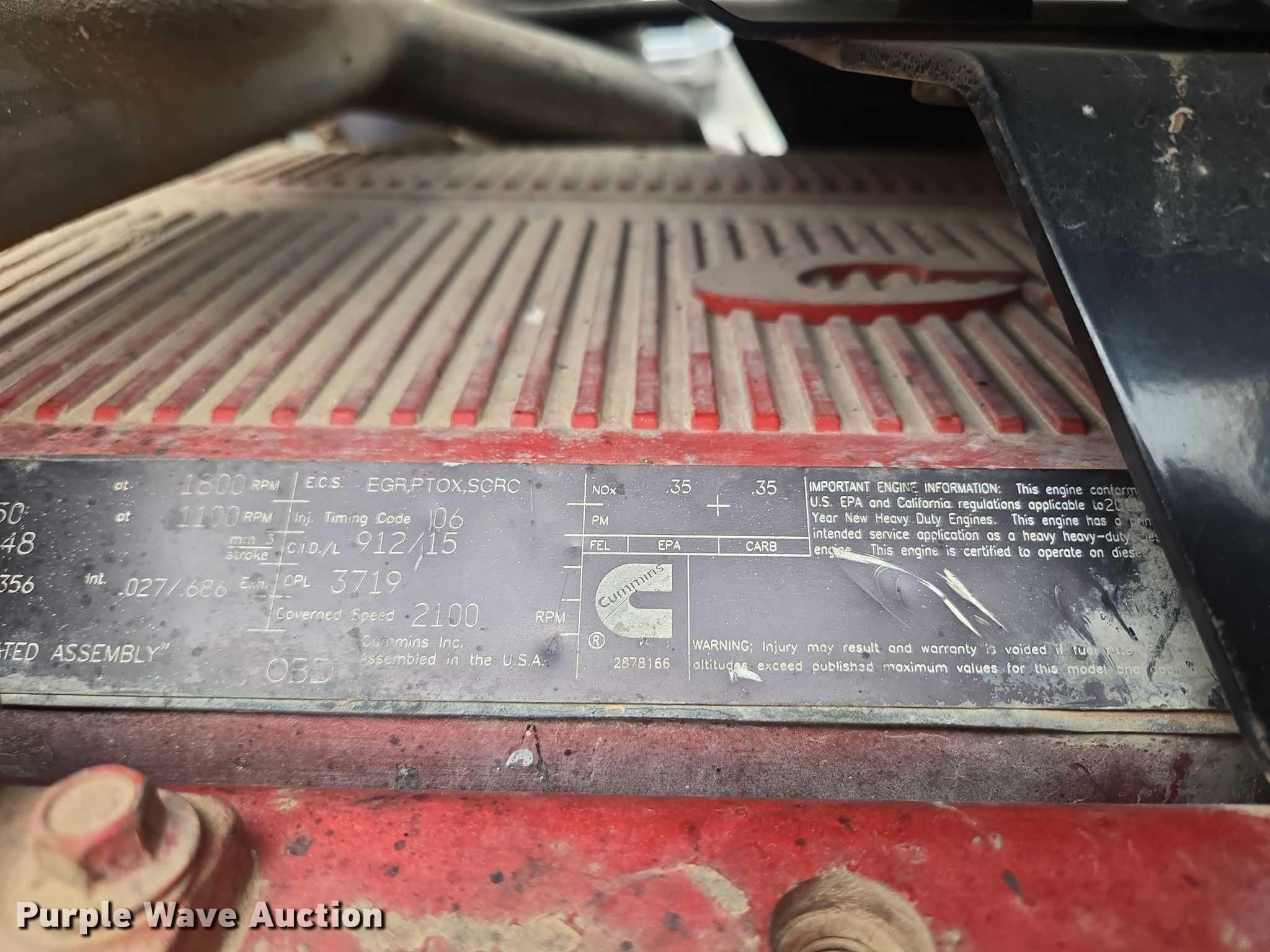 2012 Kenworth T800 dump truck. Miles: 425,634 on odometer, Hours: 21,065 on meter, VIN: 1XKDD49X5CJ303730, Unit #: 124. Engine Cummins ISX15 450, Serial: 79463872, Displacement: 15.0L, Cylinders: 6, Fuel type: Diesel, HP: 450, Engine brake. Transmission Eaton Fuller, Manual, Speed: 10. Chassis Double frame, Axles: Tandem, Differential lock: Full, Suspension: Air Dump valves, Brakes: Air, PTO, GVWR: 52,000 lbs. Interior AC, Heat, Power windows, Cruise control. Features Dump bed Crown, 15' L x 95.5" W, Side height: 40", Side board height: 10", Bed type: Steel, Roll tarp, Ram: Single, End gate: Air operated. Tires Size: 11R22.5. Notes Windshield chipped or cracked, Battery box lid damaged, Rear air brake connector missing, Driver side window switch issue, Passenger side lock issues, Passenger side door latch issues, Broken driver side blind spot mirror, DEF deleted. Missouri title. Title distribution may be delayed up to 30 days from verification of funds. L&B Services LLC. Springfield, MO 65802