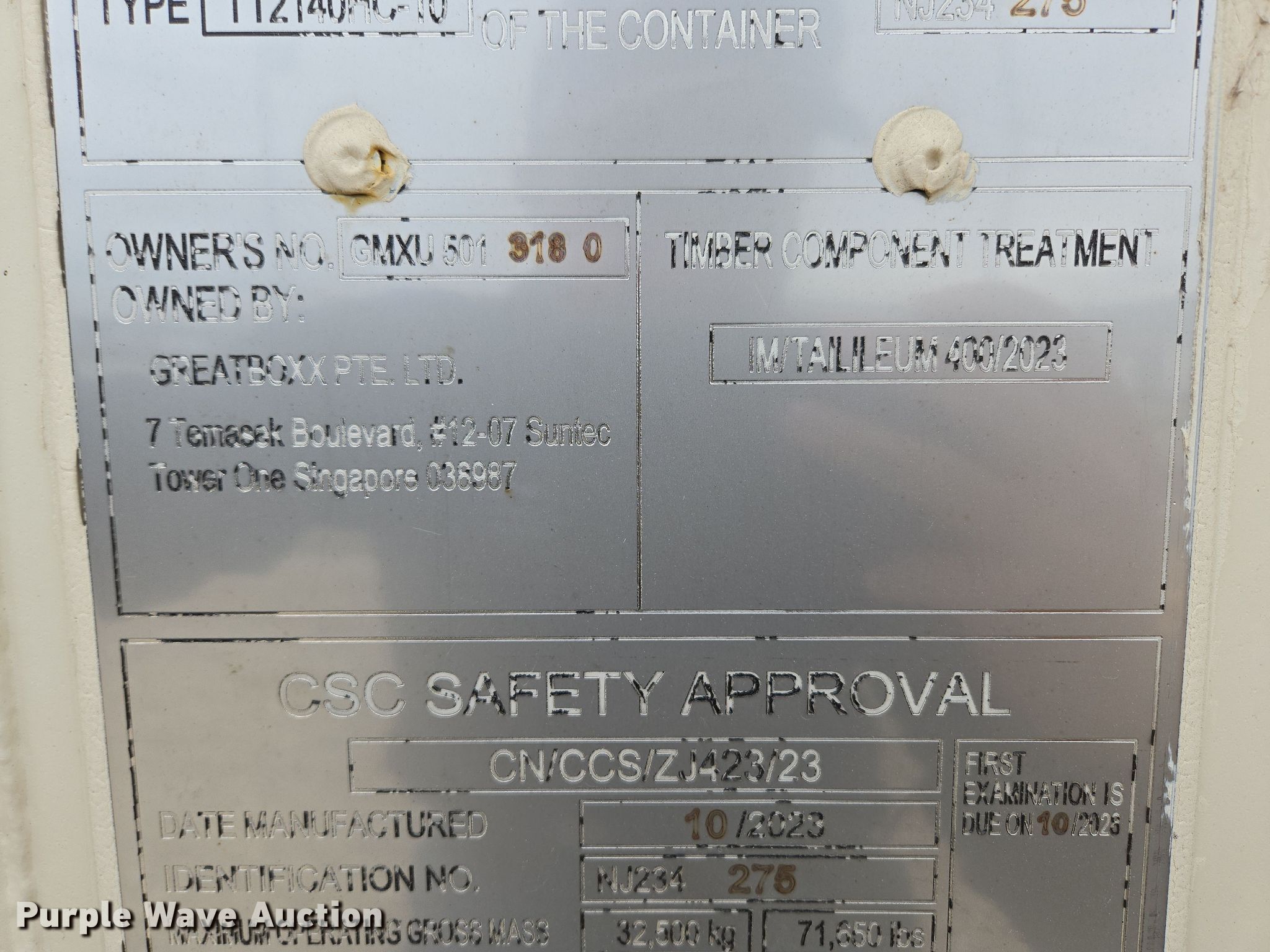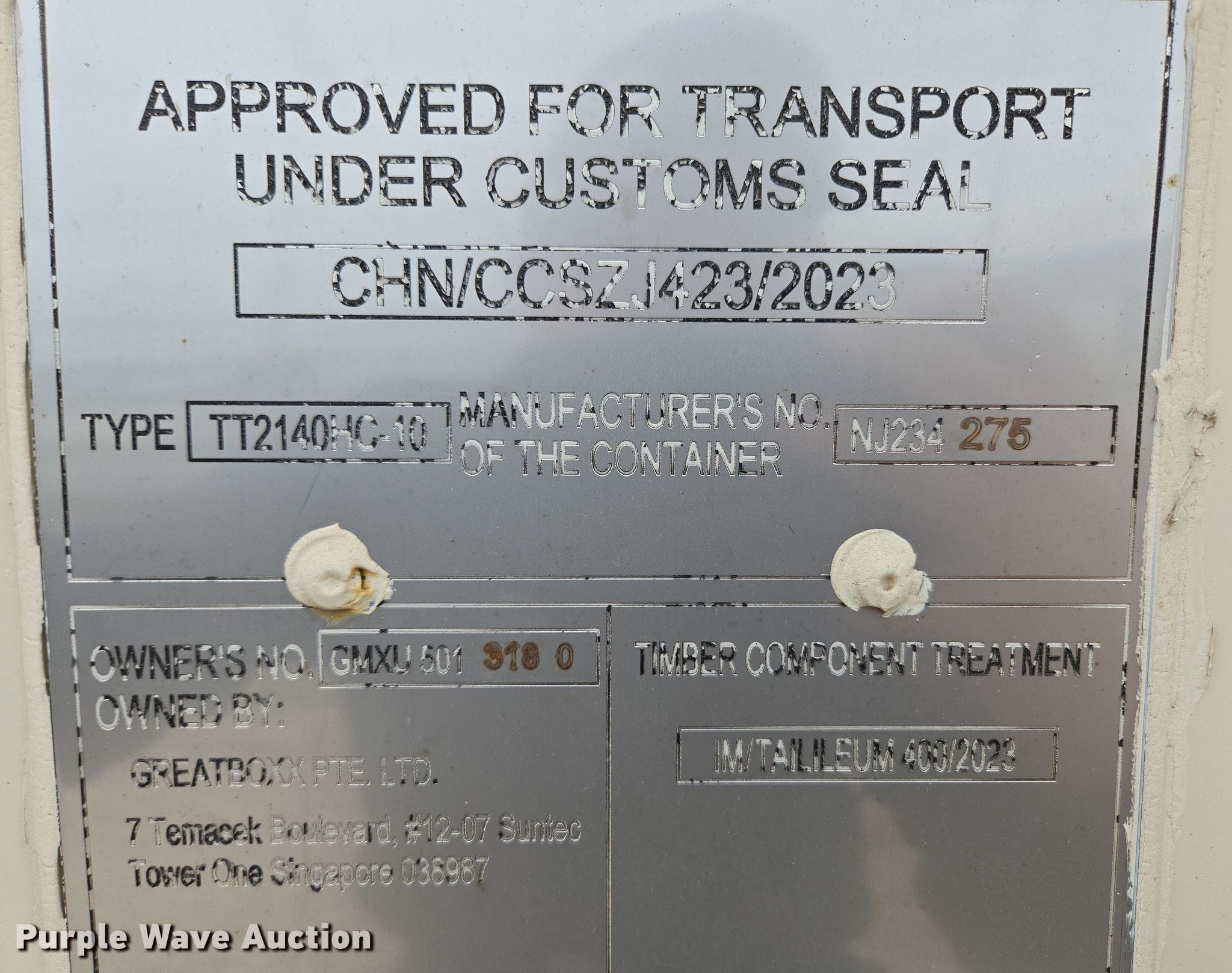 Purple Wave is selling a used Storage or Shipping Container in Missouri. This item is a TT2140HC-10 shipping container with the following: Unit #: GMXU 501318 45G0
