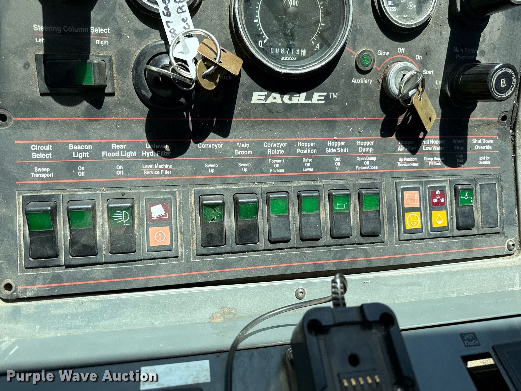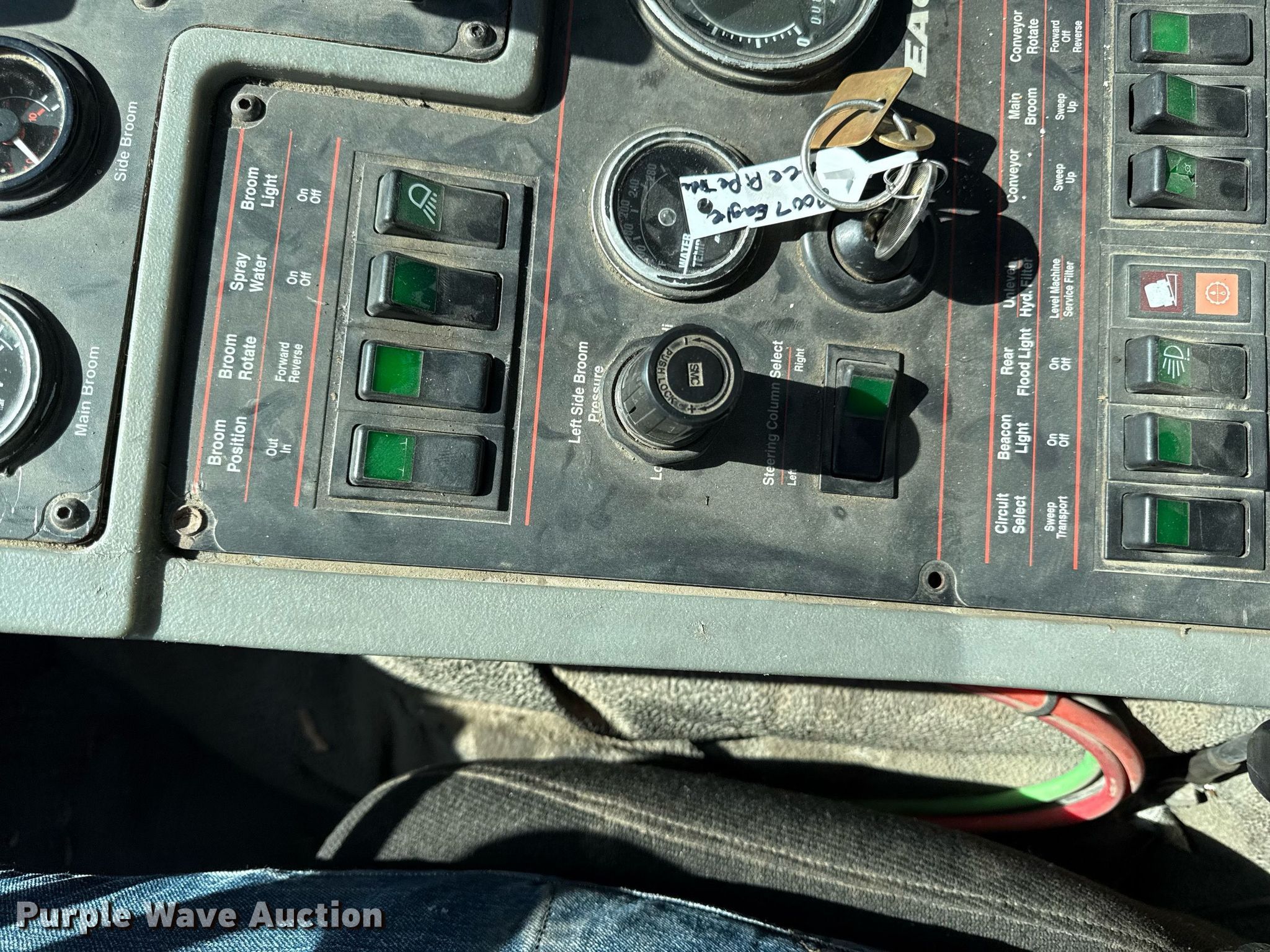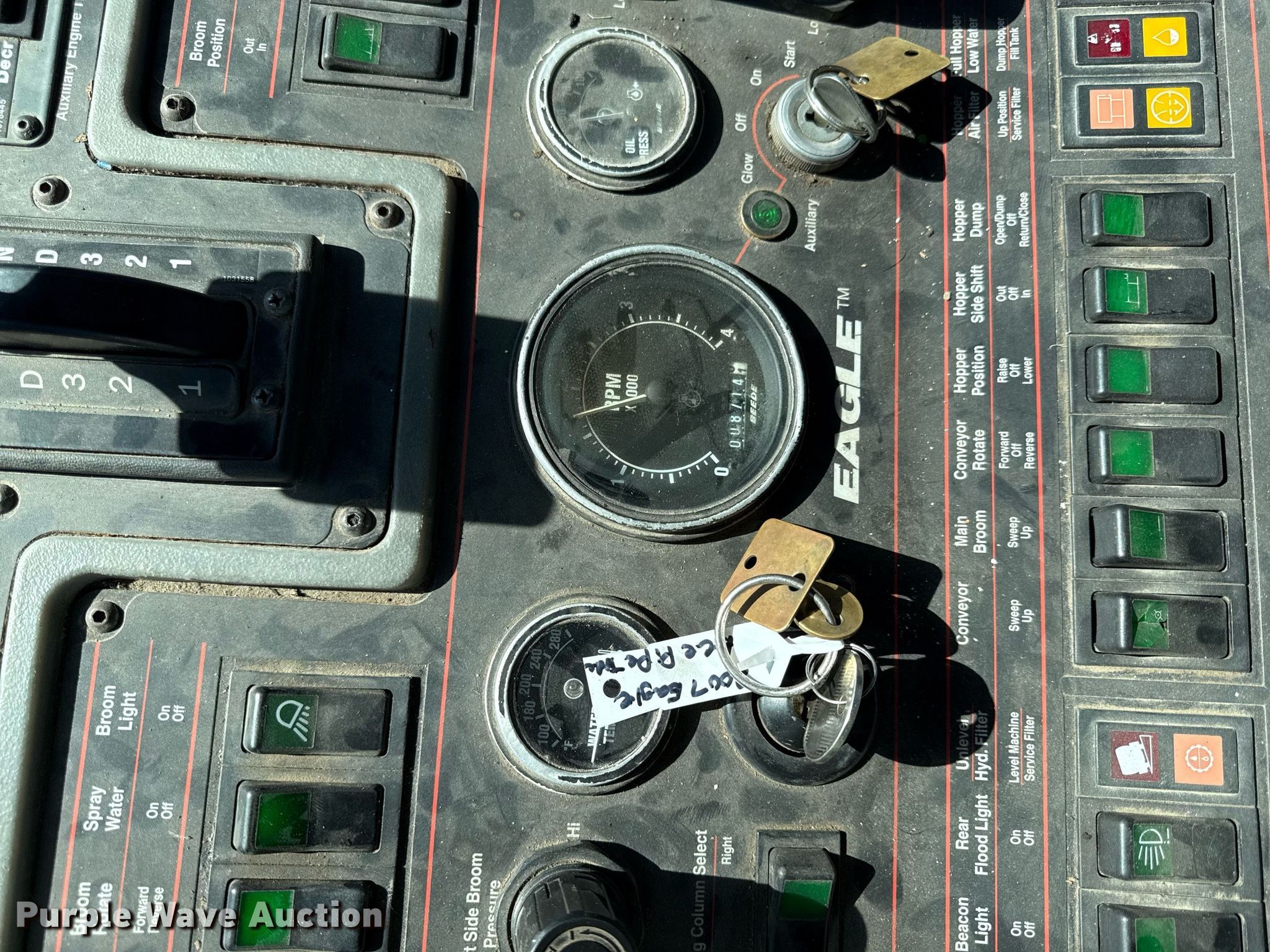 2007 Sterling SC8000 street sweeper truck. Miles: 63,696 on odometer, Hours: 10,472 on meter, VIN: 49HAADBV57DX61366. Engine Cummins, Displacement: 5.9L, Cylinders: 6, Fuel type: Diesel. Transmission Automatic. Chassis Suspension: Air, Brakes: Air. Operators station AC, Heat, Dual operating station, Backup camera. Features Broom Width: 60", Water spray system, Sweeper bed Sweeper bed type: Conveyor Elgin, Left gutter broom Diameter: 36", Right gutter broom Diameter: 36", Engine John Deere, Hours: 8,714 on meter, Displacement: 2.4L, Cylinders: 4. Tires Size: 11R22.5. Missouri title. Seller is a Missouri licensed motor vehicle dealer. Title will be assigned and distributed by the dealer. Please contact the seller for distribution questions. Key Equipment & Supply Co. Kansas City, KS 66111