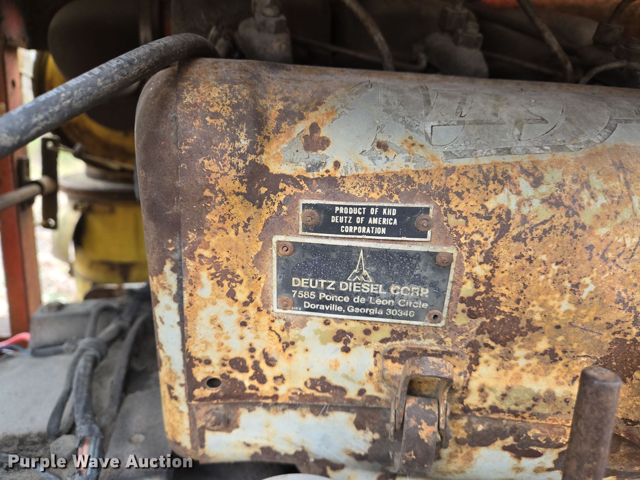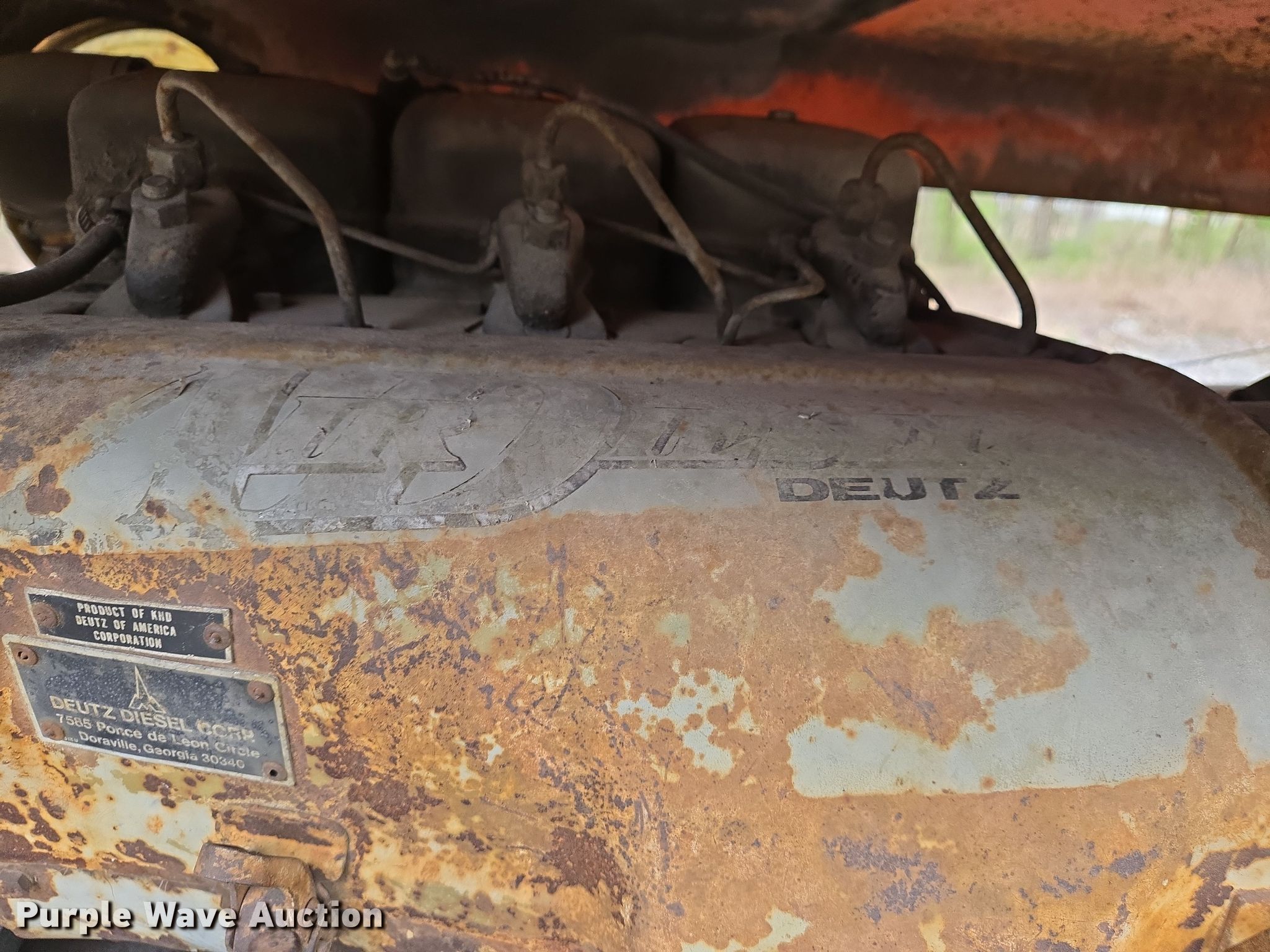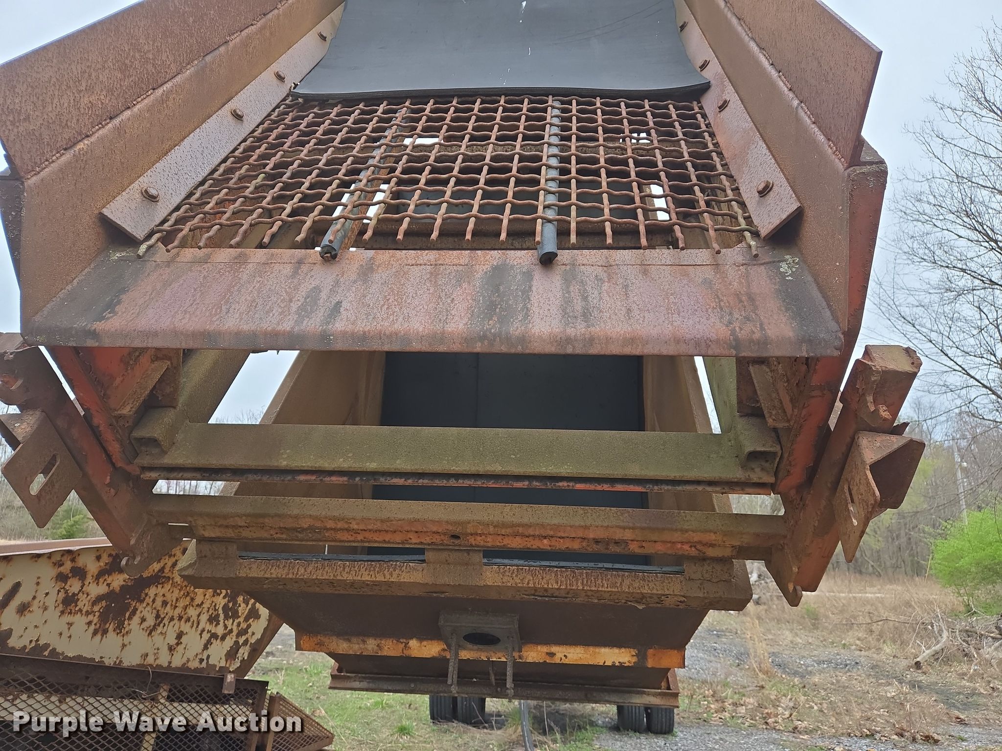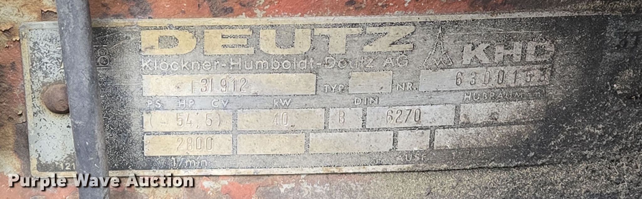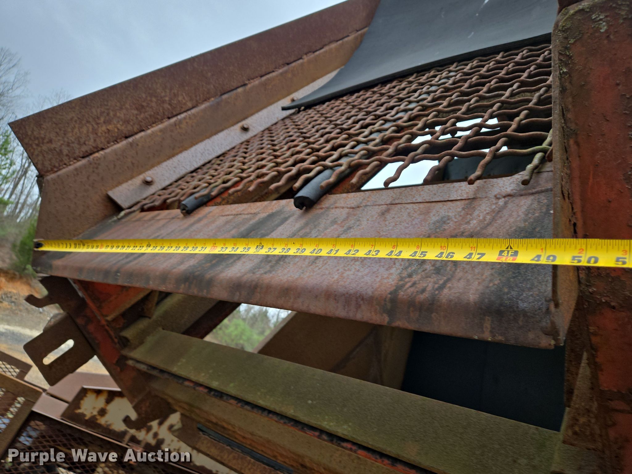 Finlay 312 screening plant. Hours: 1,281 on meter. Engine Deutz F3L912, Serial: 63D0153, Cylinders: 3, Fuel type: Diesel, kW: 40. Features Screen deck Length: 8', Width: 4', Decks: Single, Screen size Top: 2", Input hopper Length: 11' 10", Width: 5', Grizzly, Conveyors Input: 12' L x 24" W, Discharge: 40' L x 30" W, Discharge: 50' L x 24" W, Hydraulic leveling. Tires Size: 235/75R17.5, 8-17.5. Notes No keys. Grand Rivers, KY 42045