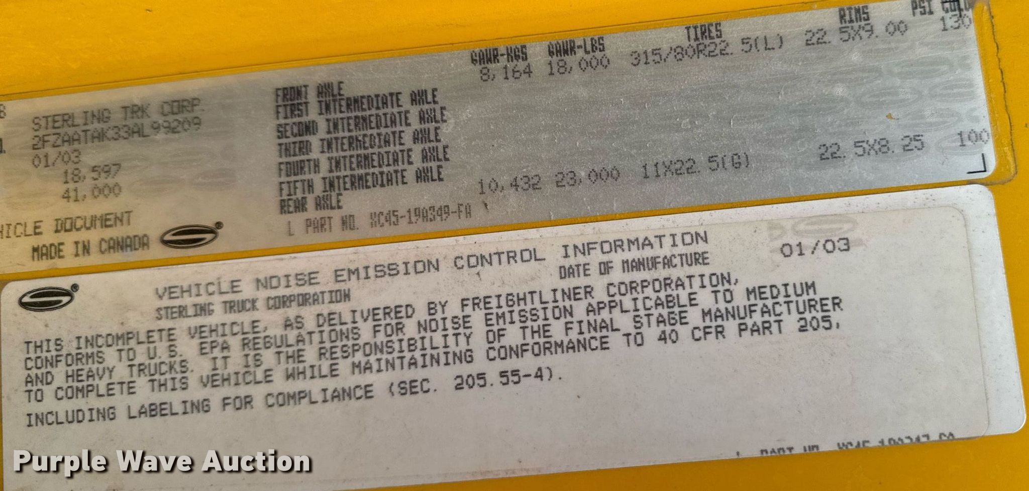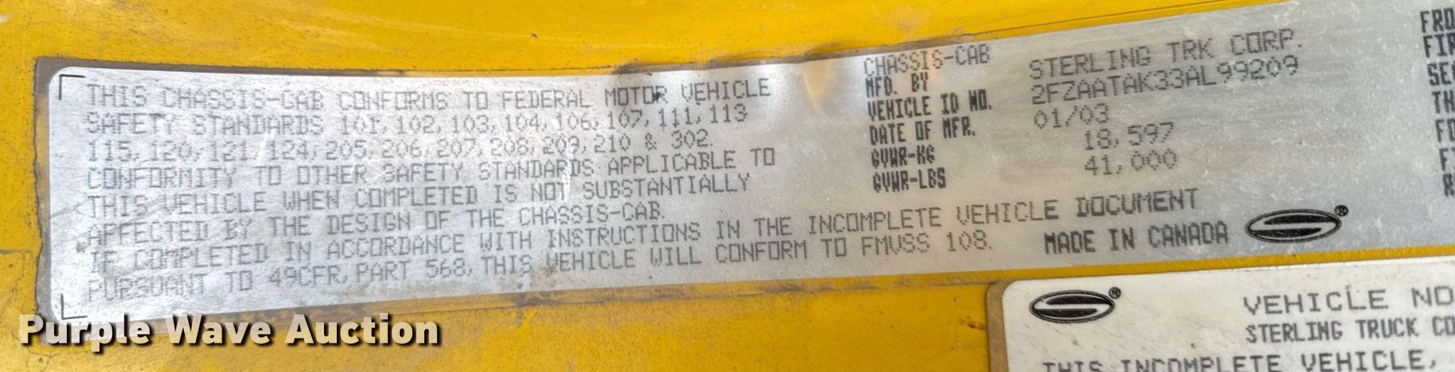 Purple Wave is selling a used Construction Dump Truck in Illinois. This item is a 2003 Sterling L7500 dump truck with the following: Miles: 57,840 on odometer, Hours: 6,308 on meter, VIN: 2FZAATAK33AL99209